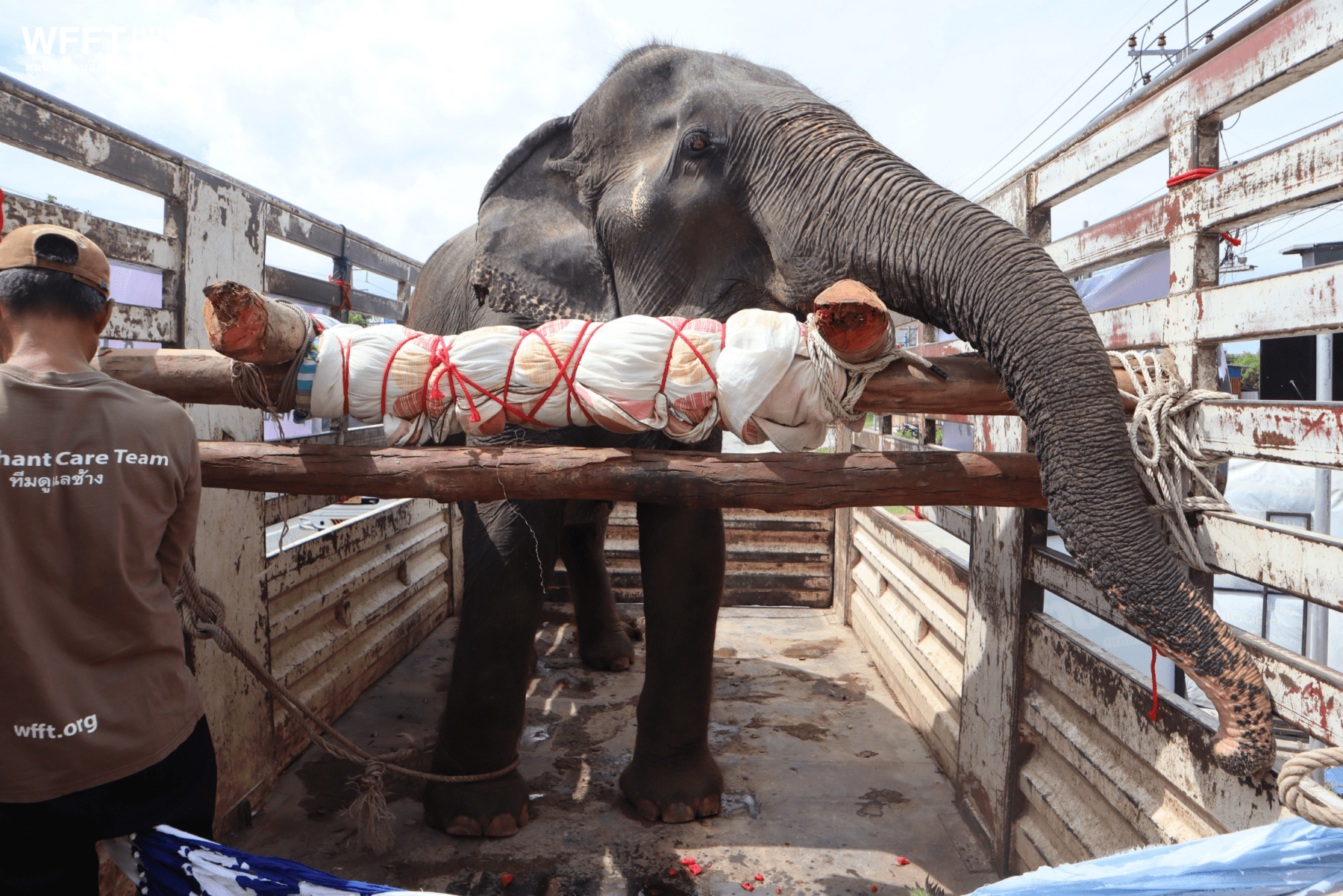 Now, after a journey from Pattaya to our sanctuary in Phetchaburi, Nam Chok has arrived and is settling into her new home, where she will no longer have to work and can live the rest of her life in peace.
