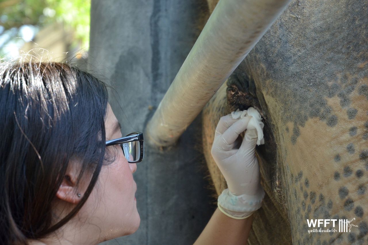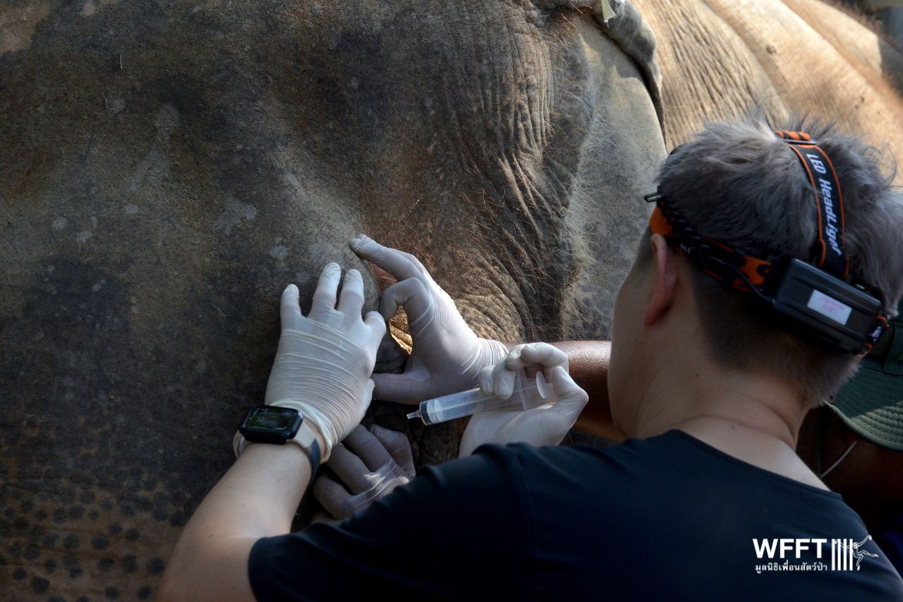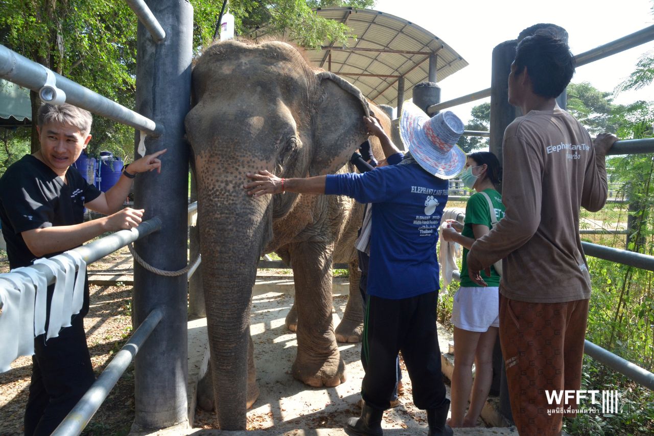 Alicia, one of our beautiful old girls, has been struggling with chronic eye problems. When she arrived at WFFT in 2017, she was already blind in one eye. Recently, issues developed with her good eye, raising concerns about potential permanent blindness. To assess her eye health, our wildlife vet team collaborated with an expert veterinary ophthalmologist and his colleague from Mahasarakham Technical College.