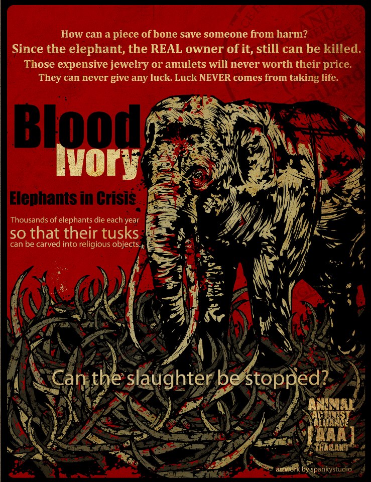 Sadly, Thailand is one of the highest ranked countries in illegal ivory trade. Even though one of basic precepts of Buddhist is to abstain from taking life, still some Thai monks and their believers turns out to be the major consumer in this blood business.