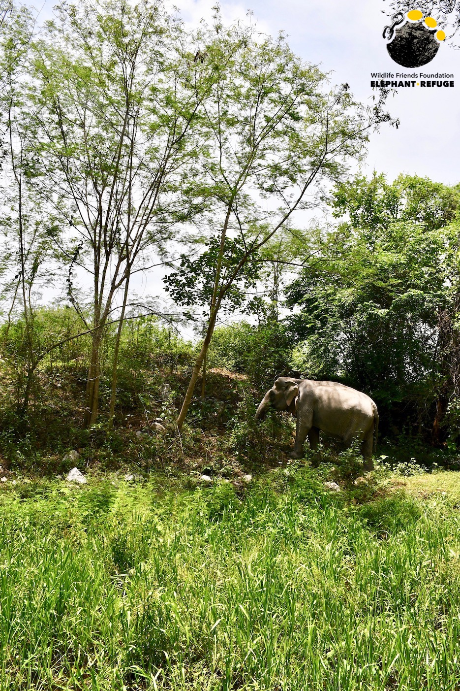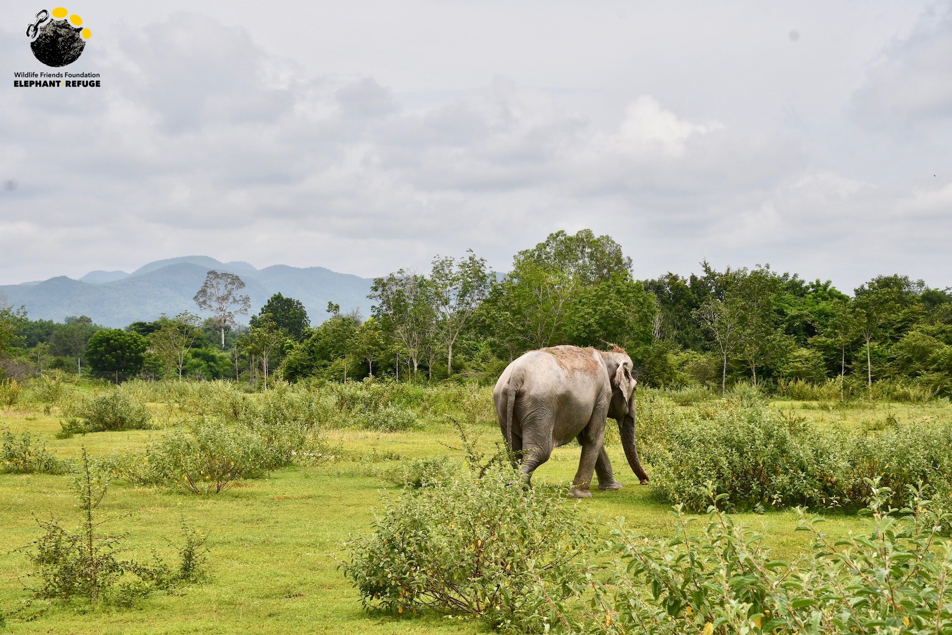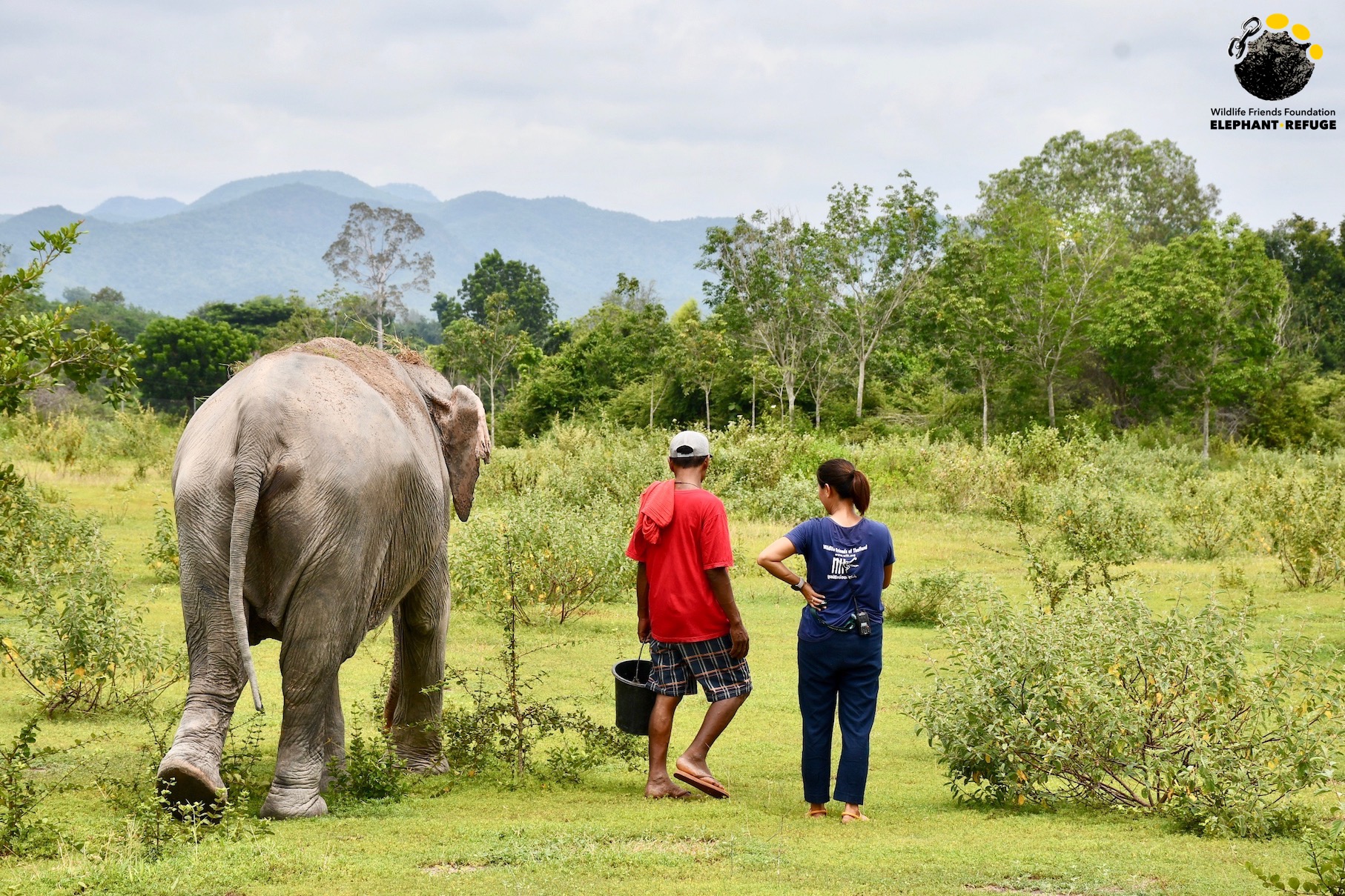The newest member of the herd arrived at 5AM this morning after a very long journey from Southern Thailand. Her name is Boon Ma, she is an astonishing 71 years old. Having spent most of her life being used as a logging elephant, she spent the last 10 years working in tourism all over Southern Thailand, like many of Thailand’s 3000+ captive elephants, when the covid crisis hit she no longer had a use in tourism. Boon Ma’s mahout who has known her all his life, has moved to WFFT to work with us and to continue to care for her. No more rides, no more chains, her new life begins now.