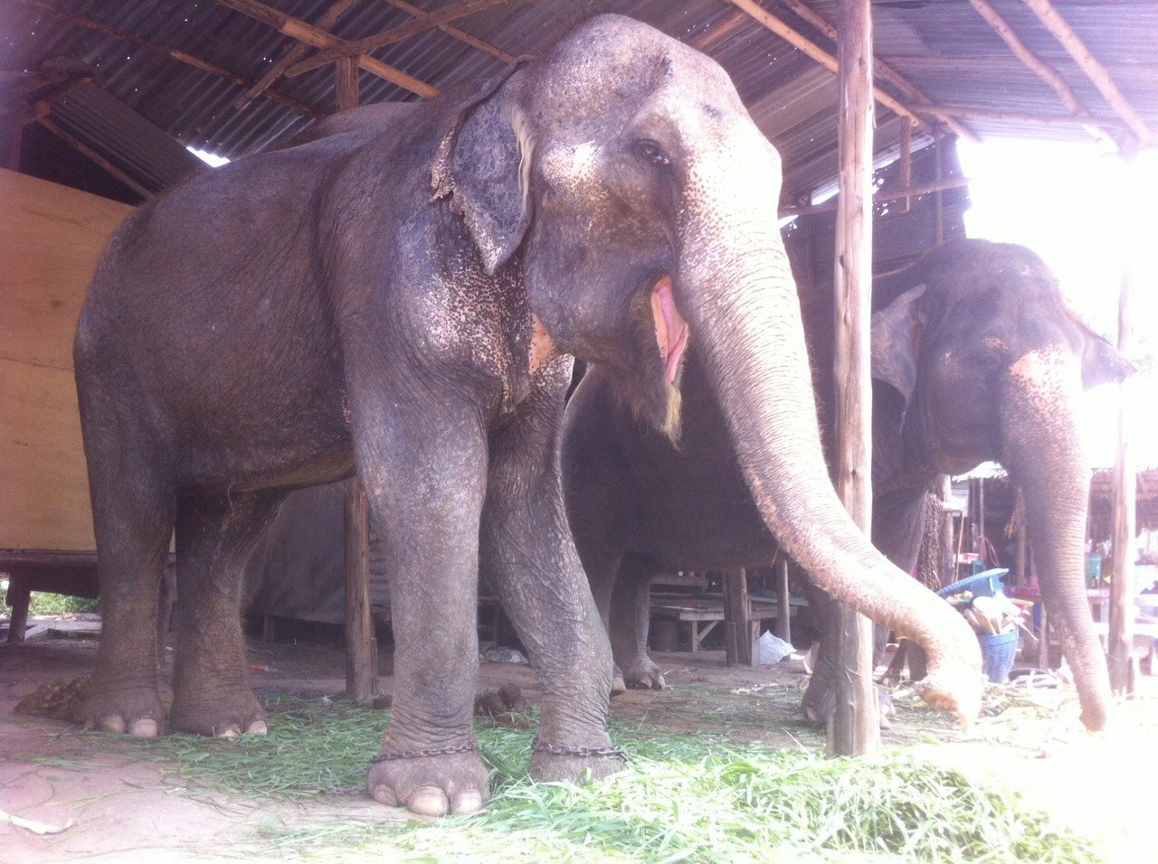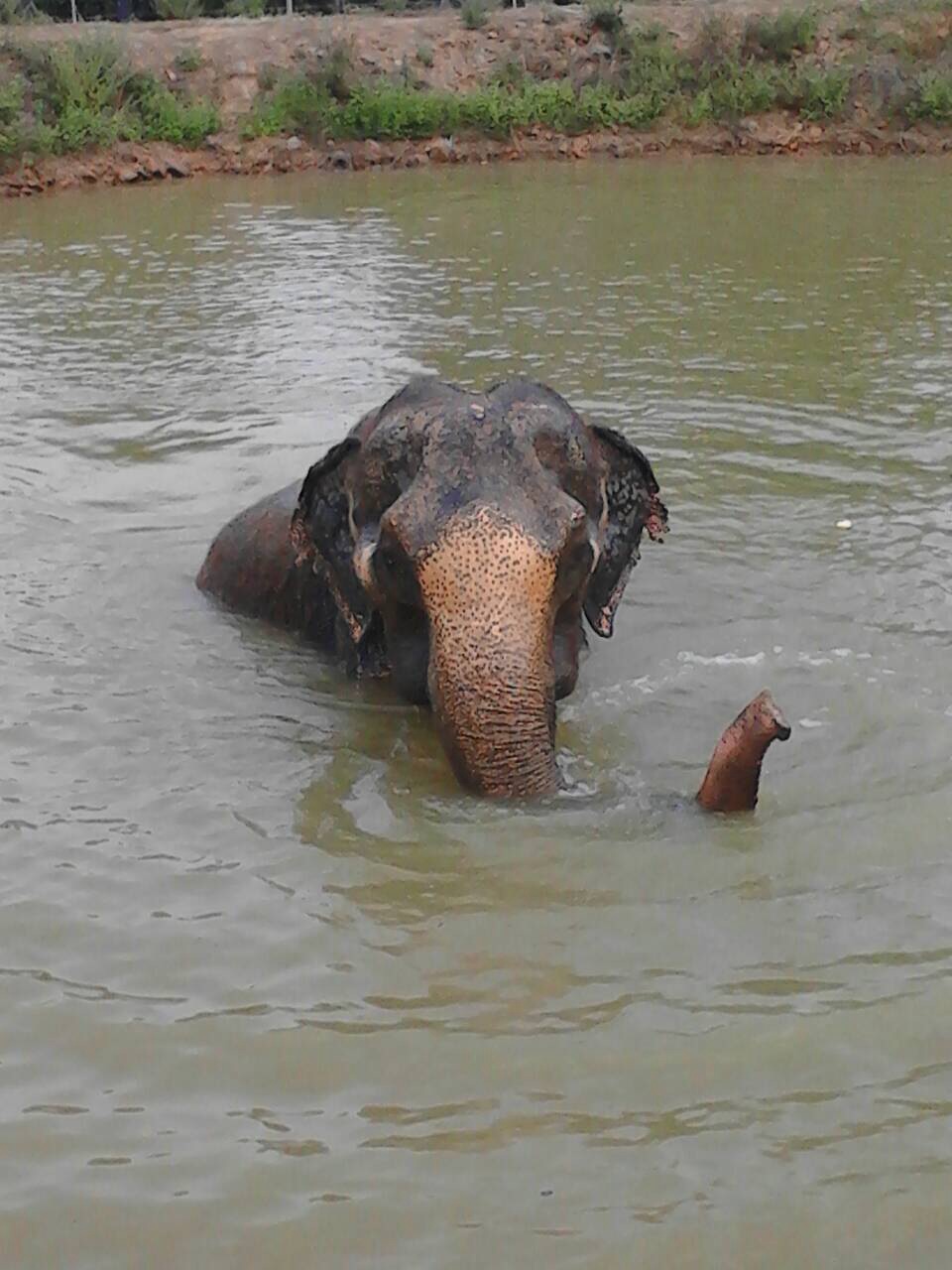 Kaew Petch is a 50 years old elephant who has worked in the tourism trade since the 1980’s. She was found by us in a elephant tourism camp, suffering from severe skin infections caused by a fungus on over 60% of her body. Kaew Petch, who we will from now on call “Nam Petch” was itchy and irritated with no pool nearby to bathe, not enough water to shower and too much time at work to treat the skin disease.