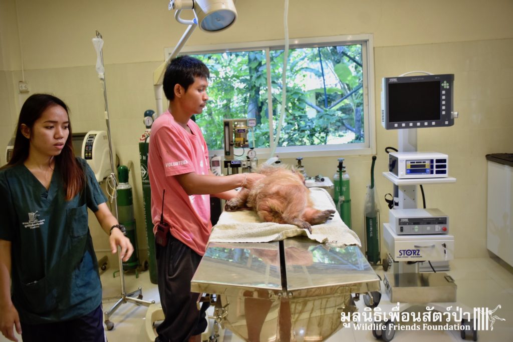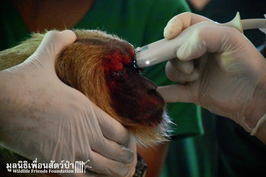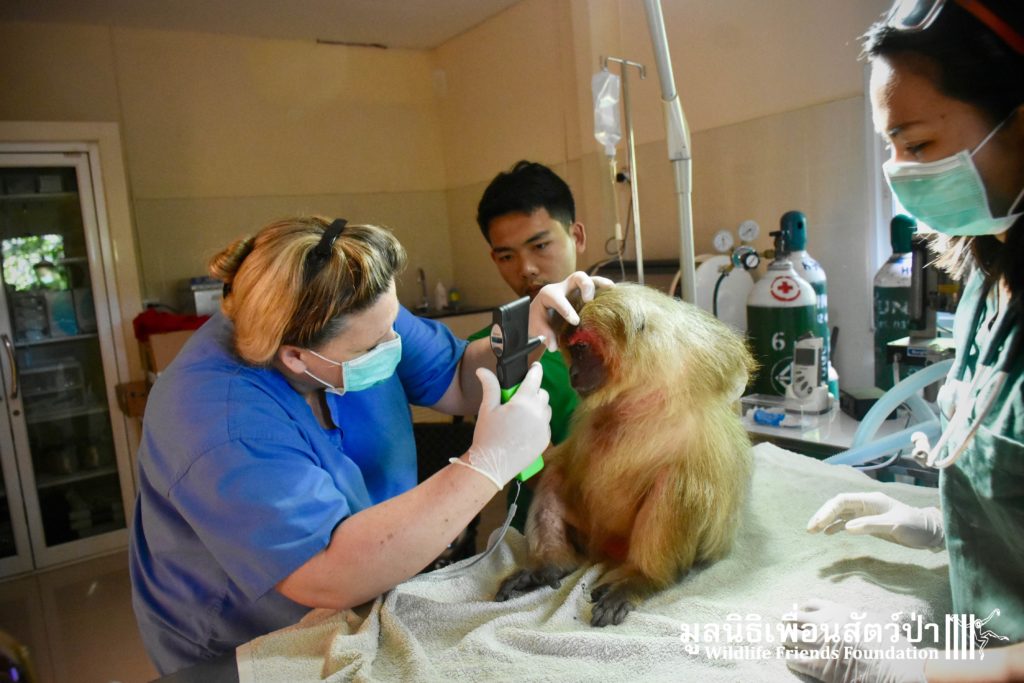 Over the last week Dr. Claudia Hartley, the Head of Ophthalmology at the Bristol Veterinary School has been working with the WFFT Vet Team. Claudia is specialist in Veterinary Ophthalmology and has kindly shared some of her exceptional knowledge and experience with our team. We have been examining the eyes of numerous animals here of the WFFT Wildlife Rescue Centre including gibbons, macaques, bears, dogs and elephants. Some surgical procedures were performed and lots of great advice has been given on the future treatment of the eyes of some of our very special residents. Thank you Claudia for giving us your time and being a pleasure to work with.