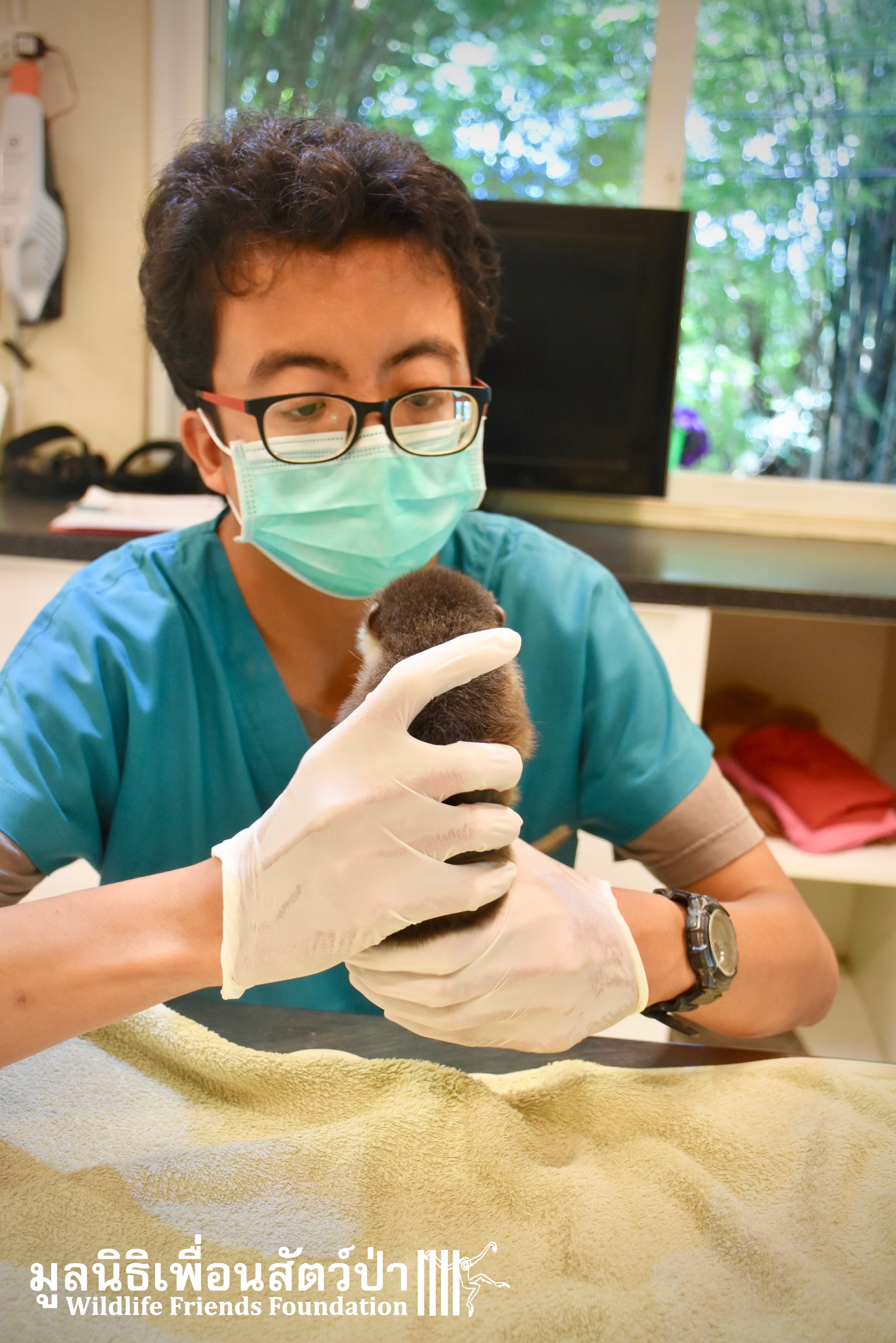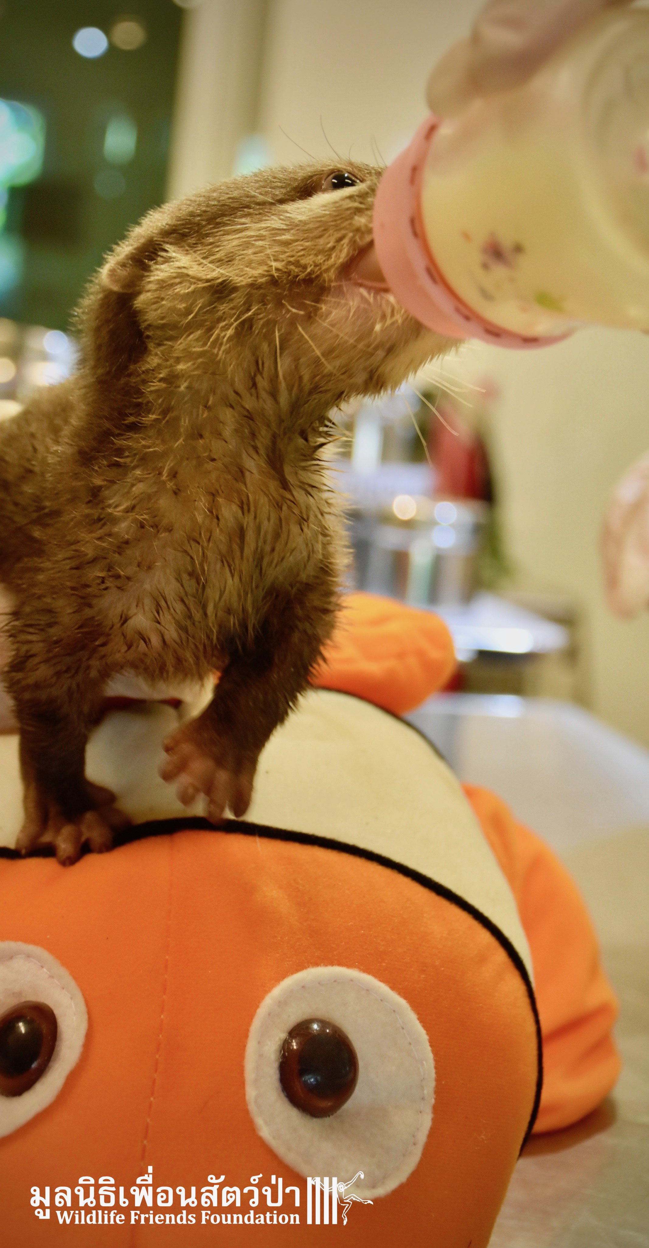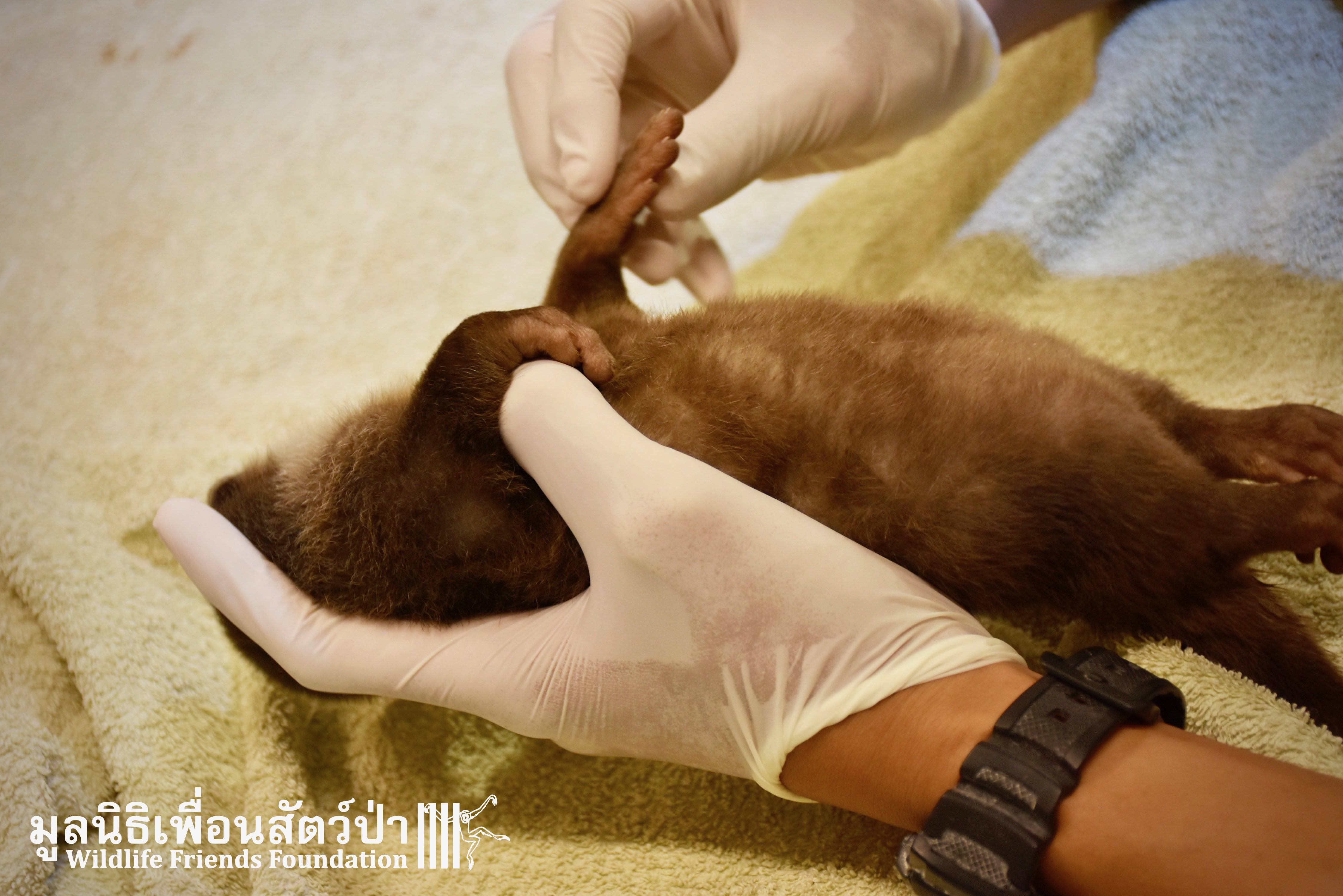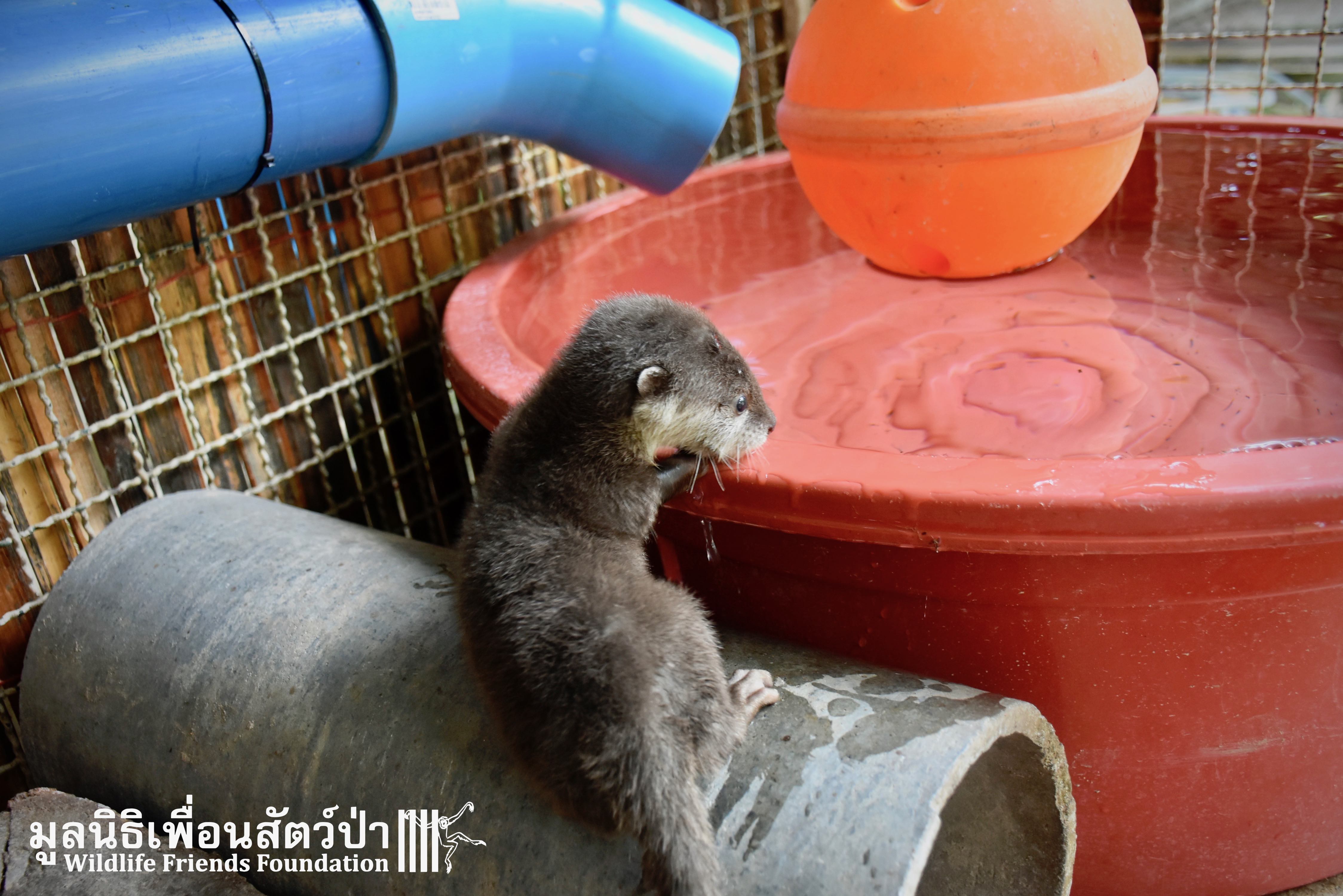 Yesterday some people from Samut Sakorn brought a baby female short-clawed otter (Aonyx cinerea) into the WFFT Wildlife Rescue Centre. They had been keeping her as pet for the past two weeks after buying her from one of their friends, she was six week sold when they bought her. They called the little one Toro. They did not expect that Toro would require such specialist care, and be rather loud and smelly. Annoyed by the constant calls for her mother they decided to bring her to WFFT. After an initial health check Toro seems in good health. She had been fed only goats milk, so it will take us some time to adjust her diet.This little orphan will require months of round-the-clock care from the WFFT Vet Team. We hope that in the future she can live with her own species once again.