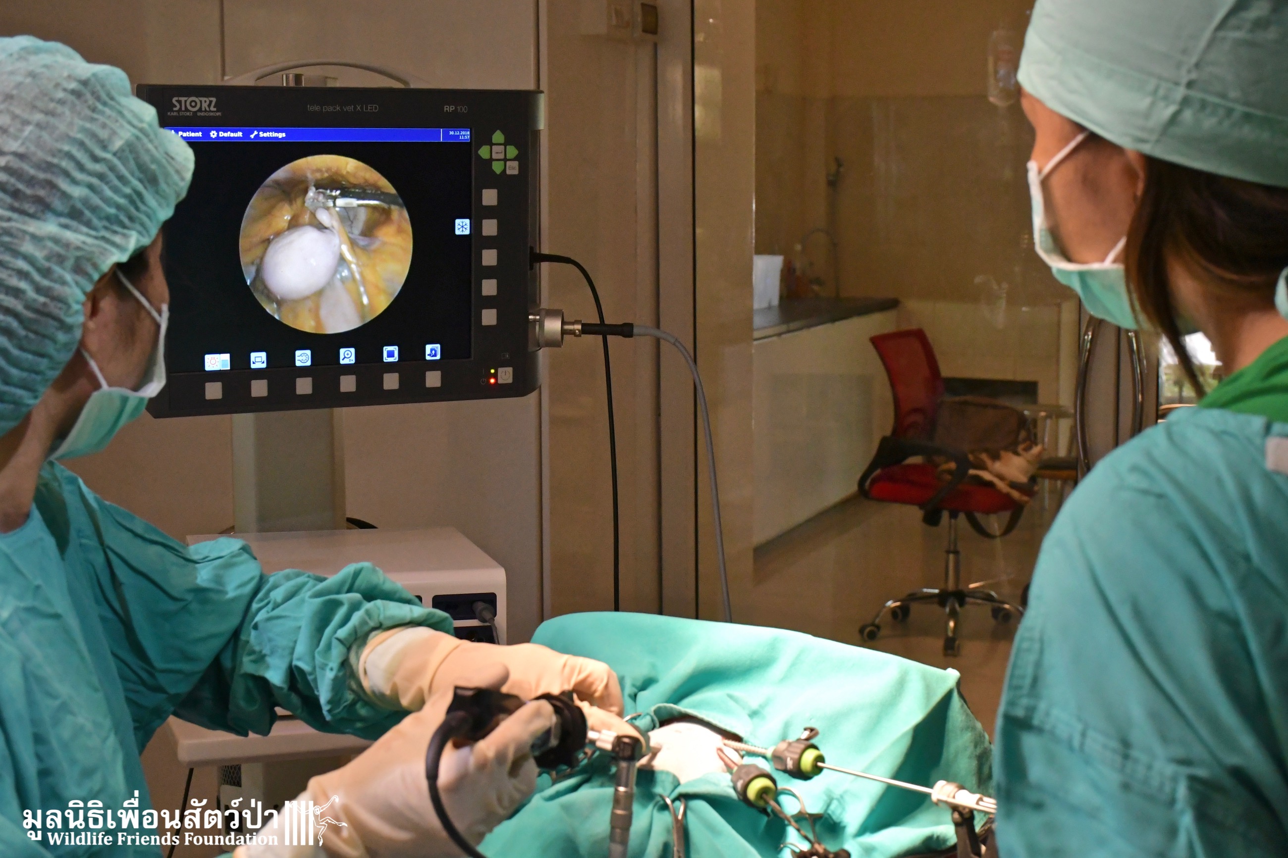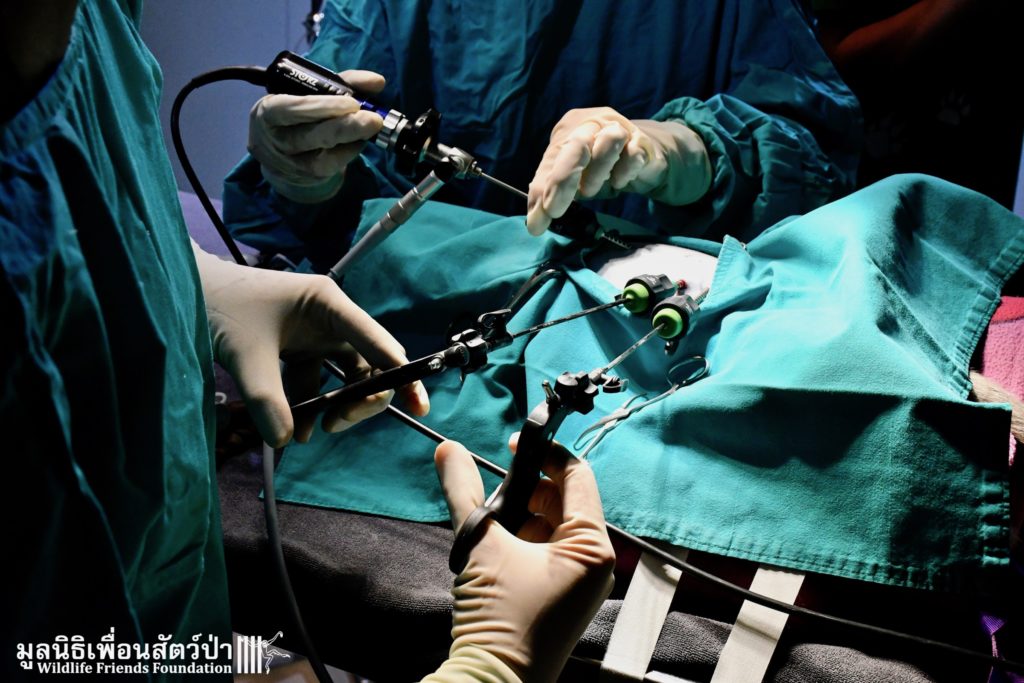 We recently rescued and treated a half blind long-tailed macaque for ingesting insecticide. Because she came from a high-density macaque troop in an urban area, we also decided to perform endoscopic sterilization to contribute to population control. This endoscopic method is much less invasive and allows for a short recovery time. A quick release also improves chances of being successfully reintegrated into a troop. We were able to release her the very next day and watched her run off towards her family!