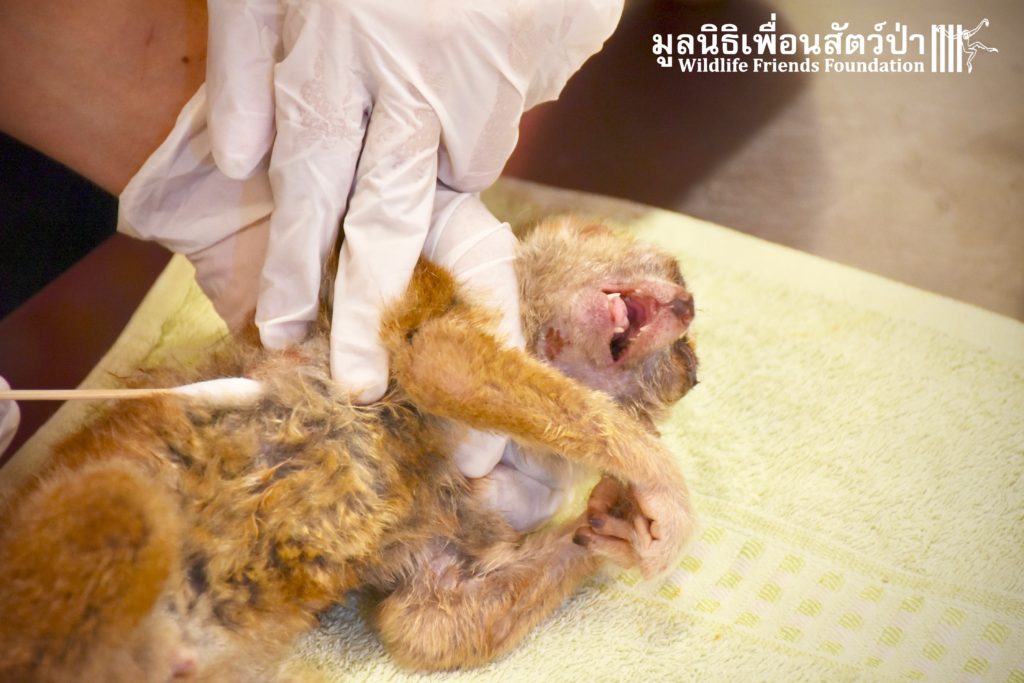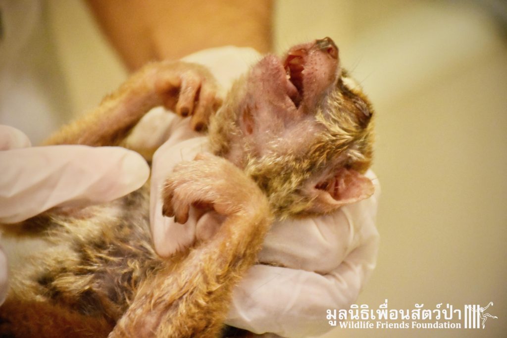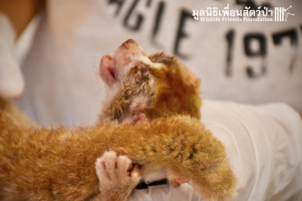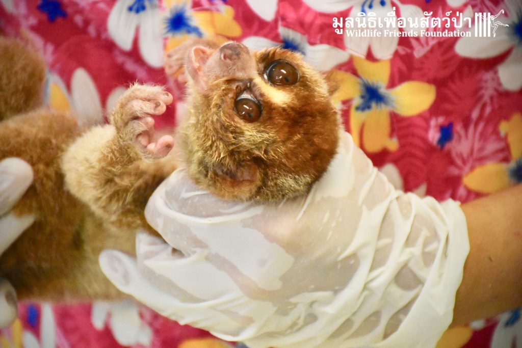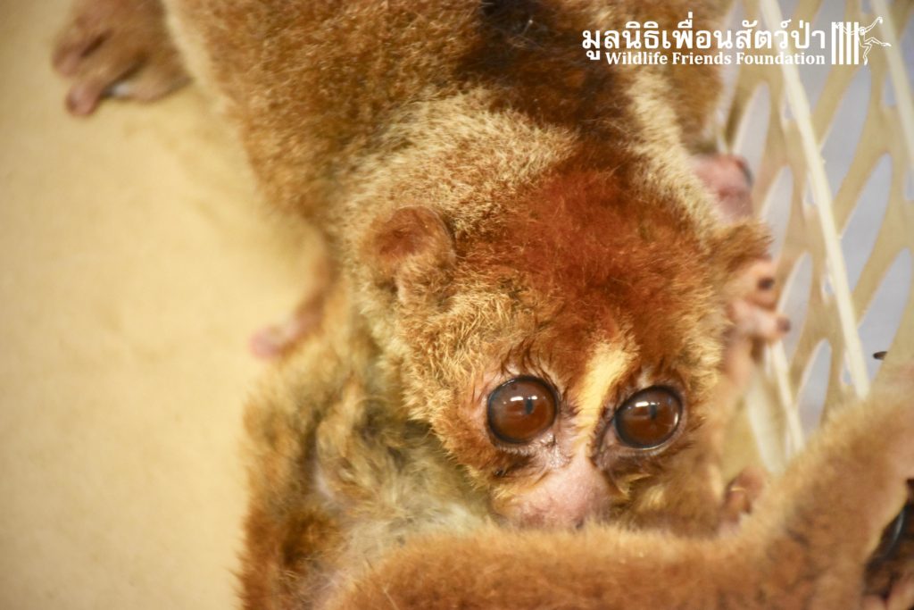 A few days ago two very weak and emaciated Sunda slow lorises (Nycticebus coucang) were brought into the WFFT Wildlife Hospital for urgent treatment by their owner. The lorises in question had been kept as pets for the last year after they were given to the lady by a family member from Southern Thailand. She named them Phet and Reang, they were kept in a small cage in her house for a year until they both became very sick, at this point she released that she should not keep them as pets. The lady said she had fed them a diet of fruit, and one of them had not eaten for a month. Upon arrival to WFFT we were all shocked to find two very thin sickly lorises.