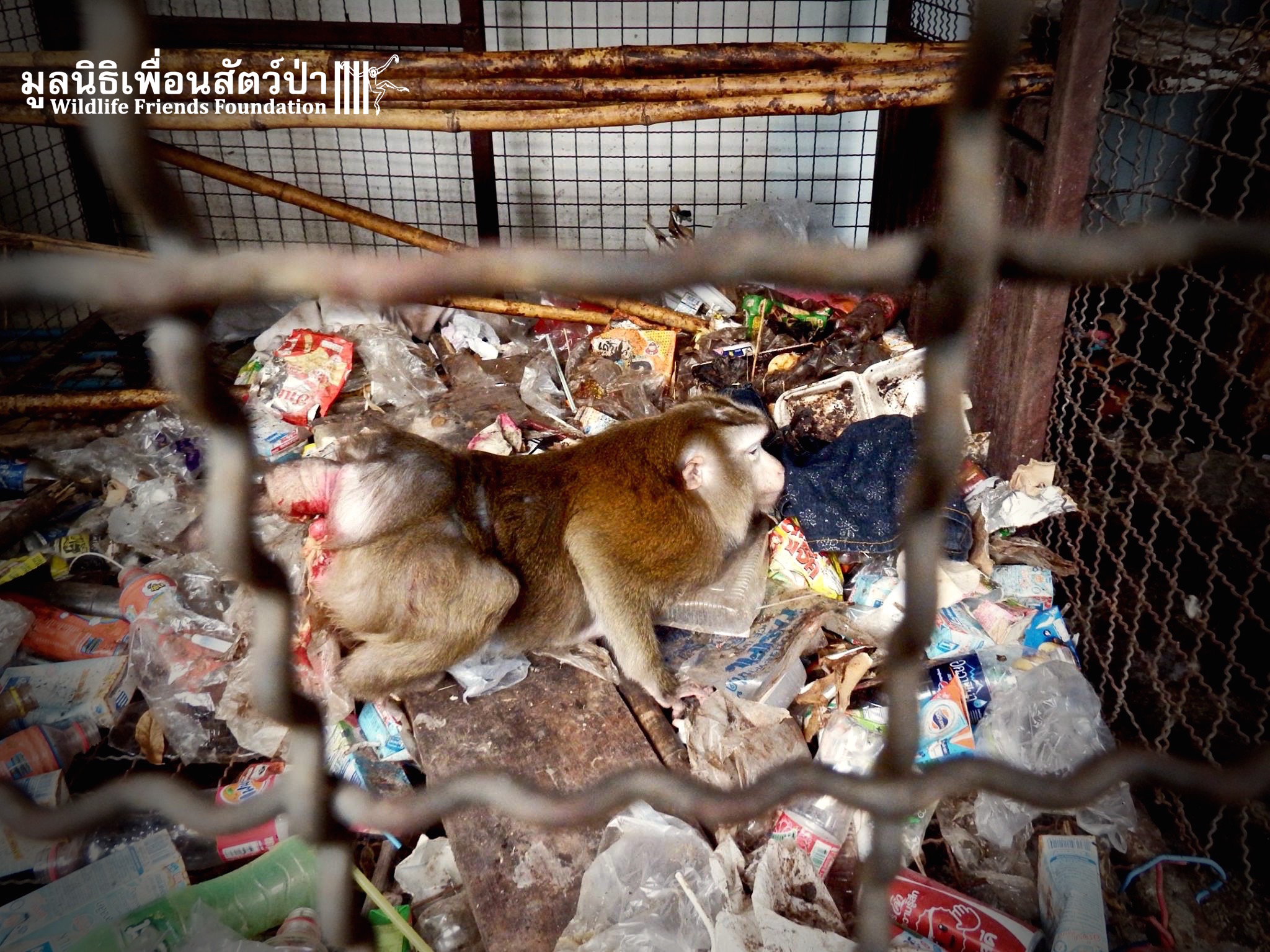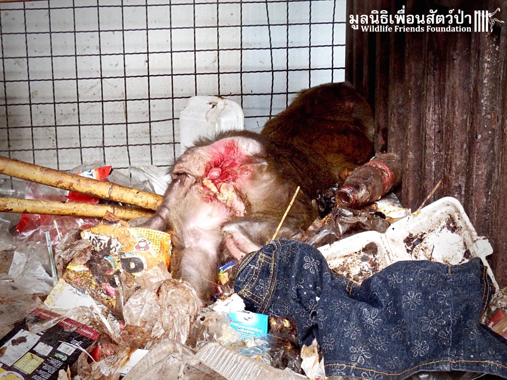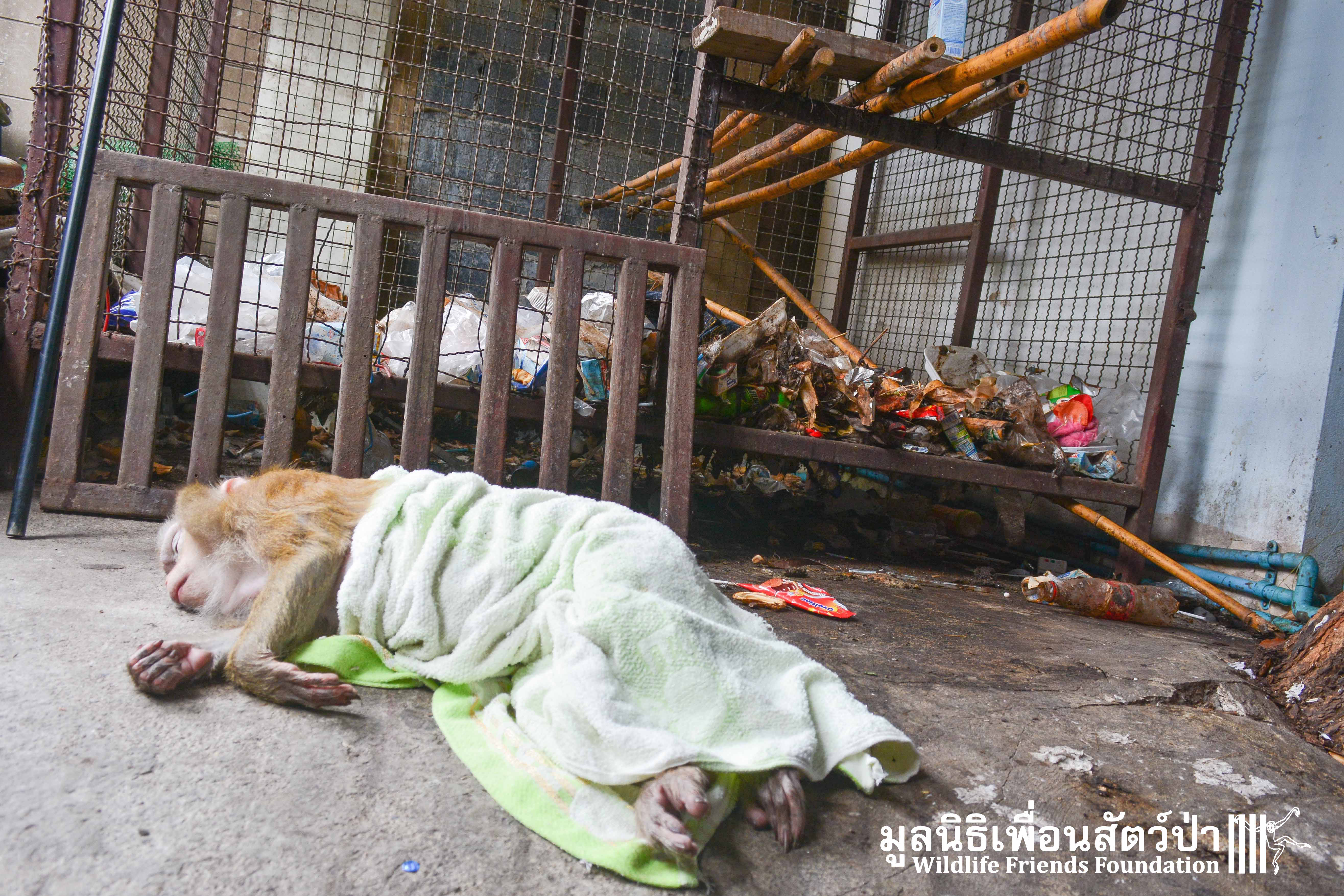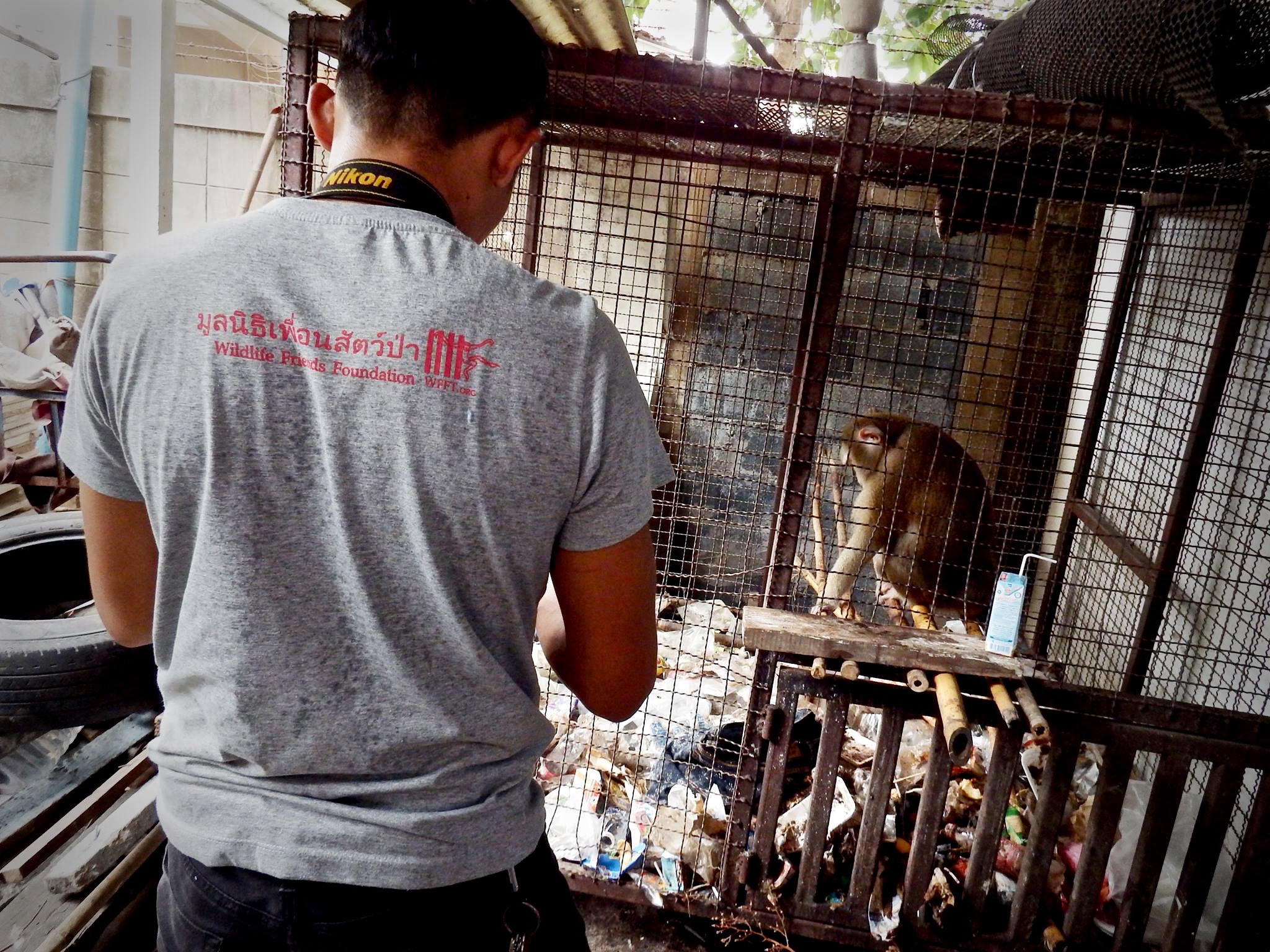The WFFT Wildlife Rescue Team headed up to Bangkok to check the monkey in question, upon arrival the whole team was shocked at the living accommodation of this poor little soul.