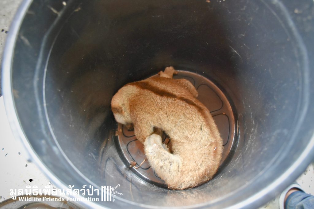 Sadly, the next day it appears that this was a reasonable fear. The poor little Loris died. Post mortem confirmed he died of internal hemorrhage. Electrocution is a real problem, more than a 1000 lorises die every year in Thailand in this kind of accident. Their natural habitat keeps being reduced because of human expansion and as with many other wild animals they are facing new dangers. The initial shock may not kill them but it often results in a fall from height. These nocturnal animals are then at the mercy of other animals and it is often many hours or days before they are spotted. We understand the importance of speed in responding to calls such as this and though the outcome may not go the way we would like we will always try our best.