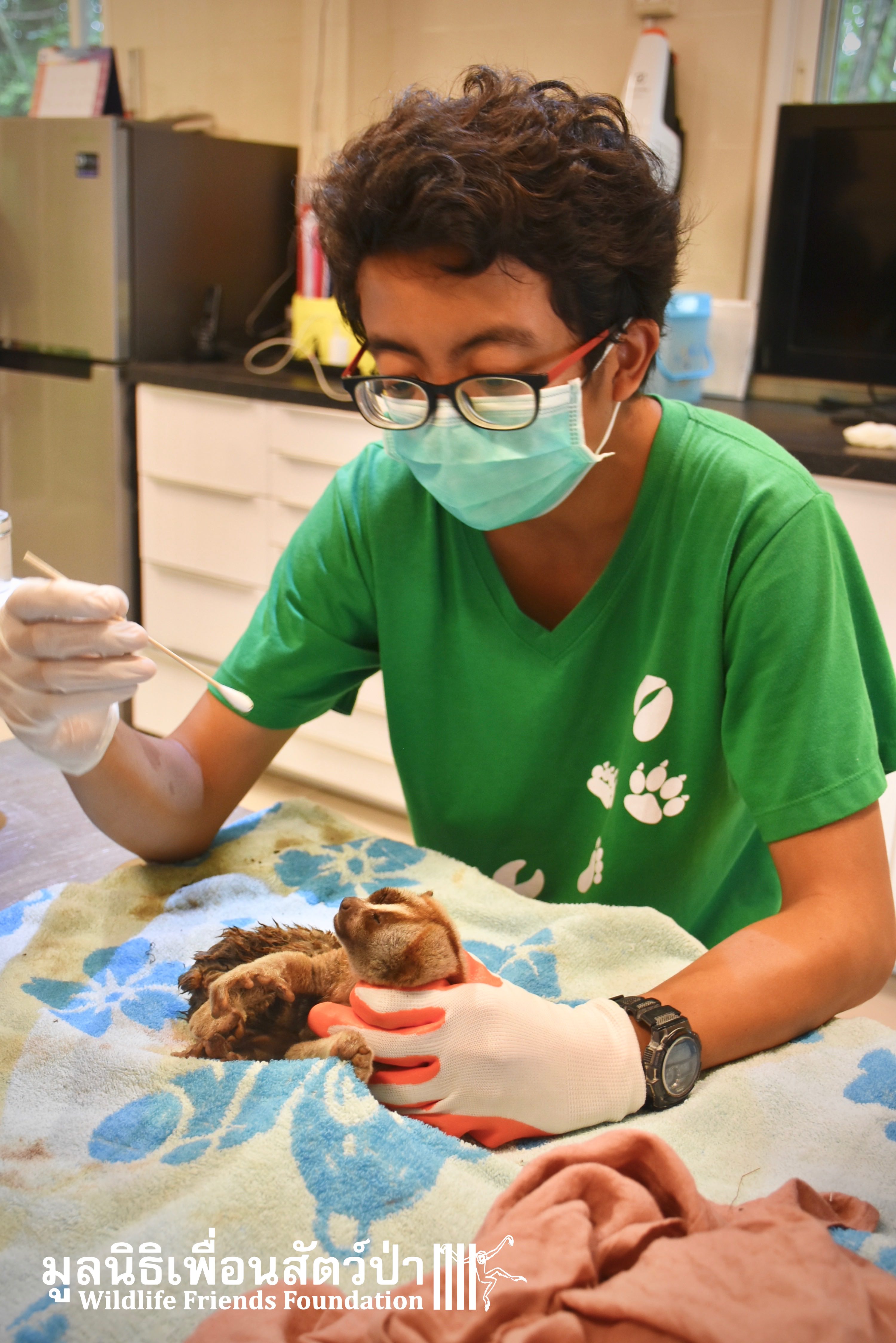 Sadly, the next day it appears that this was a reasonable fear. The poor little Loris died. Post mortem confirmed he died of internal hemorrhage. Electrocution is a real problem, more than a 1000 lorises die every year in Thailand in this kind of accident. Their natural habitat keeps being reduced because of human expansion and as with many other wild animals they are facing new dangers. The initial shock may not kill them but it often results in a fall from height. These nocturnal animals are then at the mercy of other animals and it is often many hours or days before they are spotted. We understand the importance of speed in responding to calls such as this and though the outcome may not go the way we would like we will always try our best.