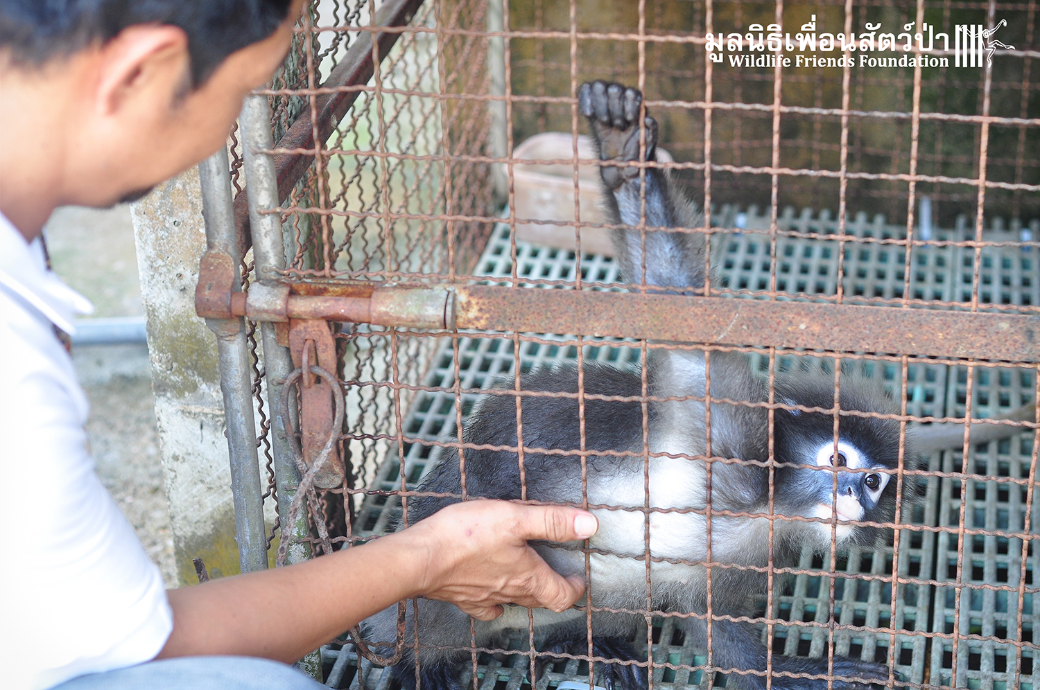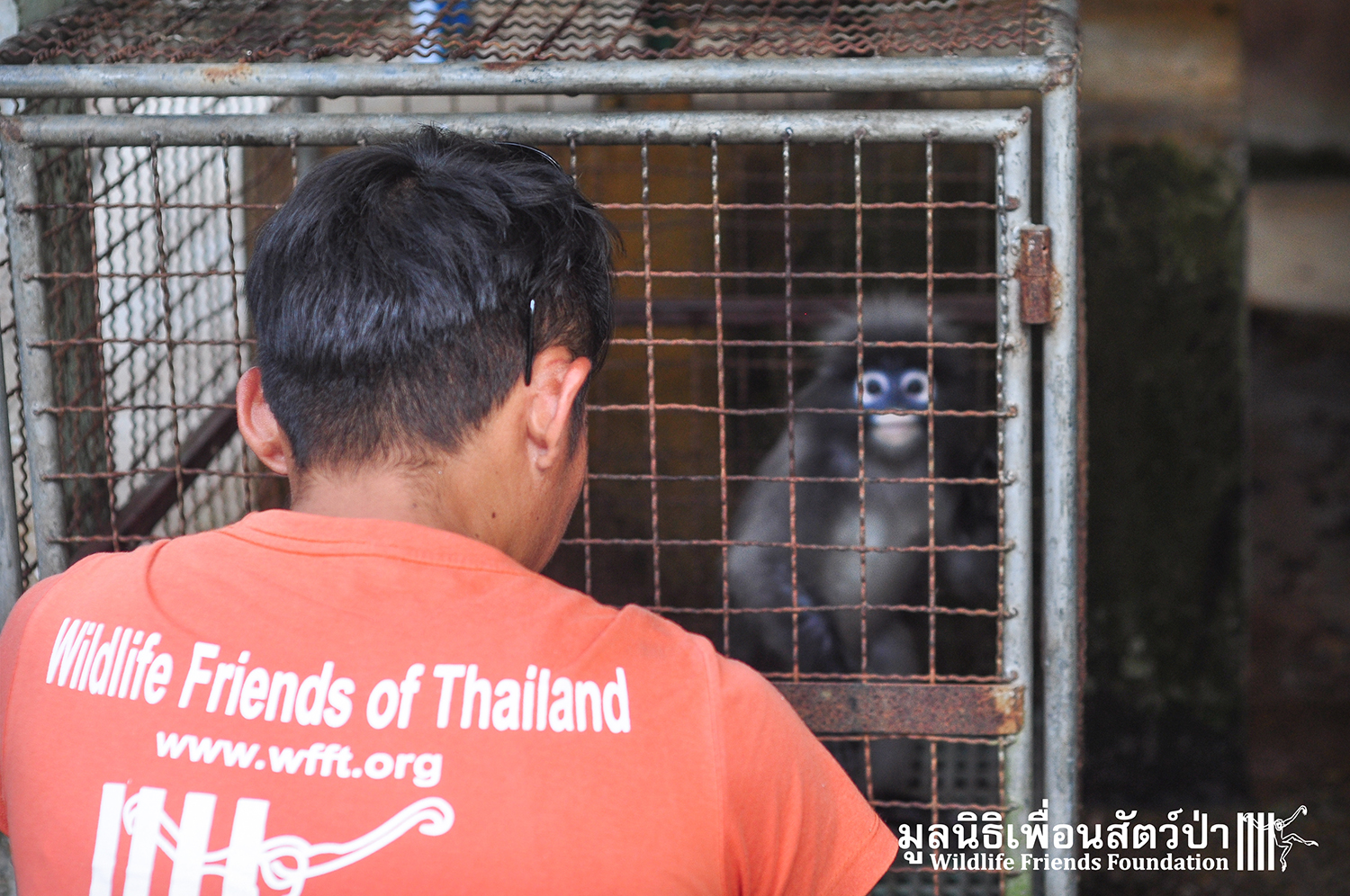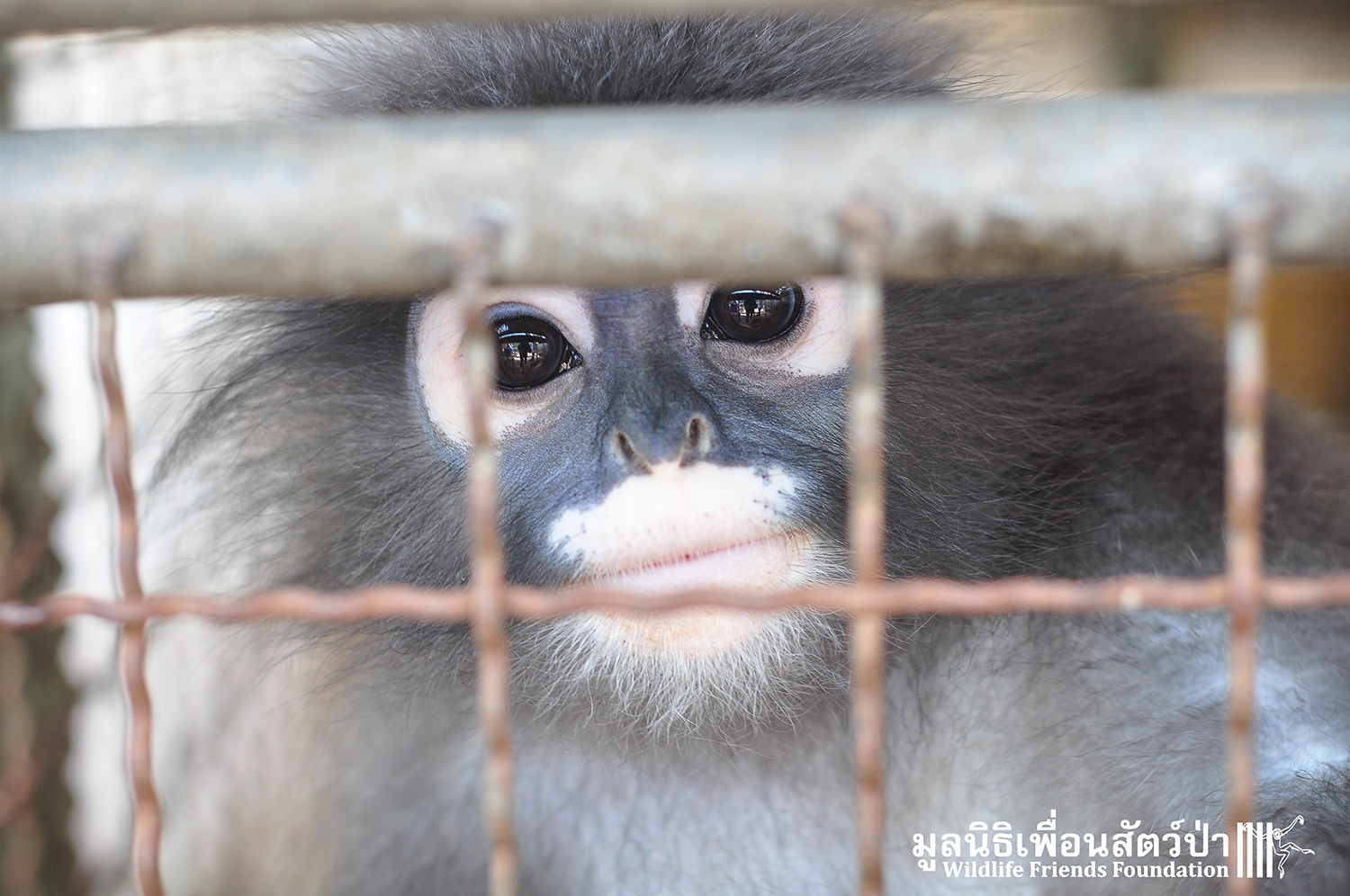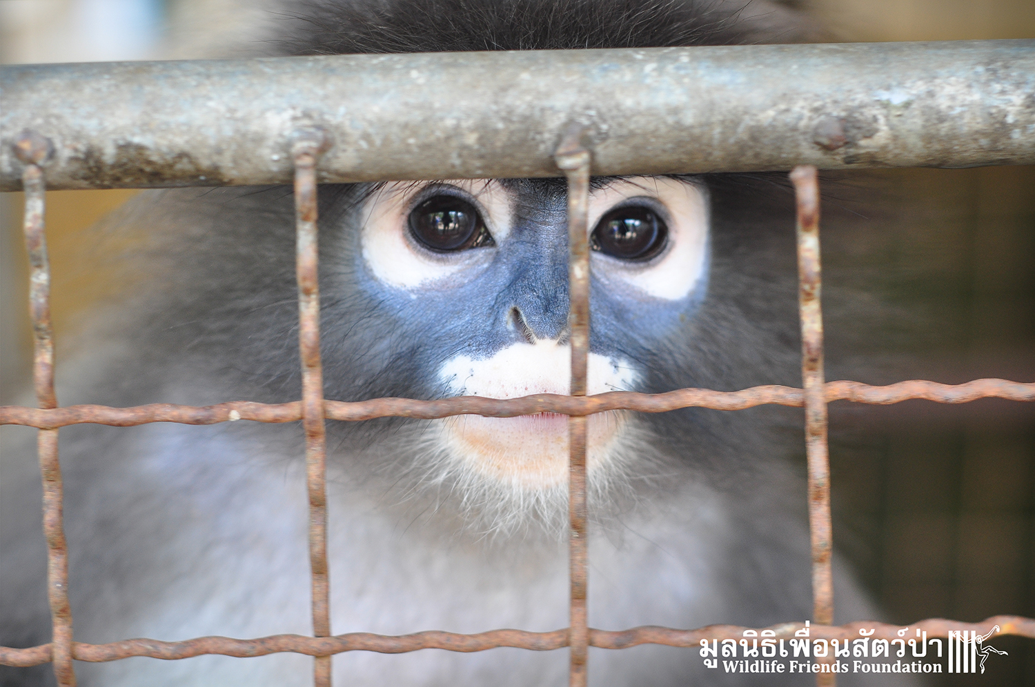 This poor langur would have witnessed her mother being killed in order for her to be poached and then sold illegally on the black market and kept as a pet. Upon realizing that a wild monkey is not a suitable and extremely difficult pet to look after, monkeys all too often end up being abandoned at temples meaning their fate is to remain there for the rest of their lives. For animals such as our latest rescue, Patiw, being released directly into the wild after years of living in captivity and in solitary confinement is very dangerous as they have never had the opportunity to learn their wild ways or how to survive.