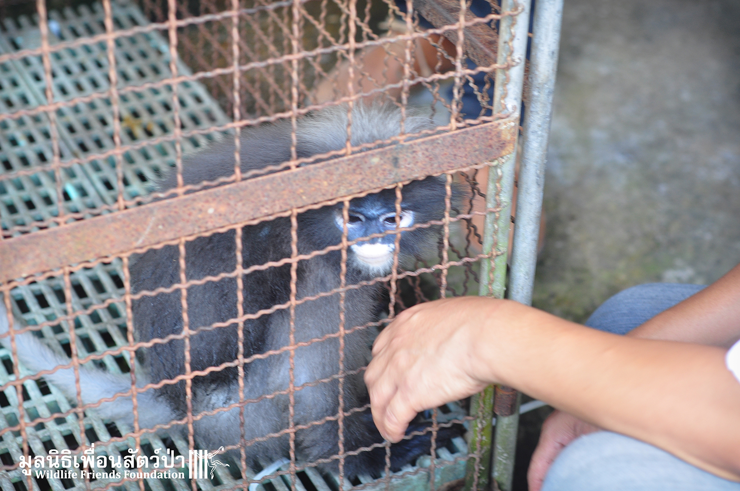 DSC_0318We recently received a call from a long term supporter of WFFT who had news of an adult leaf eating dusky langur (Trachypithecus obscurus) in need of rescue after being attacked by a troop of wild langurs. We were informed that the langur had been taken to a temple in the Chumphon region to be released into the wild by their owner and was believed to have been a pet previously due to how tame and friendly she was. The temple is in an area which is surrounded by substantial forest land with both rubber and palm trees resulting in it being densely populated by wildlife. The WFFT mobile rescue and veterinarian team went in pursuit to help the monkey and brought her back to our rescue centre. Upon arrival she was given a full health check and was found to have a few small wounds as consequence of her encounter of being placed back into the wild at a premature stage of her rehabilitation. Her name is Patiw.