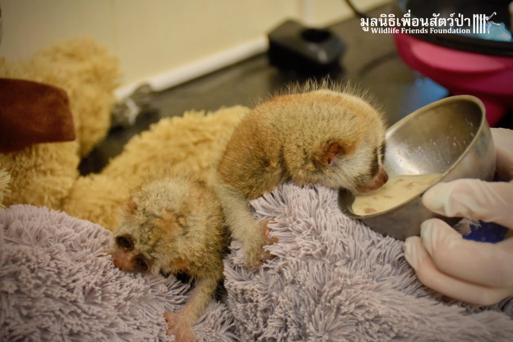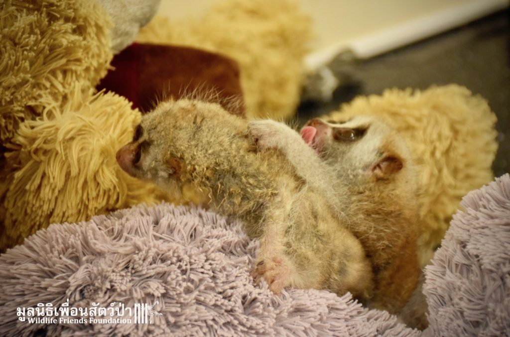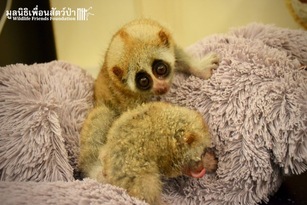 Lots of WFFT’s rescued animals are forming new friendships this week. Fai-Sai and Mongkood, Joe and the fogies, and also Froggy (see full story here: https://www.wfft.org/primates/froggy-baby-slow-loris/ ) and Toady (see full story here: https://www.wfft.org/primates/meet-toady-baby-bengal-slow-loris/ ). Have a look at the 2 infant Bengal slow Loris, enjoying some daily exercise which turns more into some fun recreation time together.