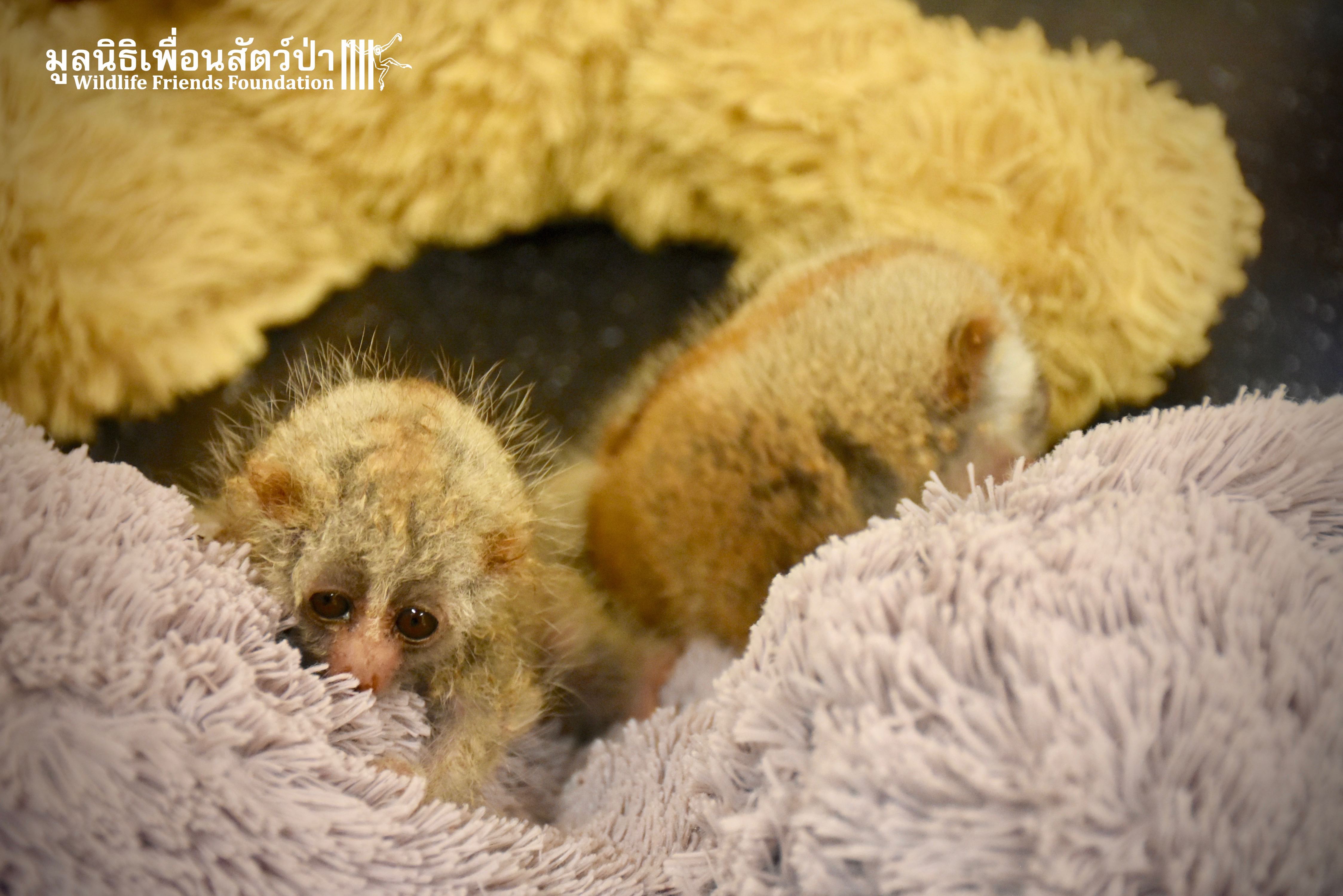 Lots of WFFT’s rescued animals are forming new friendships this week. Fai-Sai and Mongkood, Joe and the fogies, and also Froggy (see full story here: https://www.wfft.org/primates/froggy-baby-slow-loris/ ) and Toady (see full story here: https://www.wfft.org/primates/meet-toady-baby-bengal-slow-loris/ ). Have a look at the 2 infant Bengal slow Loris, enjoying some daily exercise which turns more into some fun recreation time together.
