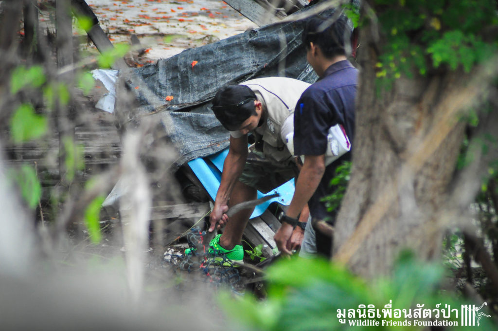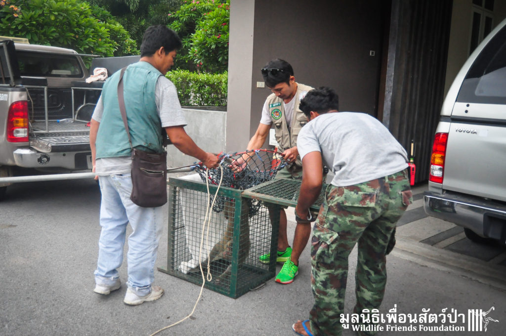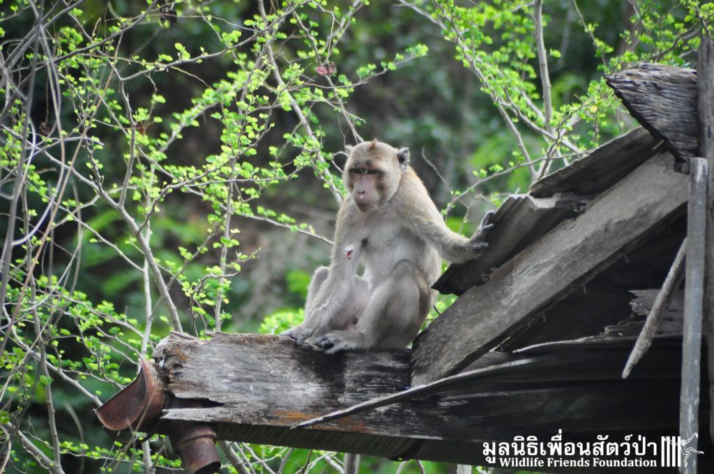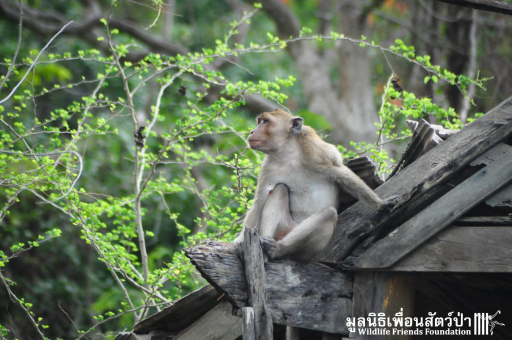 We received a call about a rogue male long-tailed macaque (Macaca fascicularis) that had been found inside a hotel in Hua Hin. The staff were scared of his presence, worried he was going to attack and injure someone. In an attempt to scare him away they began using a sling shot to hit him on the head with rocks. Luckily a concerned staff member called us before he was seriously injured or worse, killed. The WFFT Rescue Team headed out immediately to help him. Upon arrival to the scene the monkey was located, sedated and moved away from the area. He was taken to the WFFT Wildlife Hospital for a check up.