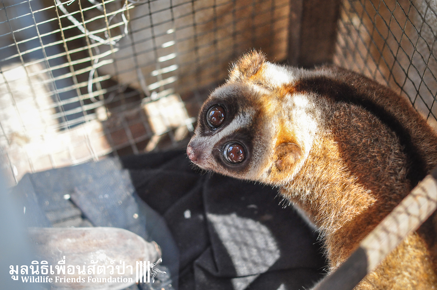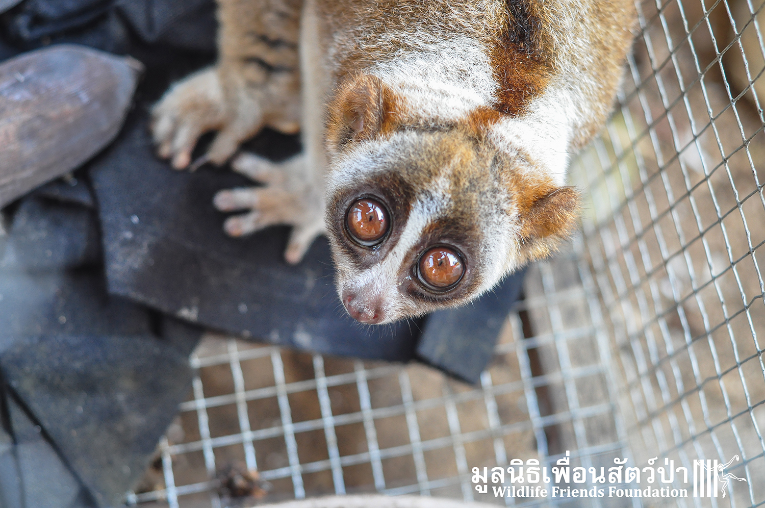 This little loris was transported to WFFT and will stay here until the current dry season is over and he is deemed healthy enough to return to the wild. WFFT apposes the keeping of wildlife as pets sadly the keeping of slow lorises is becoming more and more common. We will continue to try and educate people on the problems facing this increasingly endangered prosimian primate and why it is never appropriate to keep them as pets.
