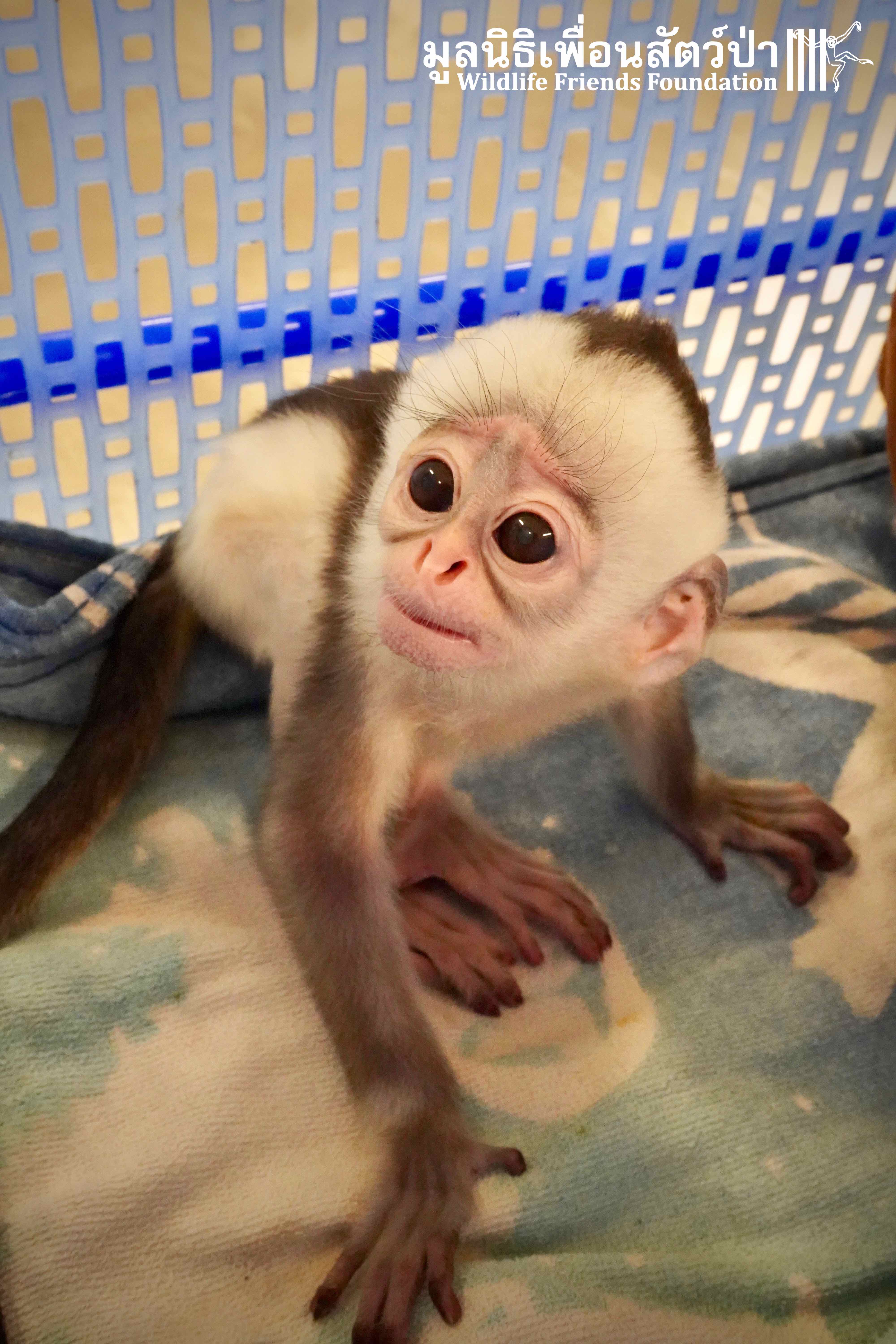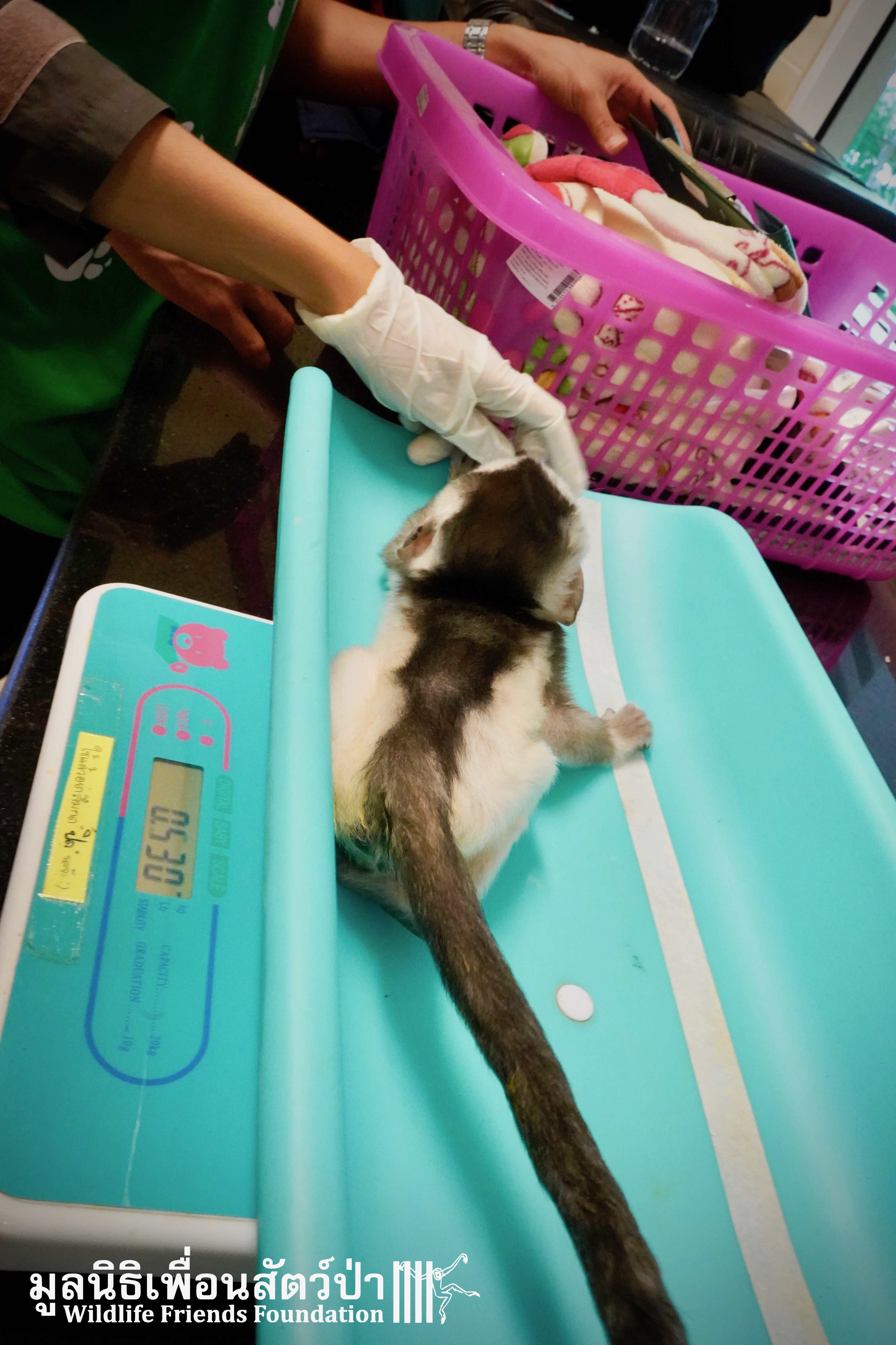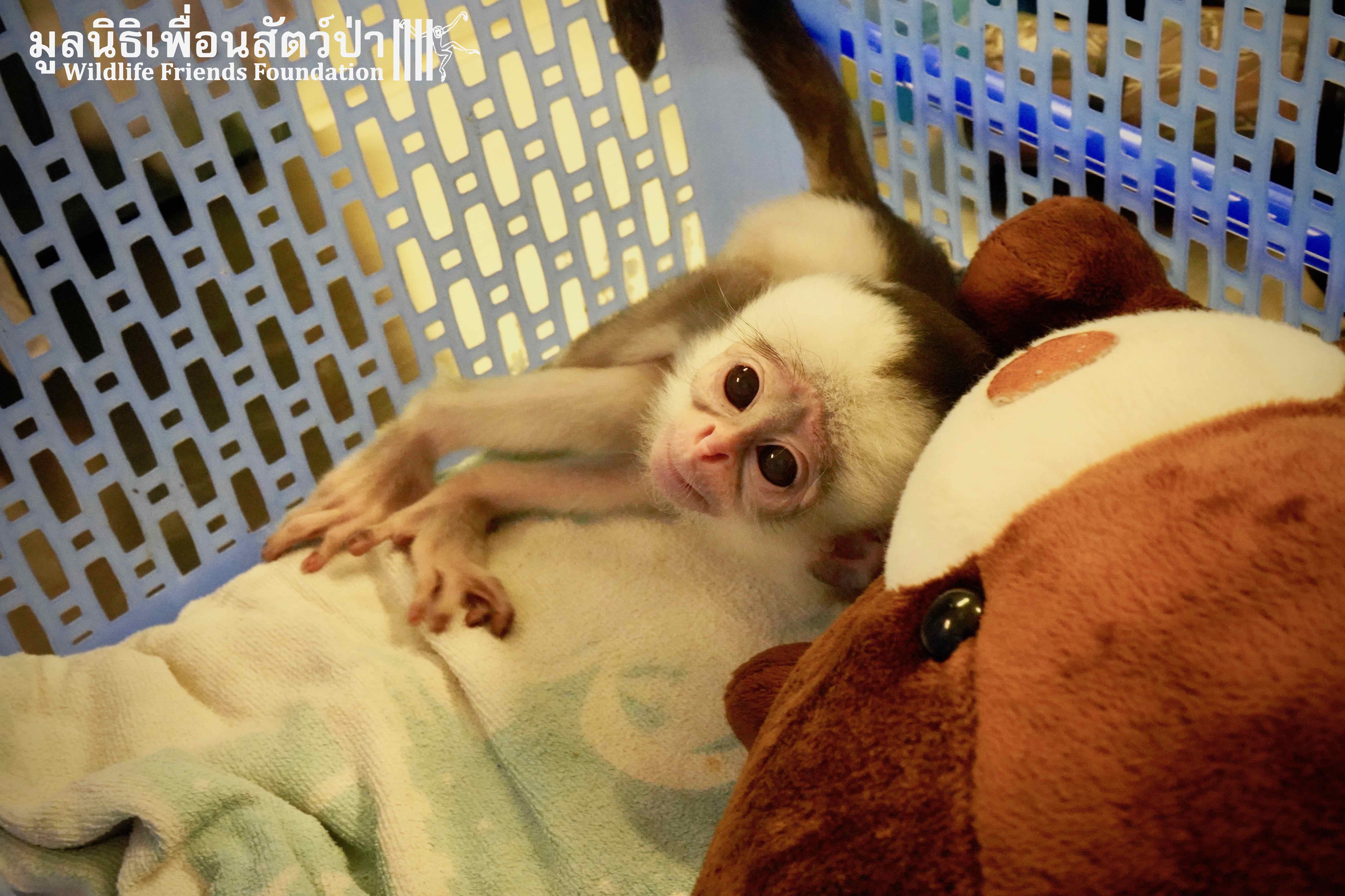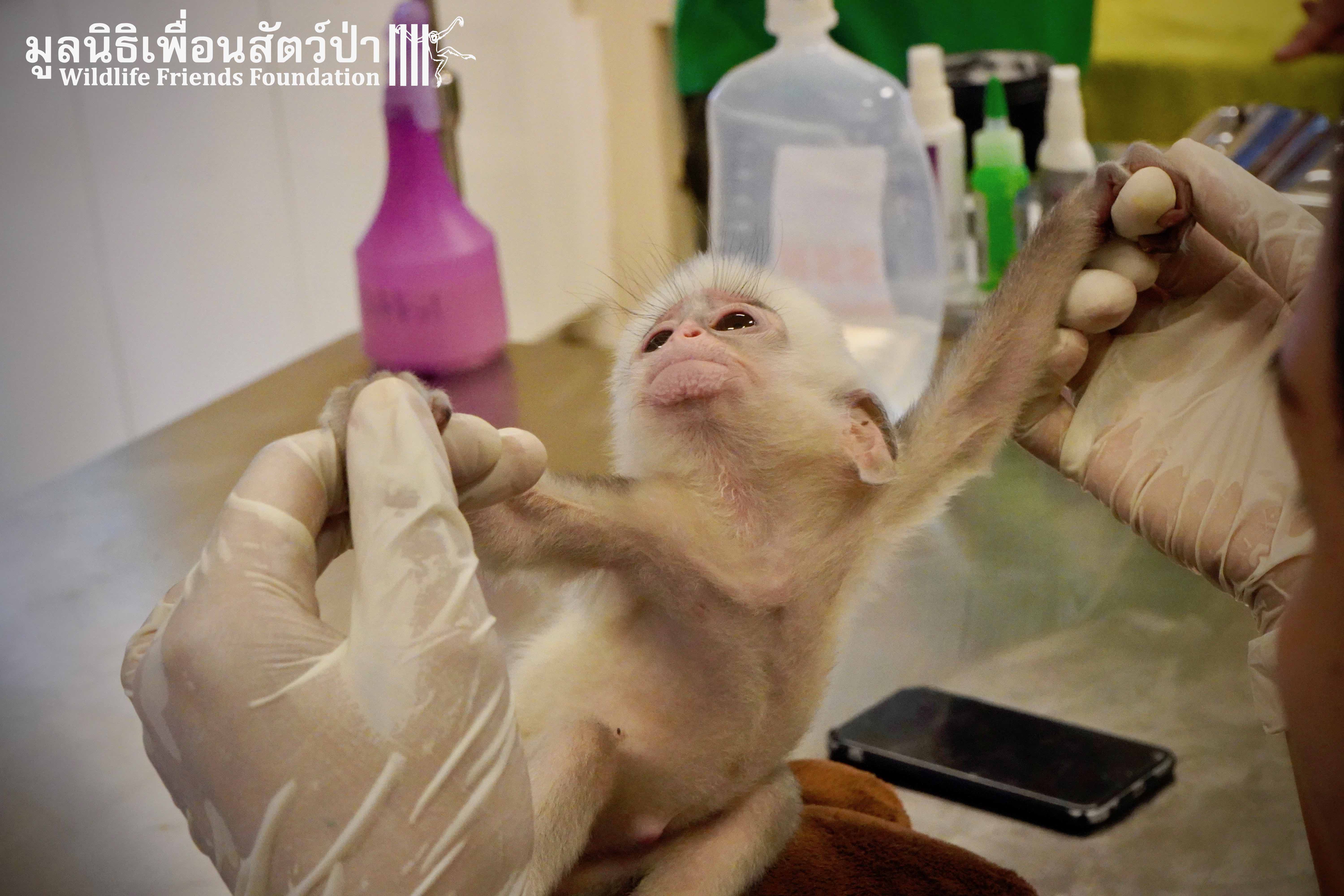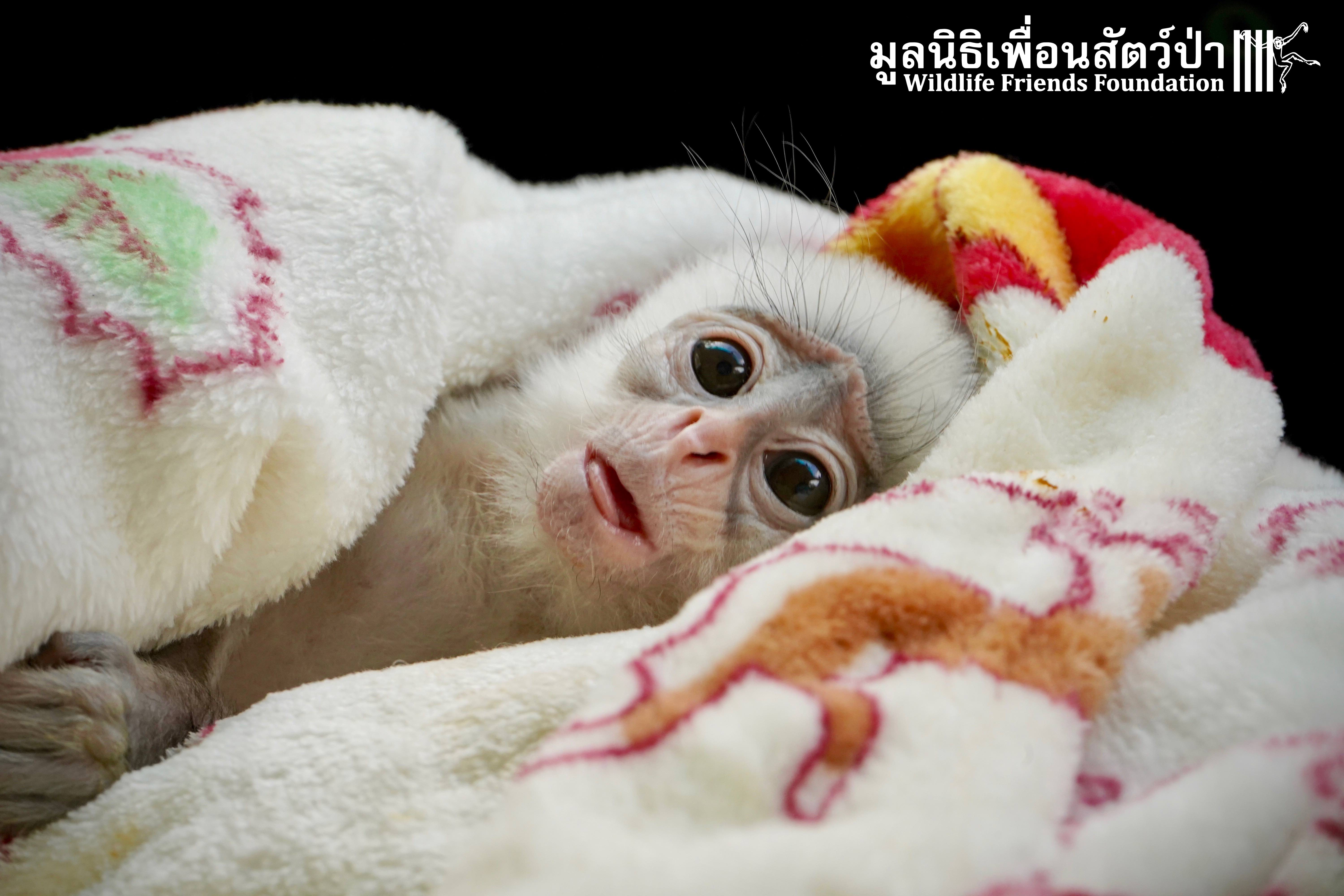 A few days ago we welcomed a new species to the WFFT Wildlife Rescue Centre, an infant Banded langur (Presbytis femoralis). We received a call for help from a lady who had found this sick little infant monkey three days prior to contacting us. We were told he was found alone near a forested area in Southeast Thailand. However here in Thailand this species is only found in peninsular Thailand. This means this little one must have been dumped into the forest as he was hundreds of miles away from where his species may be found in the wild. Another sad victim of the illegal wildlife trade. The WFFT Rescue Team headed out on the long drive to collect this sickly little monkey.