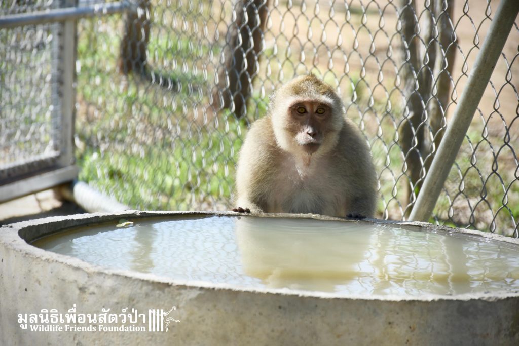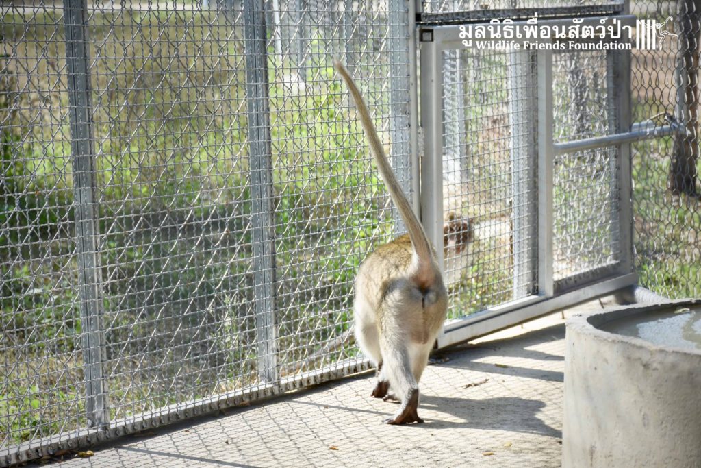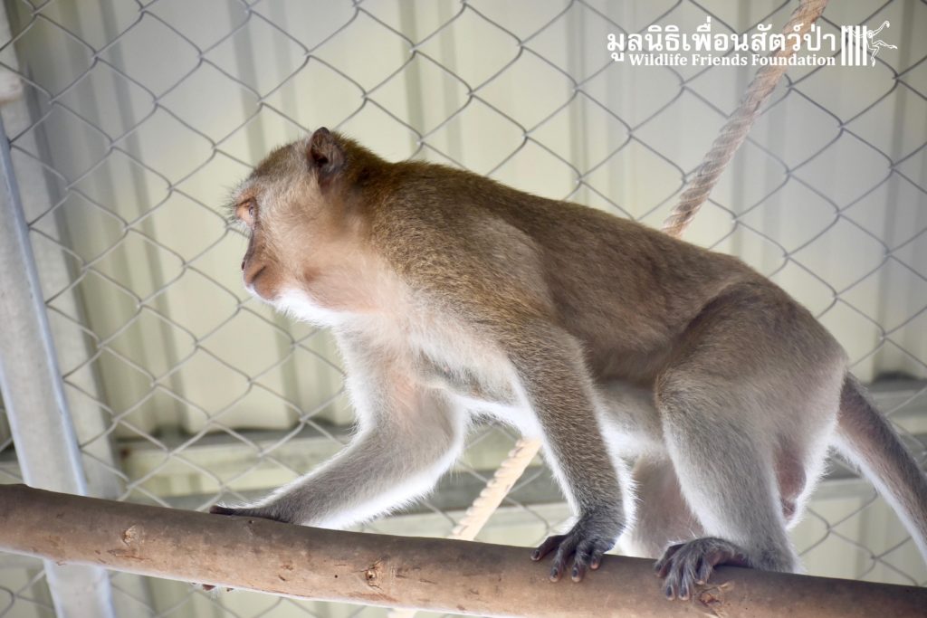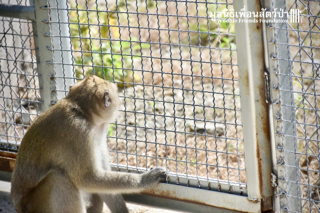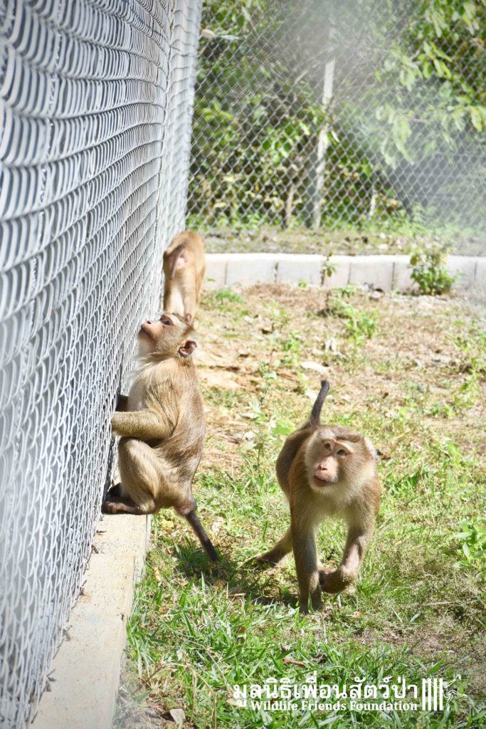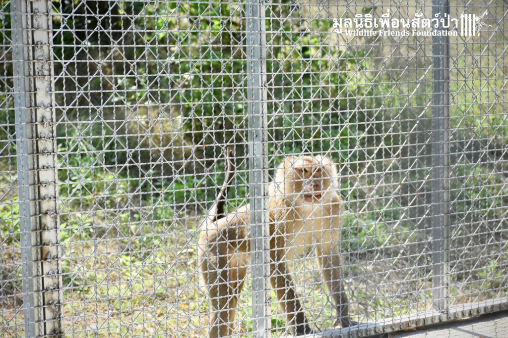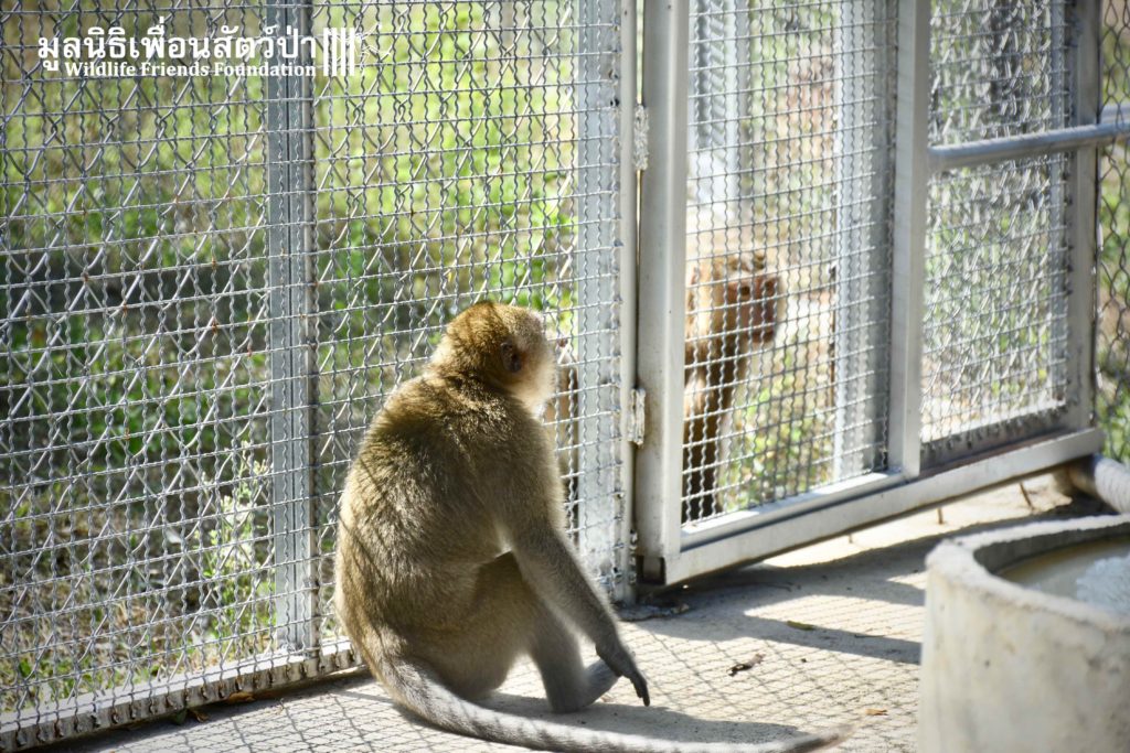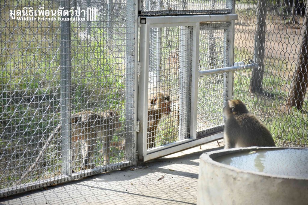 Remember Mali, a female long-tailed macaque rescued last month (full story here: https://www.wfft.org/wildlife-general/rescued-pet-mali-arrives-wfft-centre/), well, after a stay in our quarantine area (where all of our residents make a temporary stay) for observation and to adjust to her new environment, she has been moved to the side enclosure of the big Newland 19 macaque open field enclosure. Indeed, this enclosure is a real success for us. The biggest group at WFFT to live together in harmony. When some of our broken souls looks like a good candidate to integrate the group, the procedure is to move them into a side enclosure first. This area lets the future troop members to get used to a bigger space, but more importantly allows them to meet their new friends through the fence. The troop members are always intrigued by new arrivals, they come to investigate, smell, and see the new ones. We can then observe their behavior and suitability to become a new troop member.
