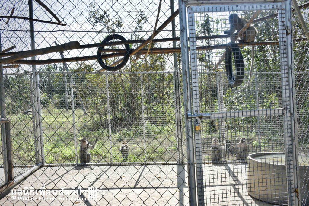 The first side enclosures as part of our new coconut monkey project have been completed, and six rescued macaques have moved in.