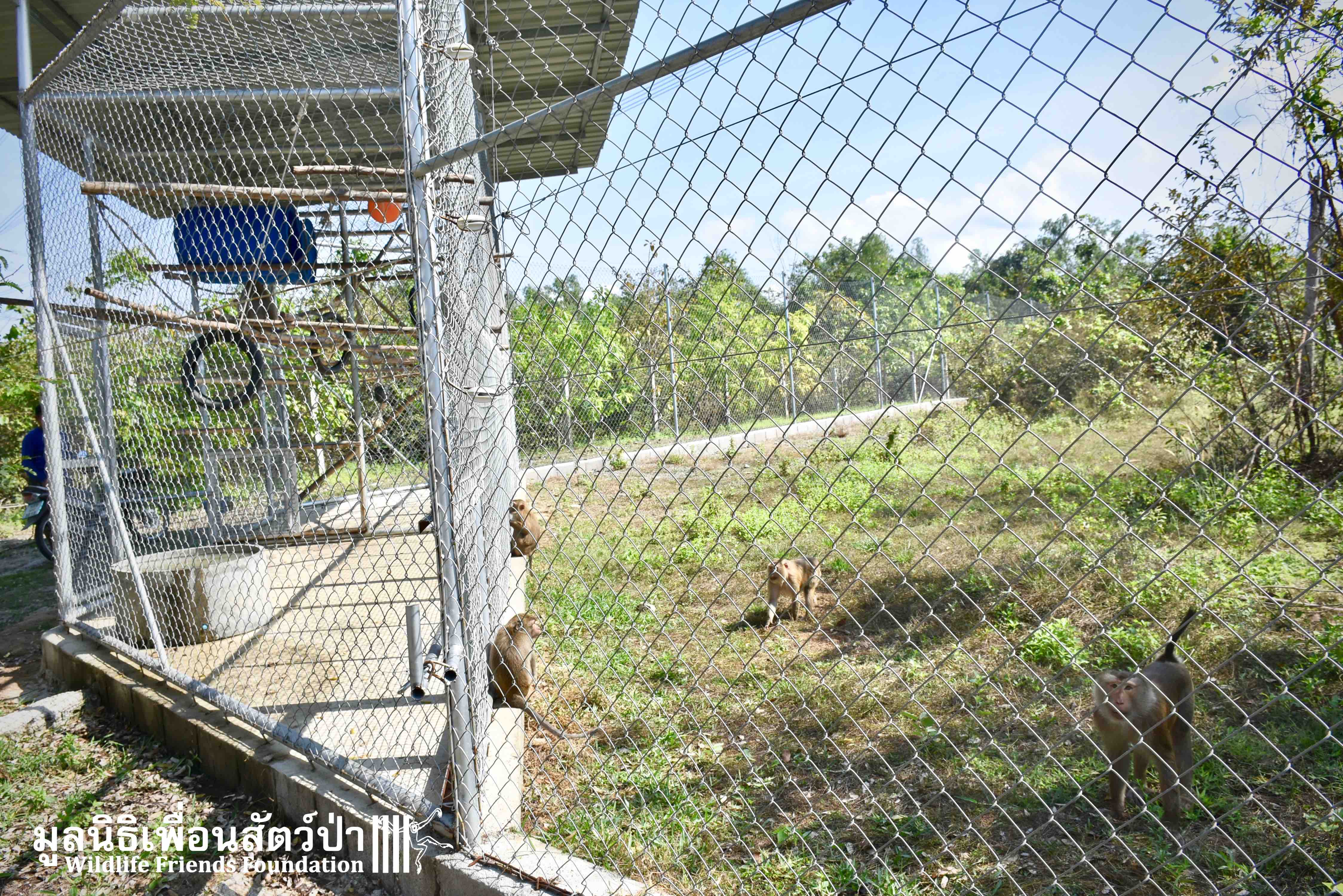 The first side enclosures as part of our new coconut monkey project have been completed, and six rescued macaques have moved in.