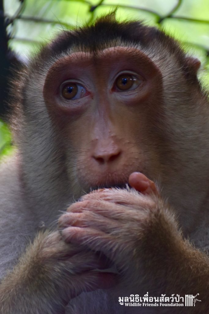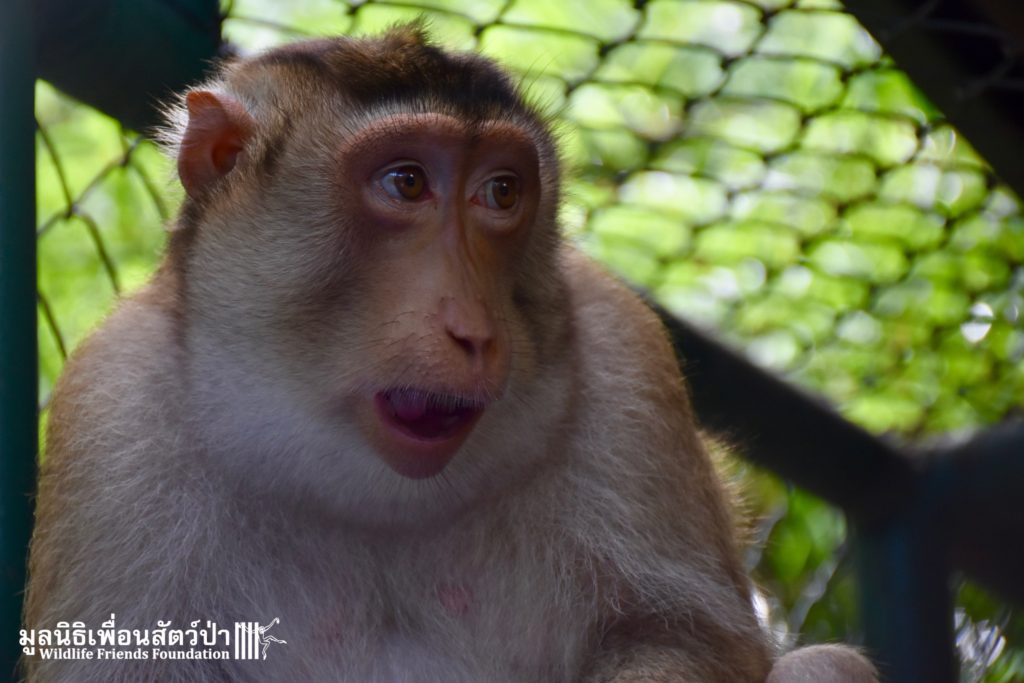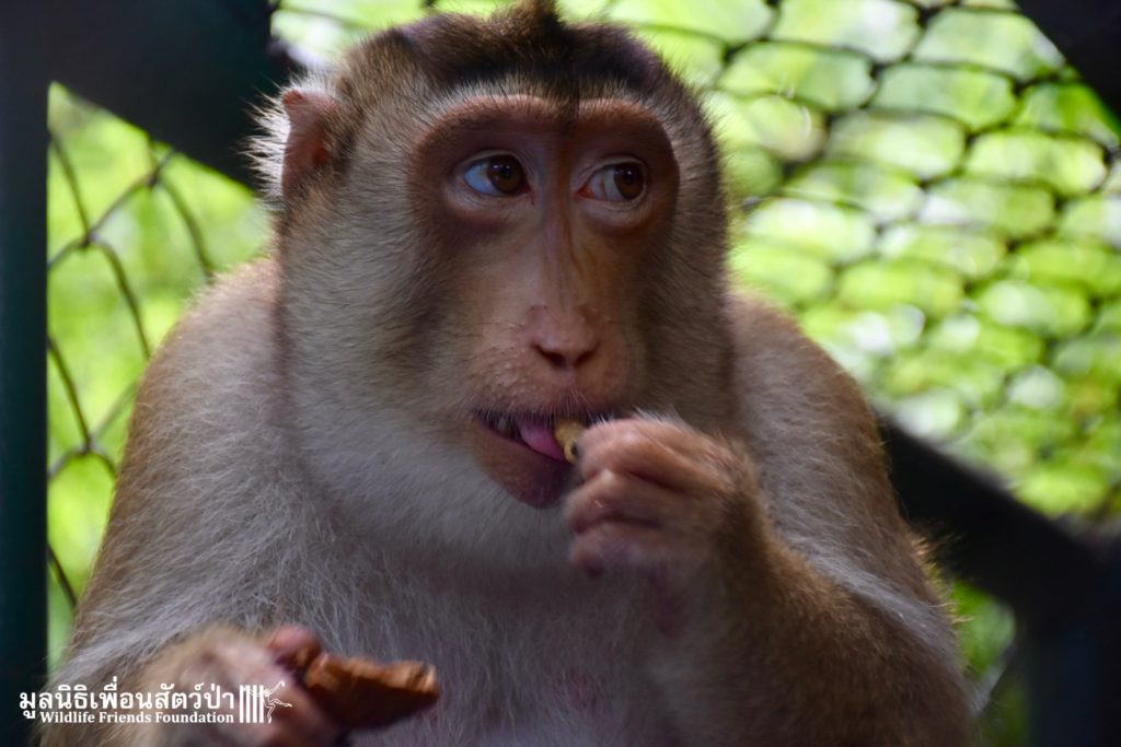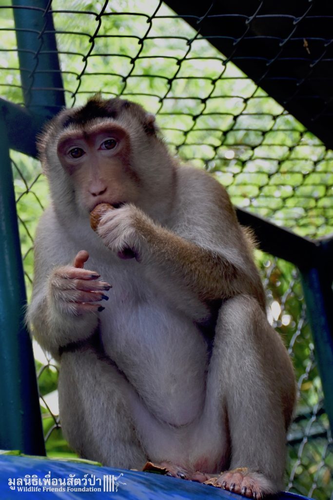 Bobo arrived at WFFT yesterday and seems to be settling in well. WFFT currently houses two other Southern pig-tailed macaques, male silver and female Nam Phet, we hope that we can introduce all three monkeys together soon. Silver has already shown great interest in her from a distance. We will keep you updates on her progress.