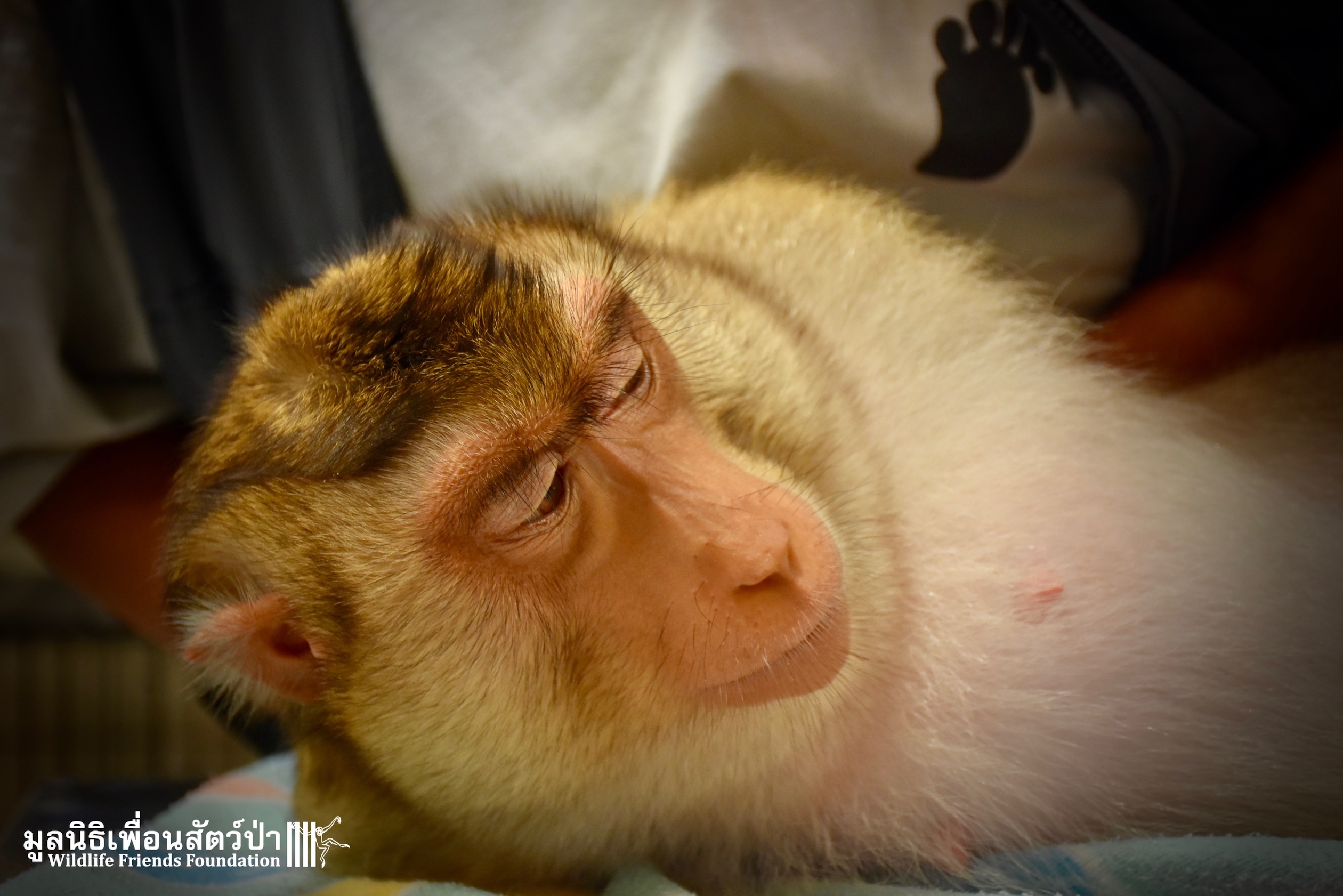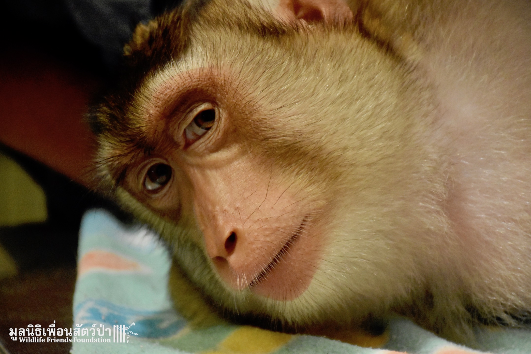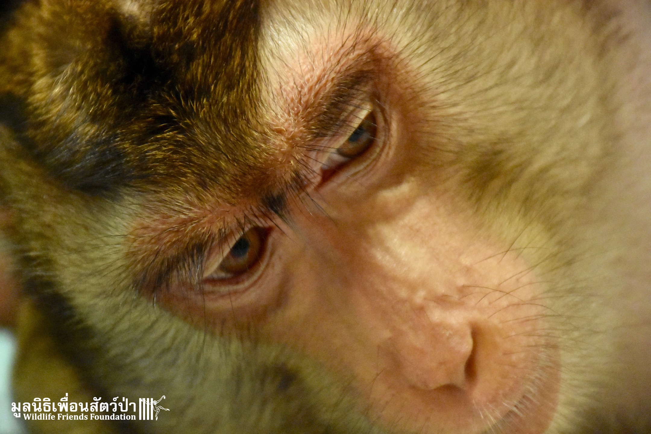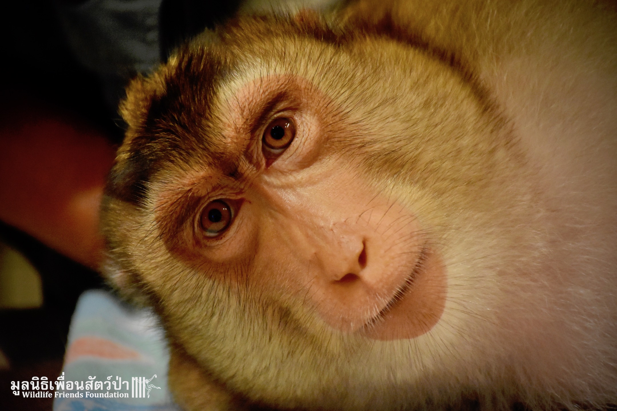 Meet Bobo – a 5-year-old female Southern pig-tailed macaque (Macaca nemestrina) who had been kept as a pet for five years in Samut Songkhram, south of Bangkok. She was purchased illegally from Facebook for 5000THB when she was approximately 3 months old by international resident. The lady in question is going home soon so needed to find a suitable new place for her pet monkey. She was still sleeping in the bed with her owner, and had been provided with a cage in the garden during the day.
