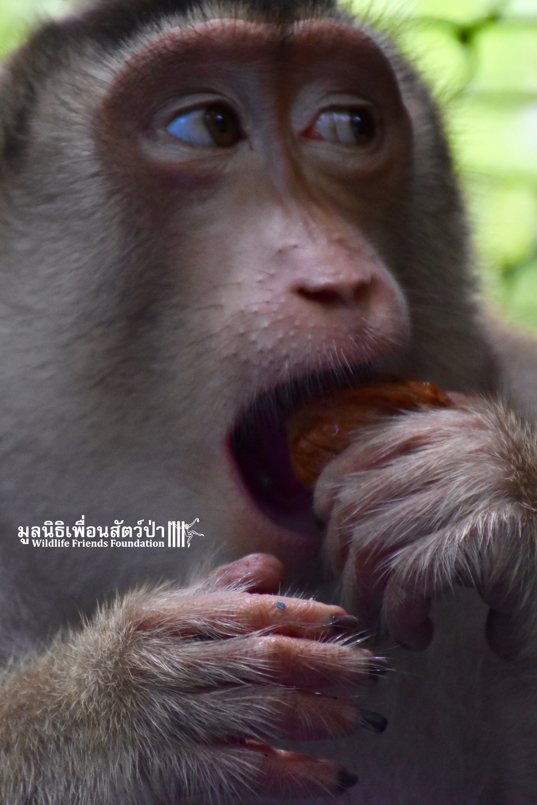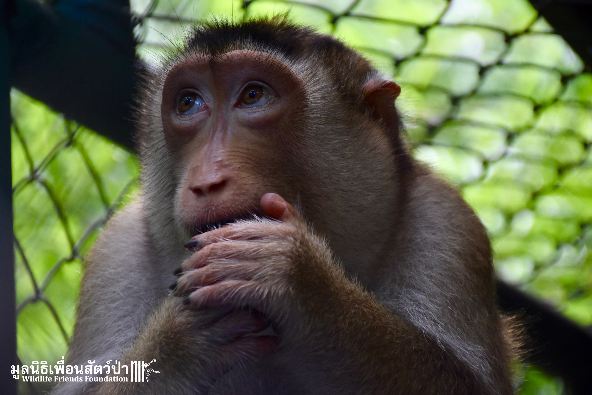 Bobo arrived at WFFT yesterday and seems to be settling in well. WFFT currently houses two other Southern pig-tailed macaques, male silver and female Nam Phet, we hope that we can introduce all three monkeys together soon. Silver has already shown great interest in her from a distance. We will keep you updates on her progress.
