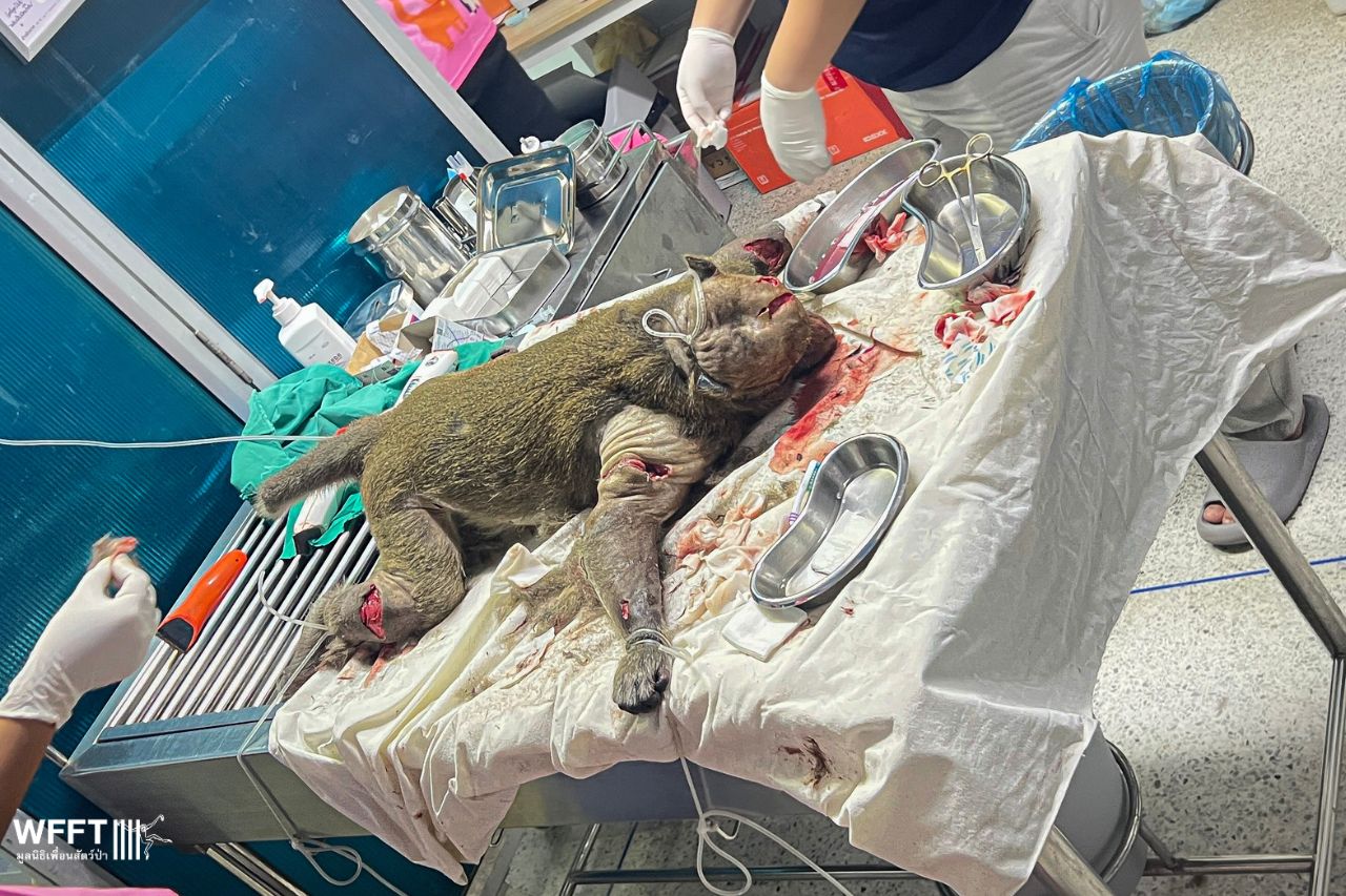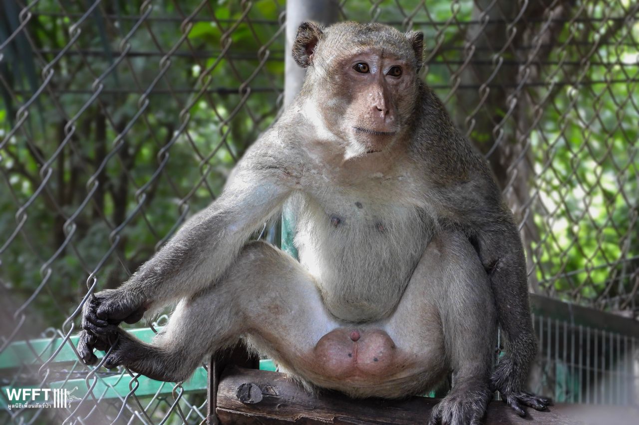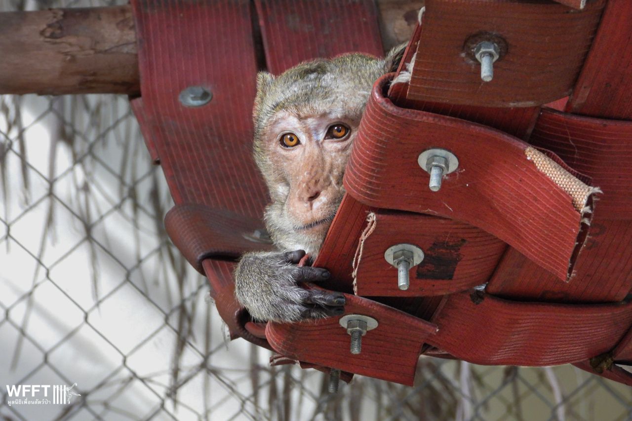 Earlier this month, a poor long-tailed macaque named Duan arrived at our sanctuary as an emergency case. He’d been viciously attacked by other monkeys, suffering horrific wounds that required intensive care and stitches all over his body and head. It’s truly a miracle he survived.