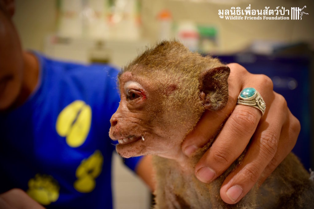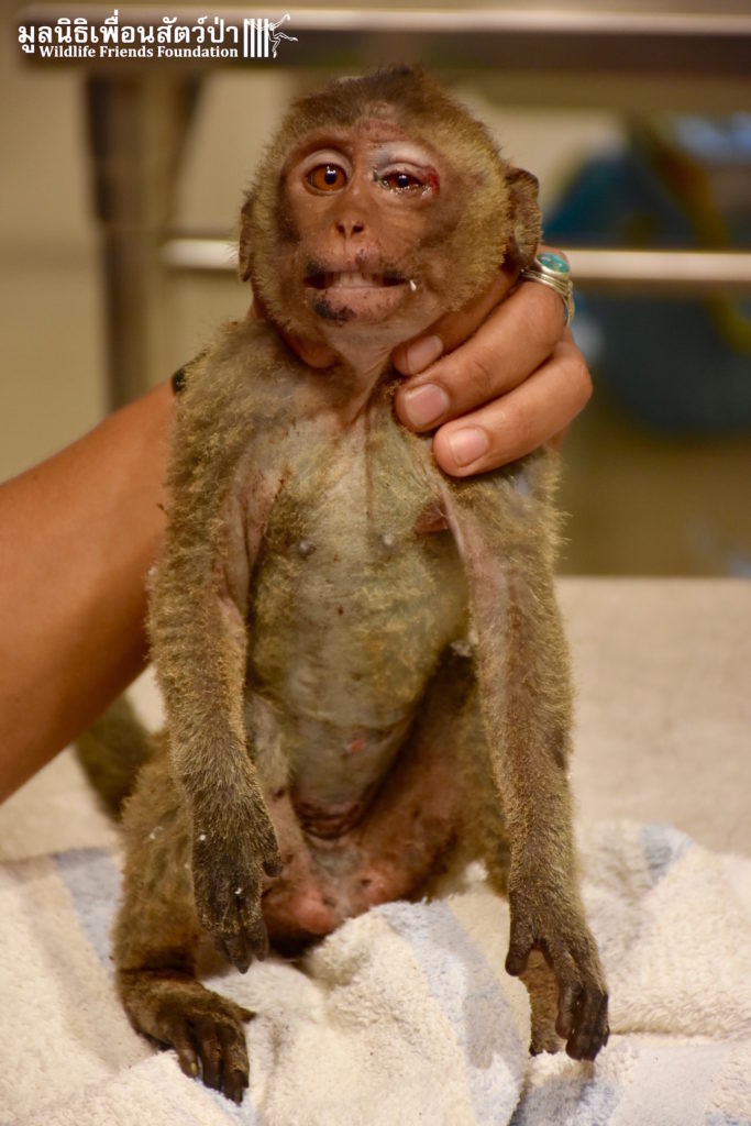 Electrocuted Juvenile Long-tailed Macaque Rescued