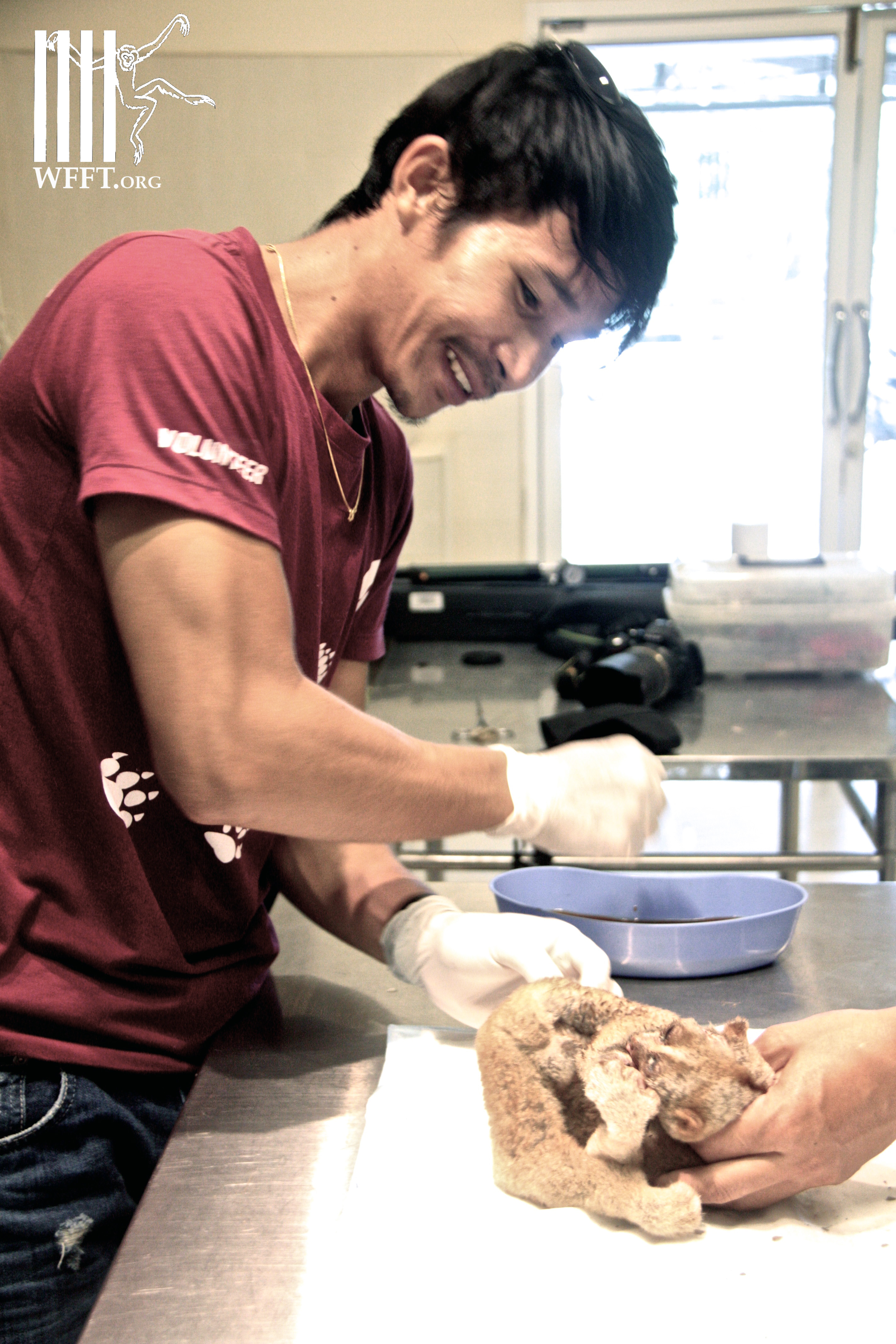 WFFT hospital staff is treating the slow loris currently and keeping a close eye on its health for the days to come. Once the loris is completely recovered he will be released back to the wild.