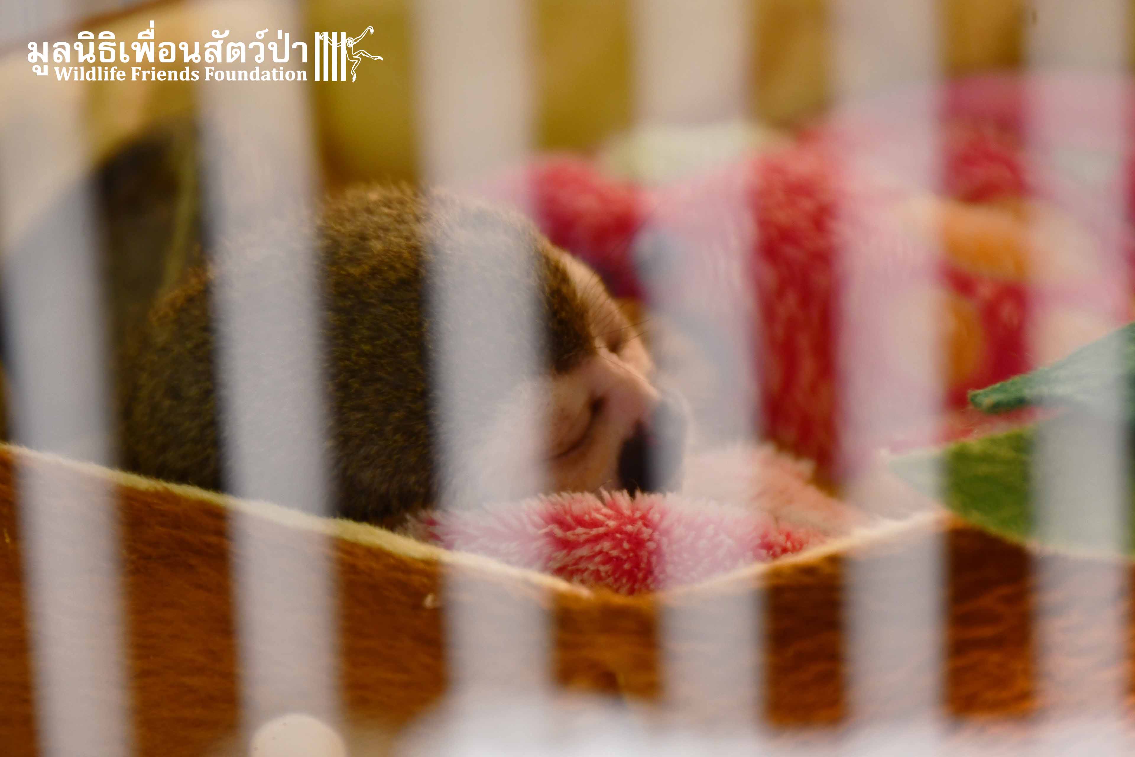 เขาจึงตัดสินใจติดต่อWFFTเพื่อหาบ้านหลังใหม่ที่เหมาะสมดีกว่าขายให้คนอื่นไปเลี้ยงต่อ ขณะนี้ฟร๊องอายุเพียงแค่2เดือนซึ่งในธรรมชาติยังจำเป็นต้องการความดูแลจากแม่และครอบครัวอยู่ ทีมสัตวแพทย์ของเราจึงจำเป็นต้องดูแลลอด 24 ชั่วโมง เราอาจจะให้ความอบอุ่นได้ไม่เท่าแม่ลิงของฟร๊องแต่เราจะพยายามดูแลฟร๊องให้ได้ใช้ชีวิตใกล้เคียงกับธรรมชาติที่สุดเท่าที่จะทำได้