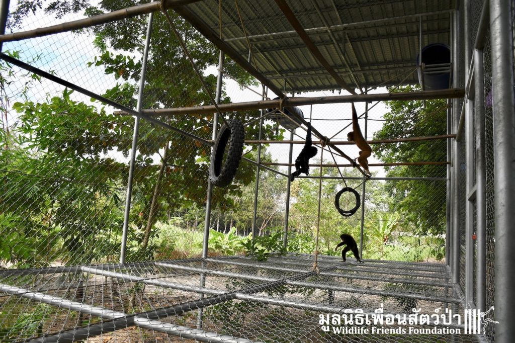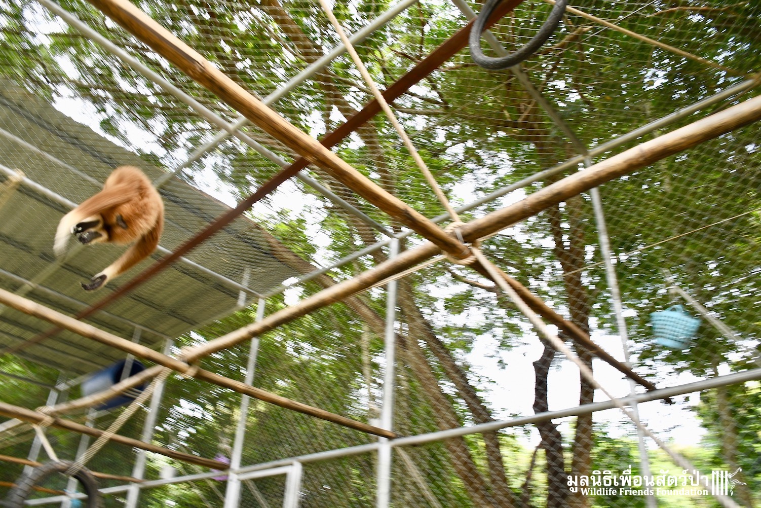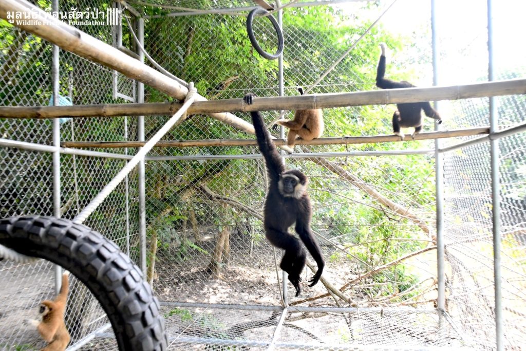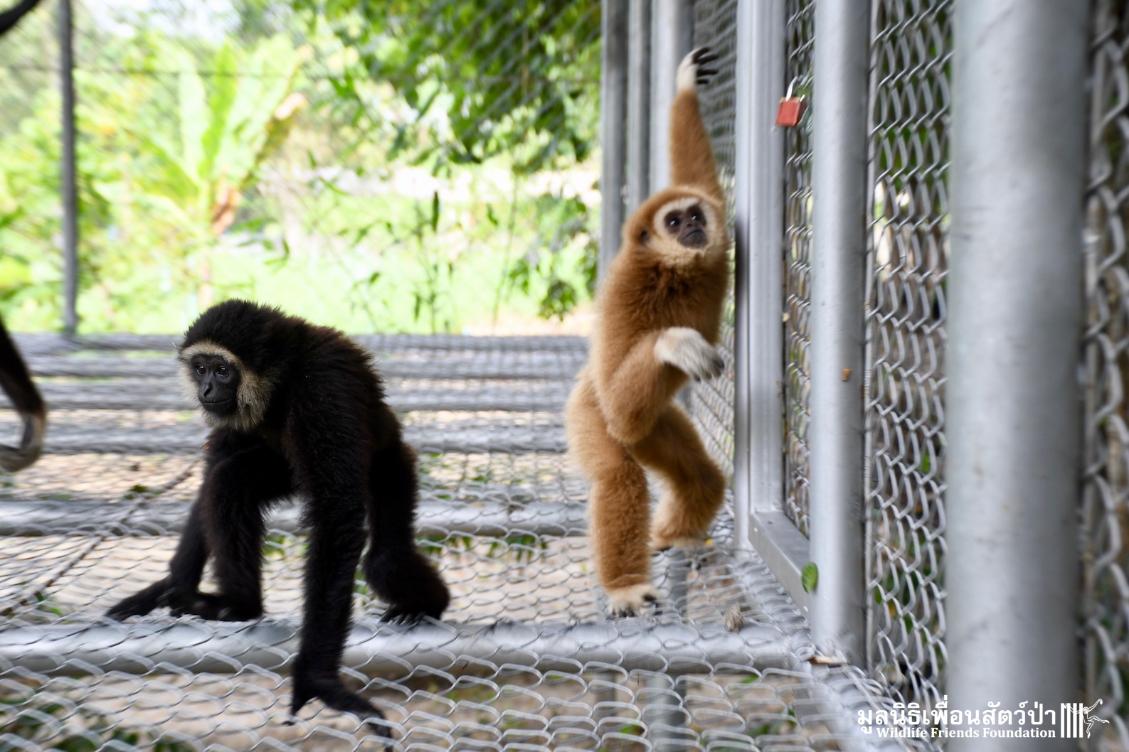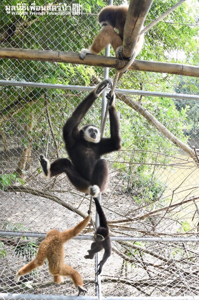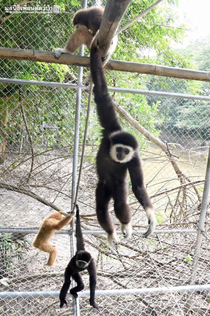 เมื่อวานนี้ ที่มูลนิธิเพื่อนสัตว์ป่า จ.เพชรบุรี ชะนีน้อยของเรา 4 ตัว ได้เข้าไปสู่อีกหนึ่งขั้นตอนของการฟื้นฟู แต่ด้วยวัยเพียง 2-4 ปี ยังเหลือเวลาอีกไม่กี่ปี ก่อนที่พวกเขาจะพร้อมให้จับคู่ต่างเพศเพื่อพัฒนาความสัมพันธ์ และสร้างครอบครัวตามธรรมชาติต่อไป หลังจากที่ใช้เวลาพอสมควรในการเฝ้าดูแลจากทีมสัตว์แพทย์ของมูลนิธิเพื่อนสัตว์ป่า ขณะนี้เราได้หาบ้านใหม่ให้เขา เพื่อให้เขาสามารถเรียนรู้การใช้ชีวิตกับเผาพันธุ์ของพวกเขาเอง โดยไม่จำเป็นต้องพึ่งพามนุษย์เหมือนเช่นเคย ห่างไกลจากมนุษย์ให้มากยิ่งขึ้น สิ่งแวดล้อมกว้างขวางใหญ่ขึ้น เป็นธรรมชาติมากยิ่งขึ้น และแน่นอนเราหวังว่า สถานที่ต่อไปของพวกเขาน่าจะเป็นเกาะฟื้นฟูชะนีของมูลนิธิเพื่อนสัตว์ป่า ที่ได้เตรียมไว้ต้อนรับพวกเขาเพื่อให้เขากลับสู่ธรรมชาติอย่างสมบูรณ์แบบ แต่ตอนนี้ทุกท่านคงเห็นได้เห็นภาพที่บรรดาชะนีหนุ่มสาวเหล่านี้กำลังสำรวจบ้านใหม่อย่างสนุกสนาน