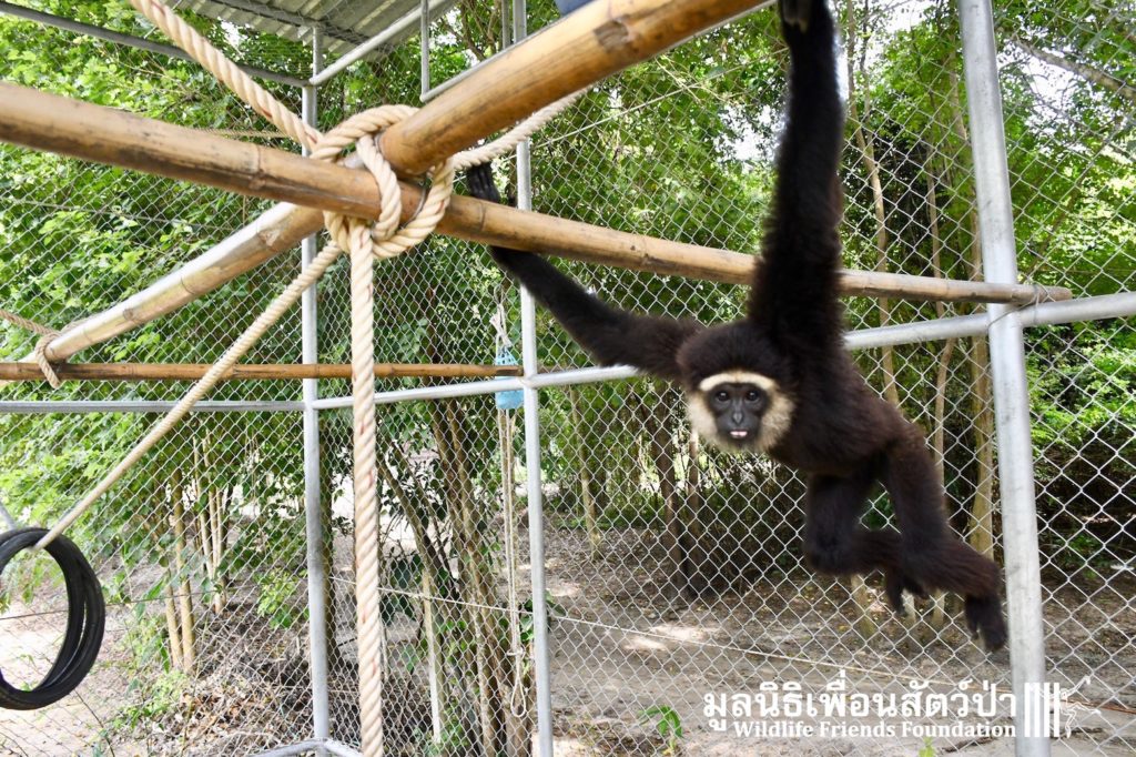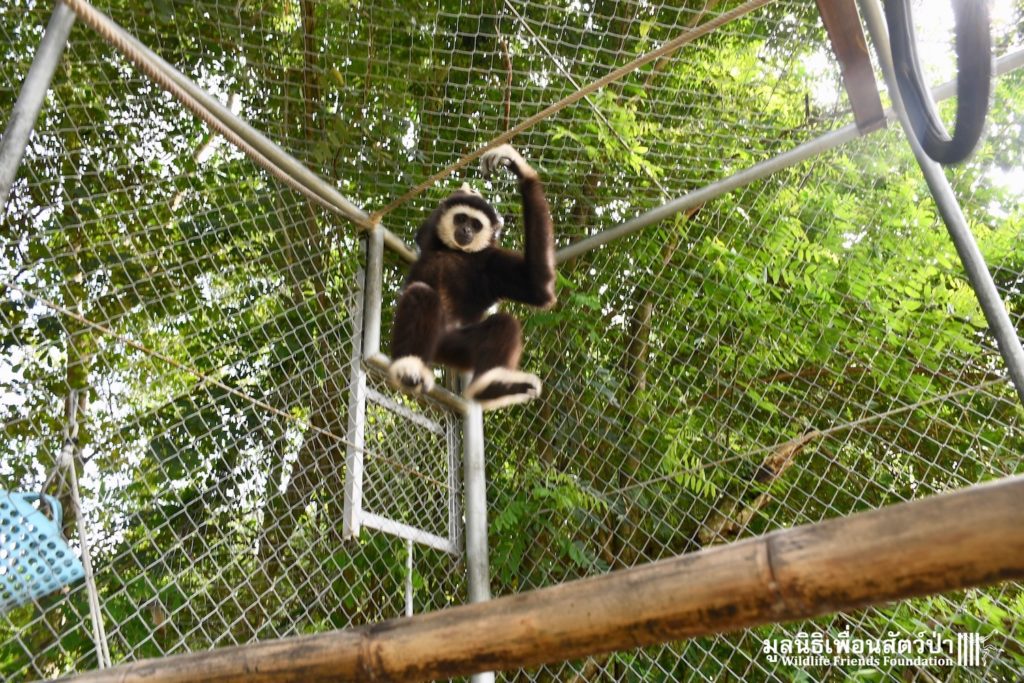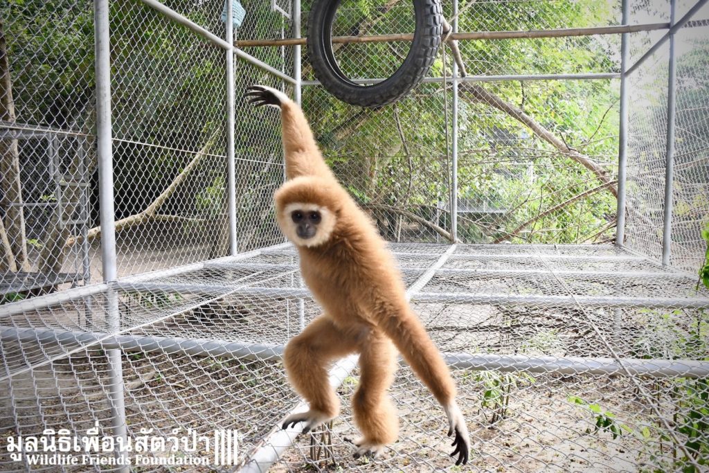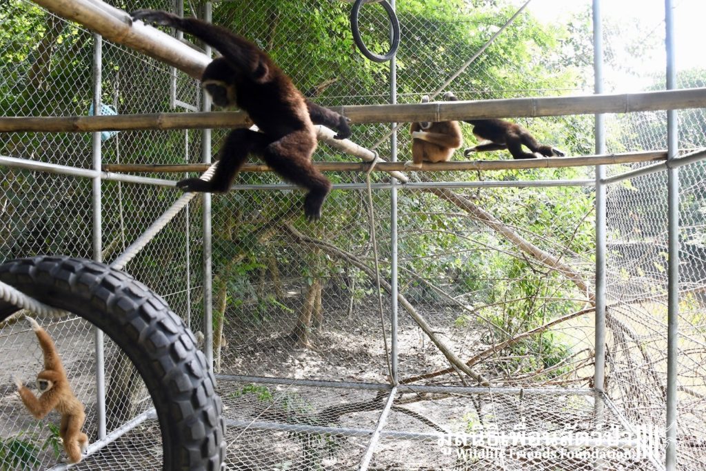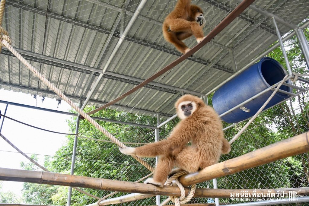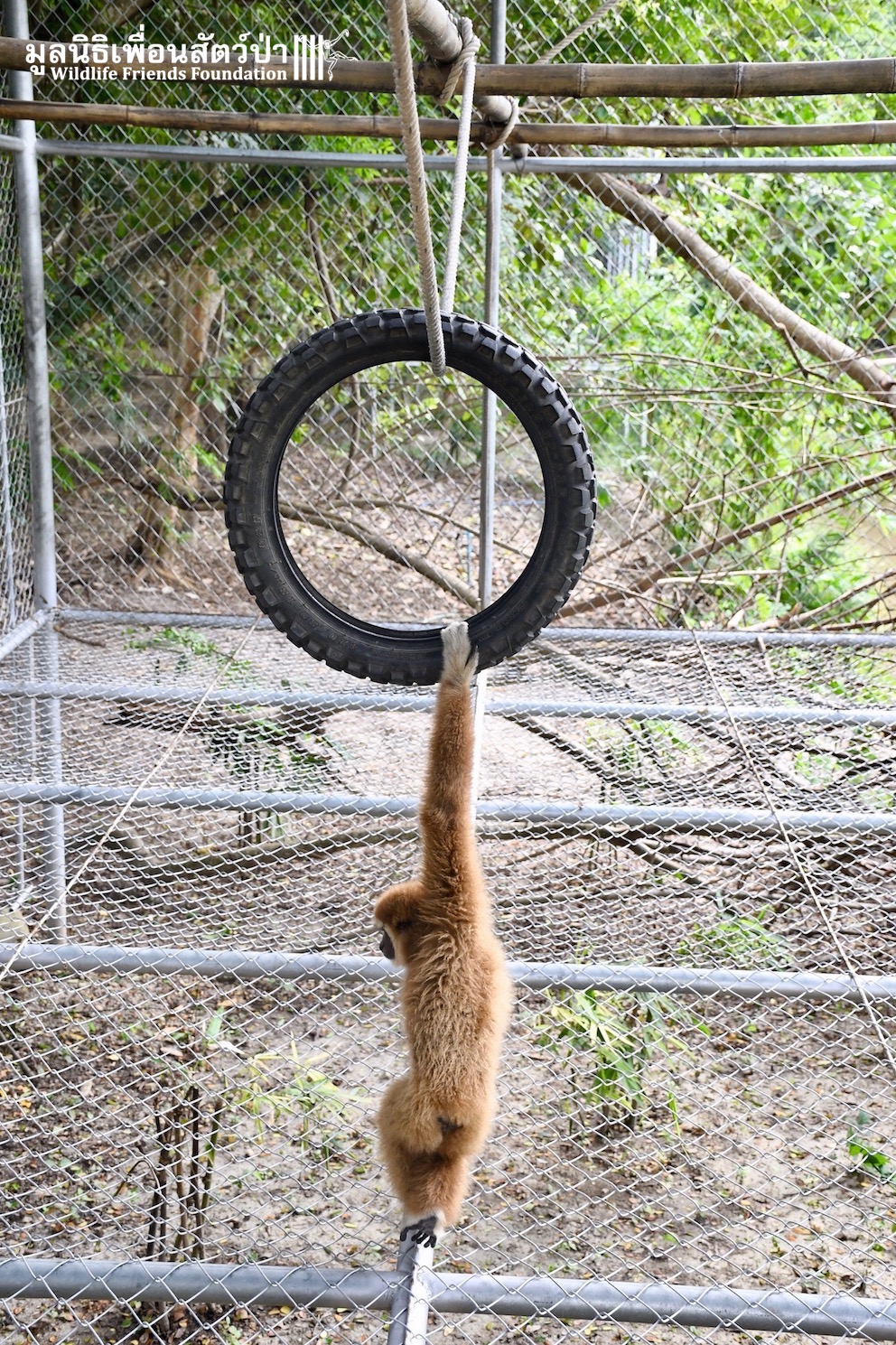 เมื่อวานนี้ ที่มูลนิธิเพื่อนสัตว์ป่า จ.เพชรบุรี ชะนีน้อยของเรา 4 ตัว ได้เข้าไปสู่อีกหนึ่งขั้นตอนของการฟื้นฟู แต่ด้วยวัยเพียง 2-4 ปี ยังเหลือเวลาอีกไม่กี่ปี ก่อนที่พวกเขาจะพร้อมให้จับคู่ต่างเพศเพื่อพัฒนาความสัมพันธ์ และสร้างครอบครัวตามธรรมชาติต่อไป หลังจากที่ใช้เวลาพอสมควรในการเฝ้าดูแลจากทีมสัตว์แพทย์ของมูลนิธิเพื่อนสัตว์ป่า ขณะนี้เราได้หาบ้านใหม่ให้เขา เพื่อให้เขาสามารถเรียนรู้การใช้ชีวิตกับเผาพันธุ์ของพวกเขาเอง โดยไม่จำเป็นต้องพึ่งพามนุษย์เหมือนเช่นเคย ห่างไกลจากมนุษย์ให้มากยิ่งขึ้น สิ่งแวดล้อมกว้างขวางใหญ่ขึ้น เป็นธรรมชาติมากยิ่งขึ้น และแน่นอนเราหวังว่า สถานที่ต่อไปของพวกเขาน่าจะเป็นเกาะฟื้นฟูชะนีของมูลนิธิเพื่อนสัตว์ป่า ที่ได้เตรียมไว้ต้อนรับพวกเขาเพื่อให้เขากลับสู่ธรรมชาติอย่างสมบูรณ์แบบ แต่ตอนนี้ทุกท่านคงเห็นได้เห็นภาพที่บรรดาชะนีหนุ่มสาวเหล่านี้กำลังสำรวจบ้านใหม่อย่างสนุกสนาน