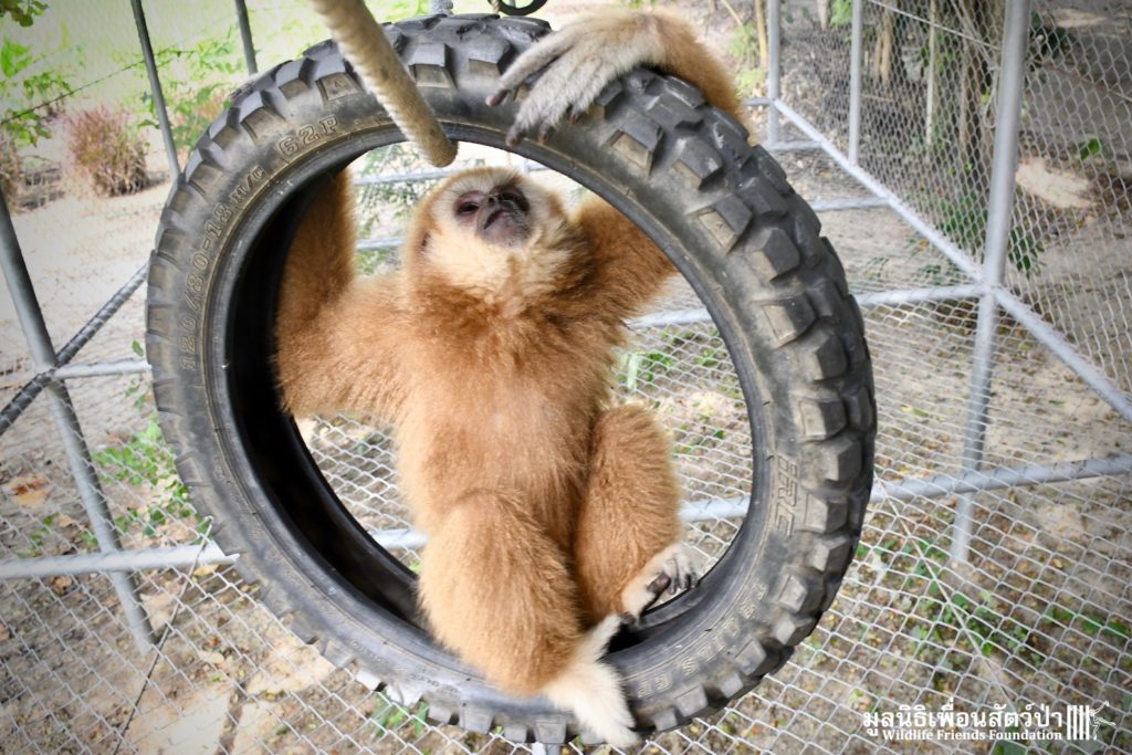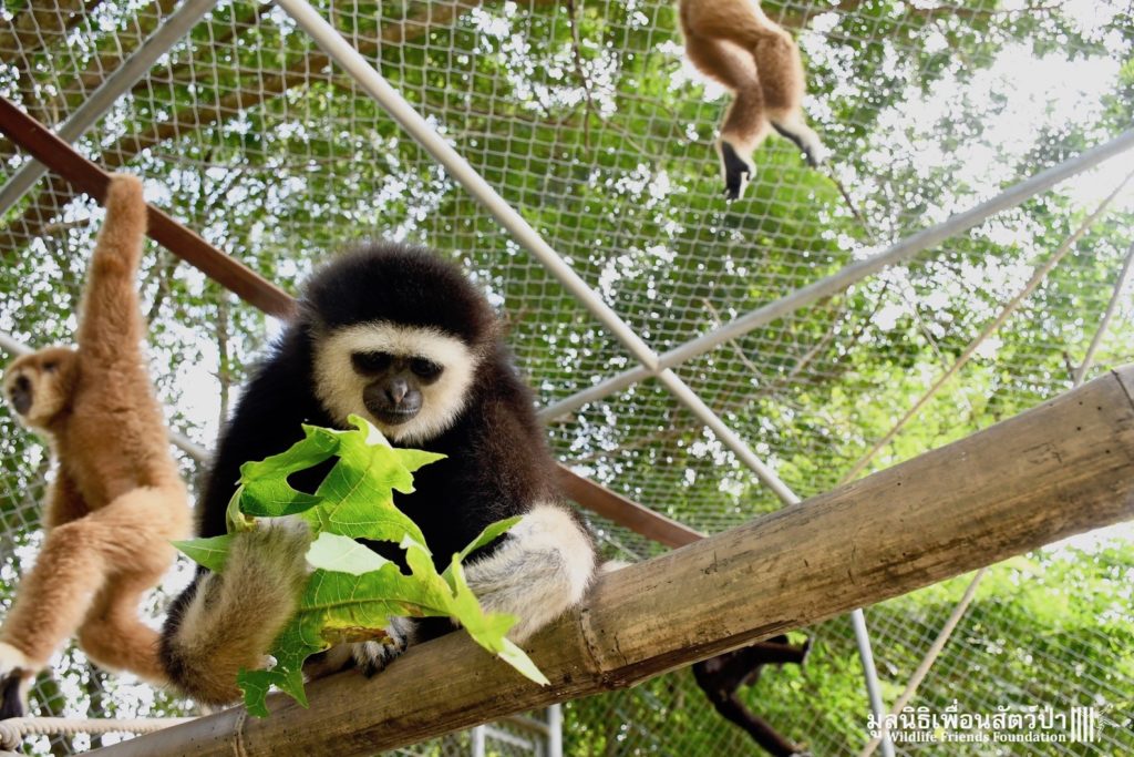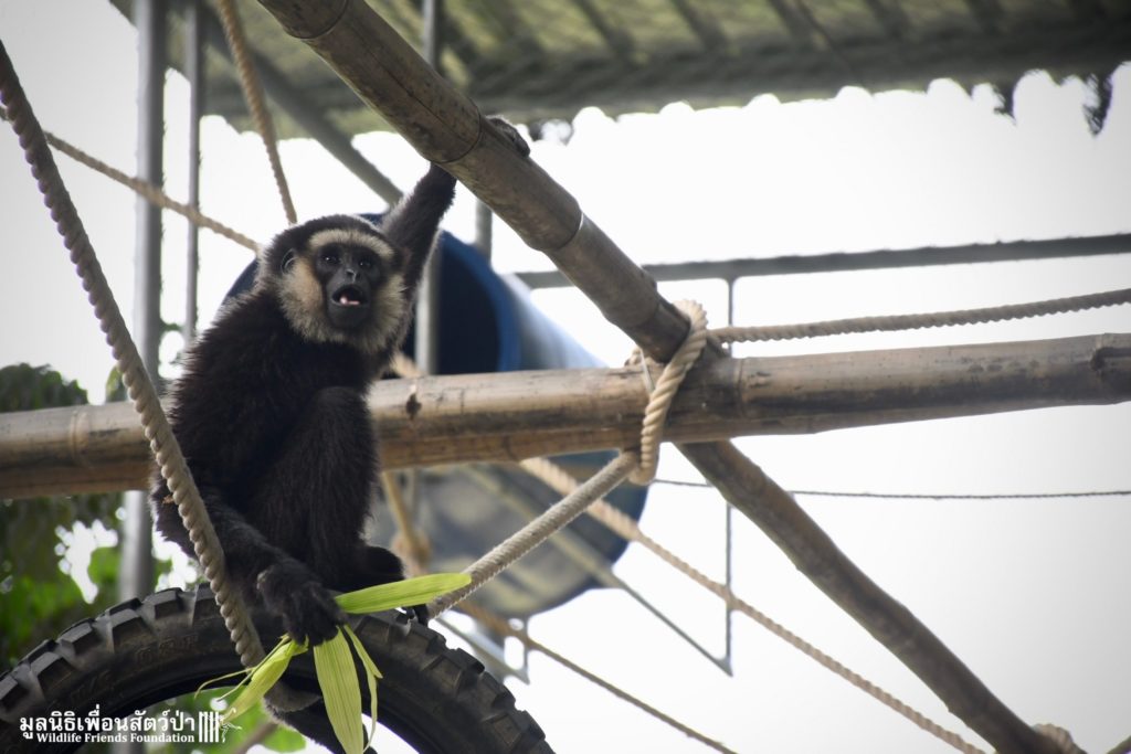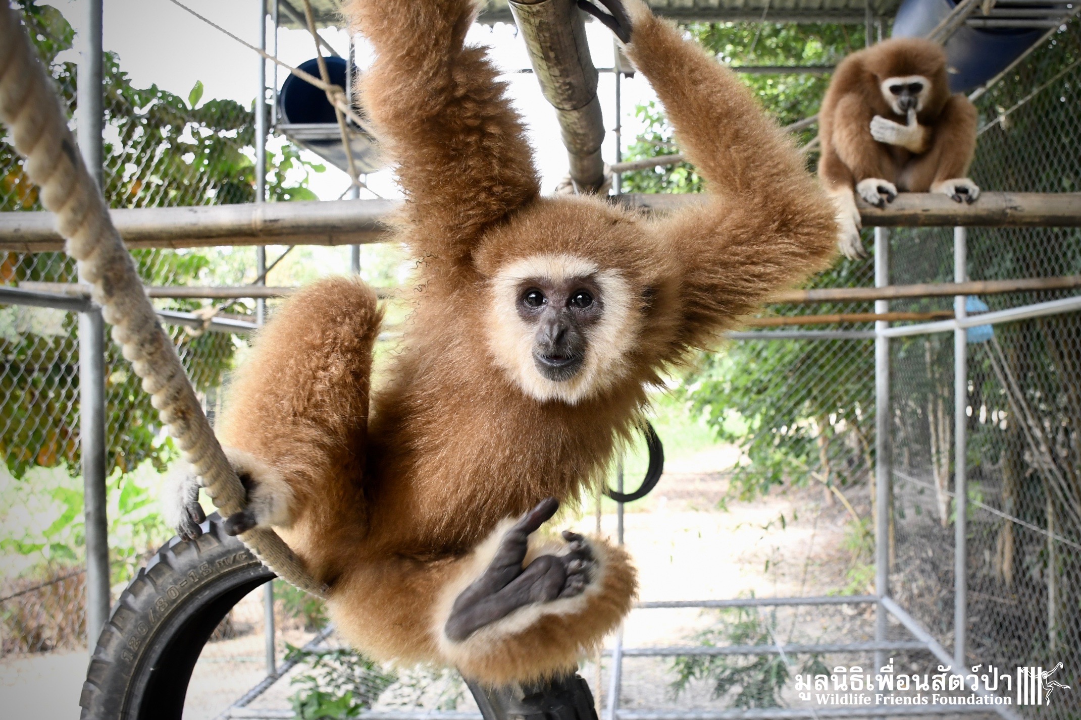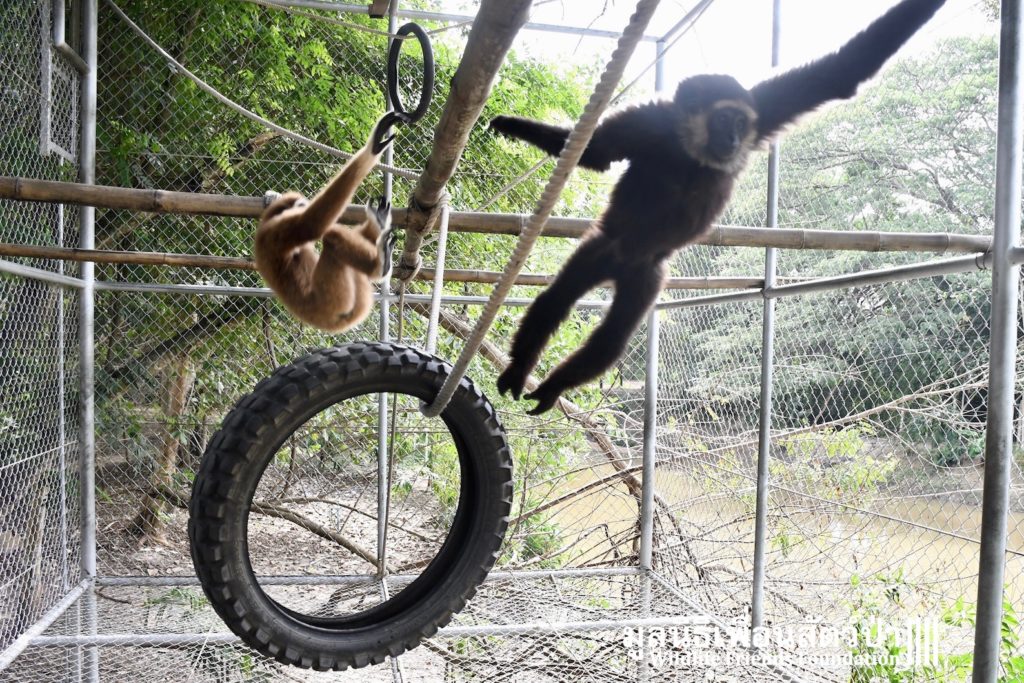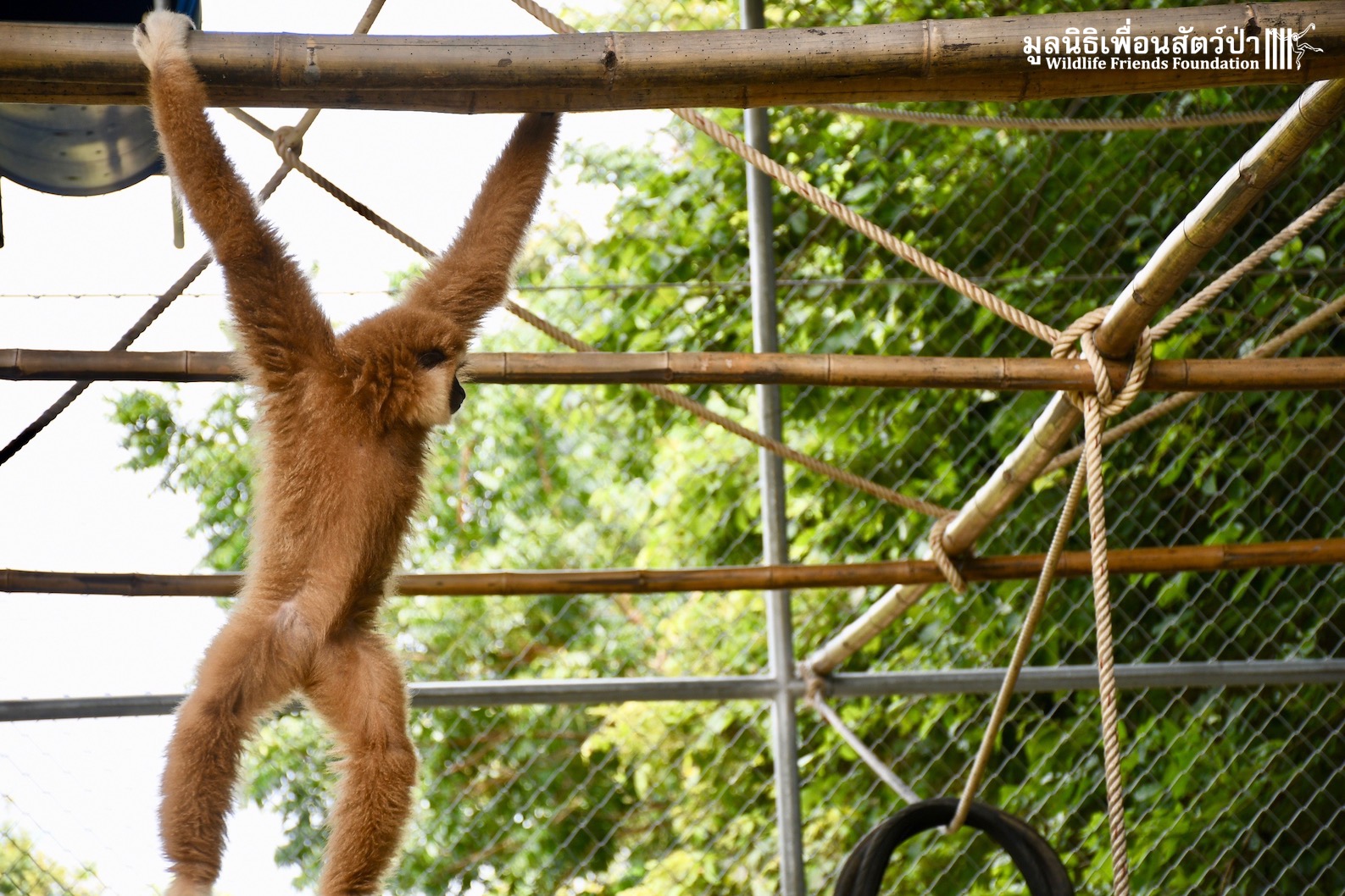 เมื่อวานนี้ ที่มูลนิธิเพื่อนสัตว์ป่า จ.เพชรบุรี ชะนีน้อยของเรา 4 ตัว ได้เข้าไปสู่อีกหนึ่งขั้นตอนของการฟื้นฟู แต่ด้วยวัยเพียง 2-4 ปี ยังเหลือเวลาอีกไม่กี่ปี ก่อนที่พวกเขาจะพร้อมให้จับคู่ต่างเพศเพื่อพัฒนาความสัมพันธ์ และสร้างครอบครัวตามธรรมชาติต่อไป หลังจากที่ใช้เวลาพอสมควรในการเฝ้าดูแลจากทีมสัตว์แพทย์ของมูลนิธิเพื่อนสัตว์ป่า ขณะนี้เราได้หาบ้านใหม่ให้เขา เพื่อให้เขาสามารถเรียนรู้การใช้ชีวิตกับเผาพันธุ์ของพวกเขาเอง โดยไม่จำเป็นต้องพึ่งพามนุษย์เหมือนเช่นเคย ห่างไกลจากมนุษย์ให้มากยิ่งขึ้น สิ่งแวดล้อมกว้างขวางใหญ่ขึ้น เป็นธรรมชาติมากยิ่งขึ้น และแน่นอนเราหวังว่า สถานที่ต่อไปของพวกเขาน่าจะเป็นเกาะฟื้นฟูชะนีของมูลนิธิเพื่อนสัตว์ป่า ที่ได้เตรียมไว้ต้อนรับพวกเขาเพื่อให้เขากลับสู่ธรรมชาติอย่างสมบูรณ์แบบ แต่ตอนนี้ทุกท่านคงเห็นได้เห็นภาพที่บรรดาชะนีหนุ่มสาวเหล่านี้กำลังสำรวจบ้านใหม่อย่างสนุกสนาน