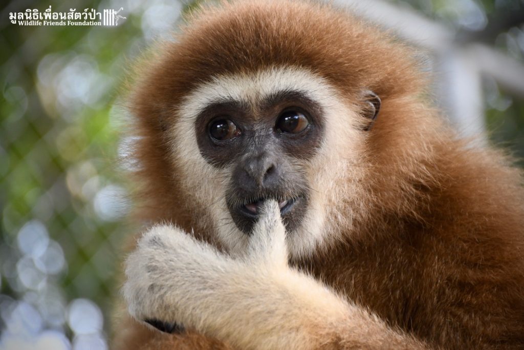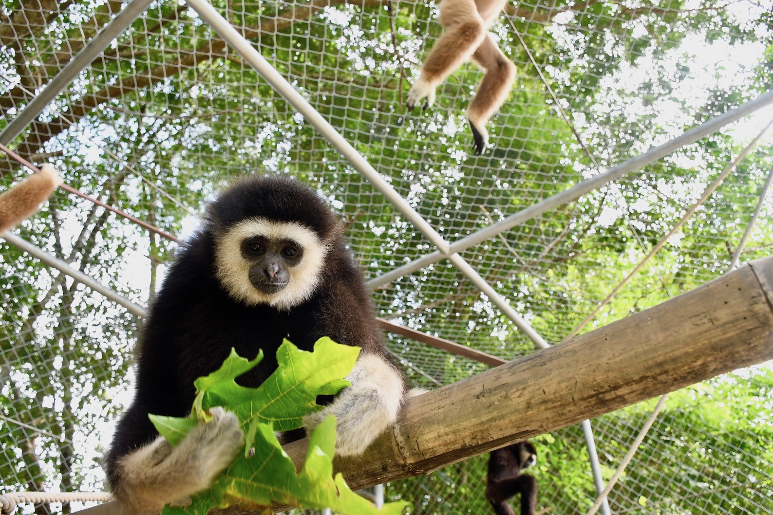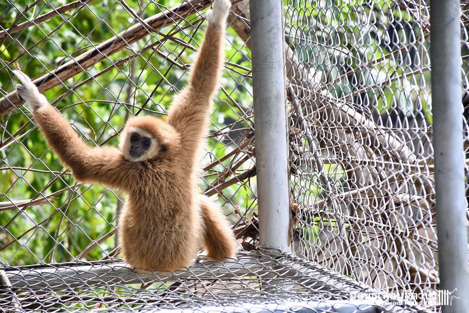 All gibbon species are in danger of extinction. This is mostly due to rampant forest loss and loss of mature individuals due to hunting. Gibbons are hunted for their meat and young gibbons are captured for the pet or photo-prop trade, particularly here in Thailand; the mother is killed so that the infant can be taken. The young gibbons you see here are all victims of this illegal trade.