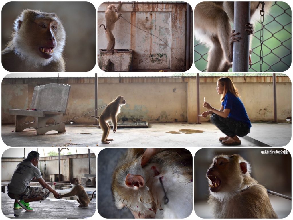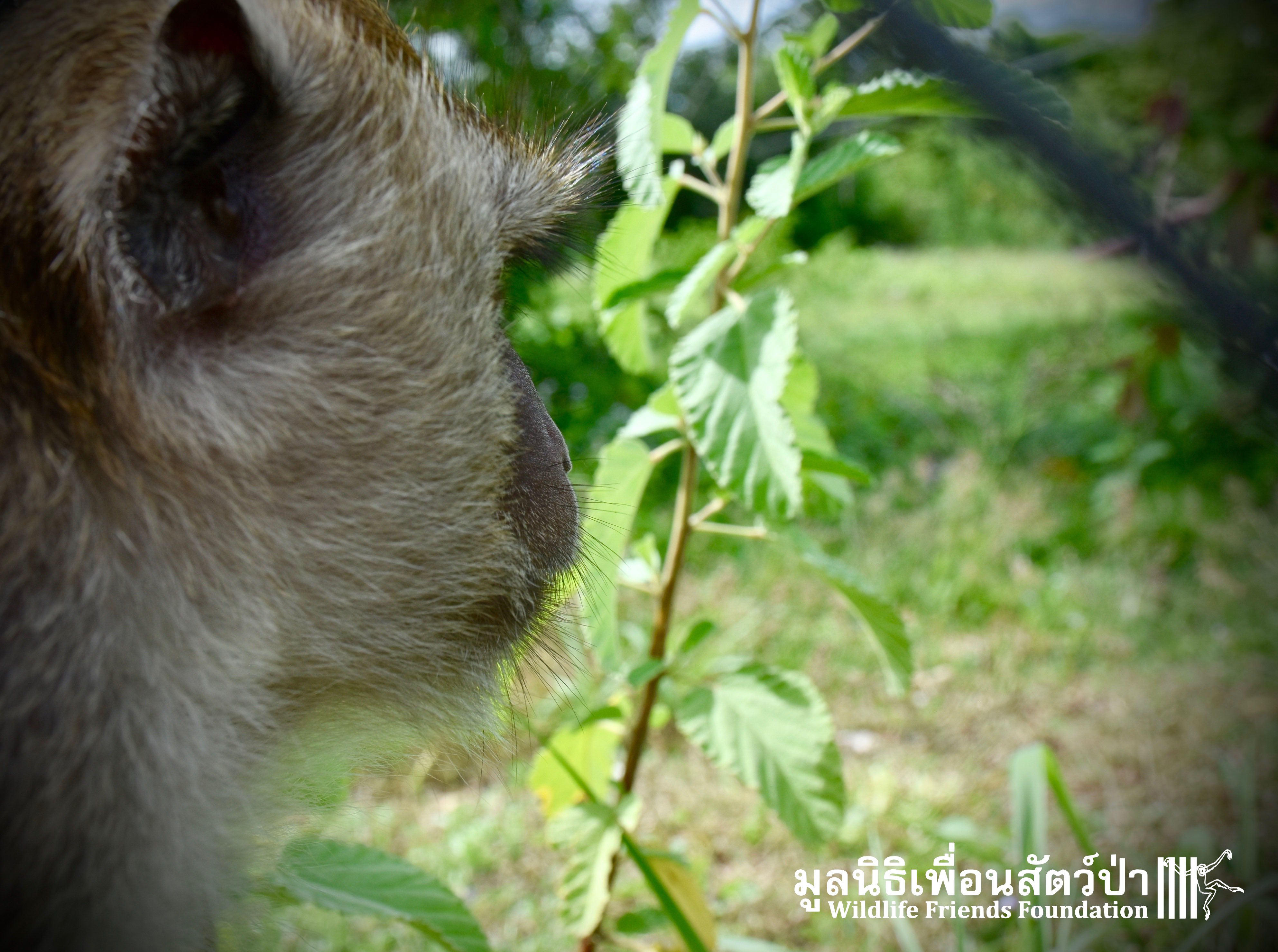 Prior to being rescued these young boys had spent the first few years of their lives with chains round their necks, on the 5th floor of a hotel in a busy city. They were used as ‘guard’ macaques, to scare away the smaller urban long-tailed macaques and prevent them from occupying the hotel. These macaques were stolen from the forest homes after witnessing the murder of their mothers, and sold into a life of abuse.
