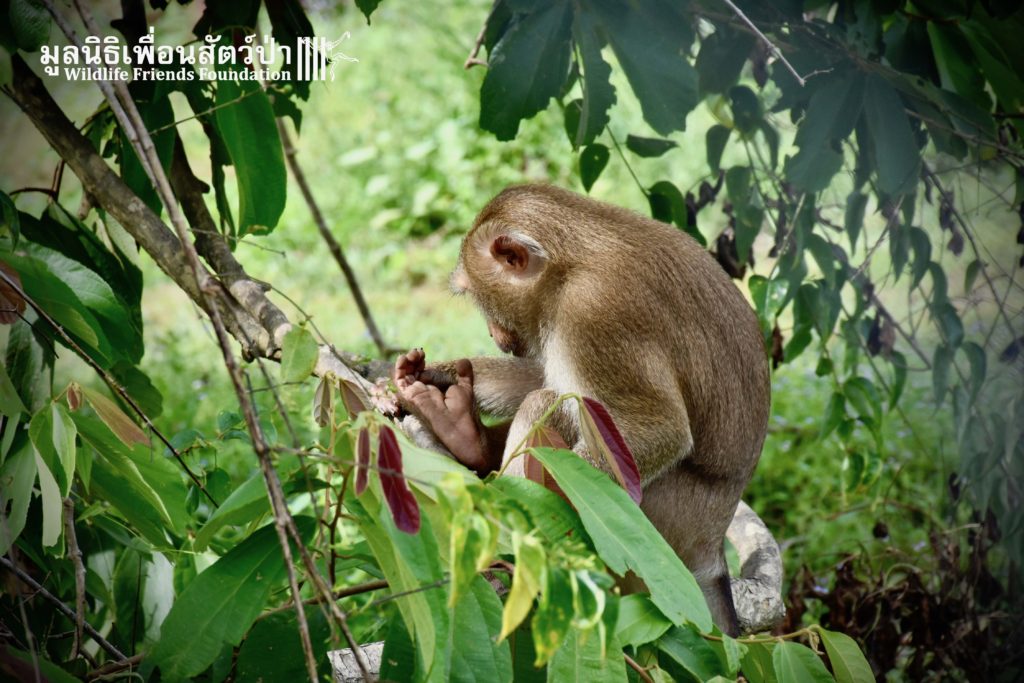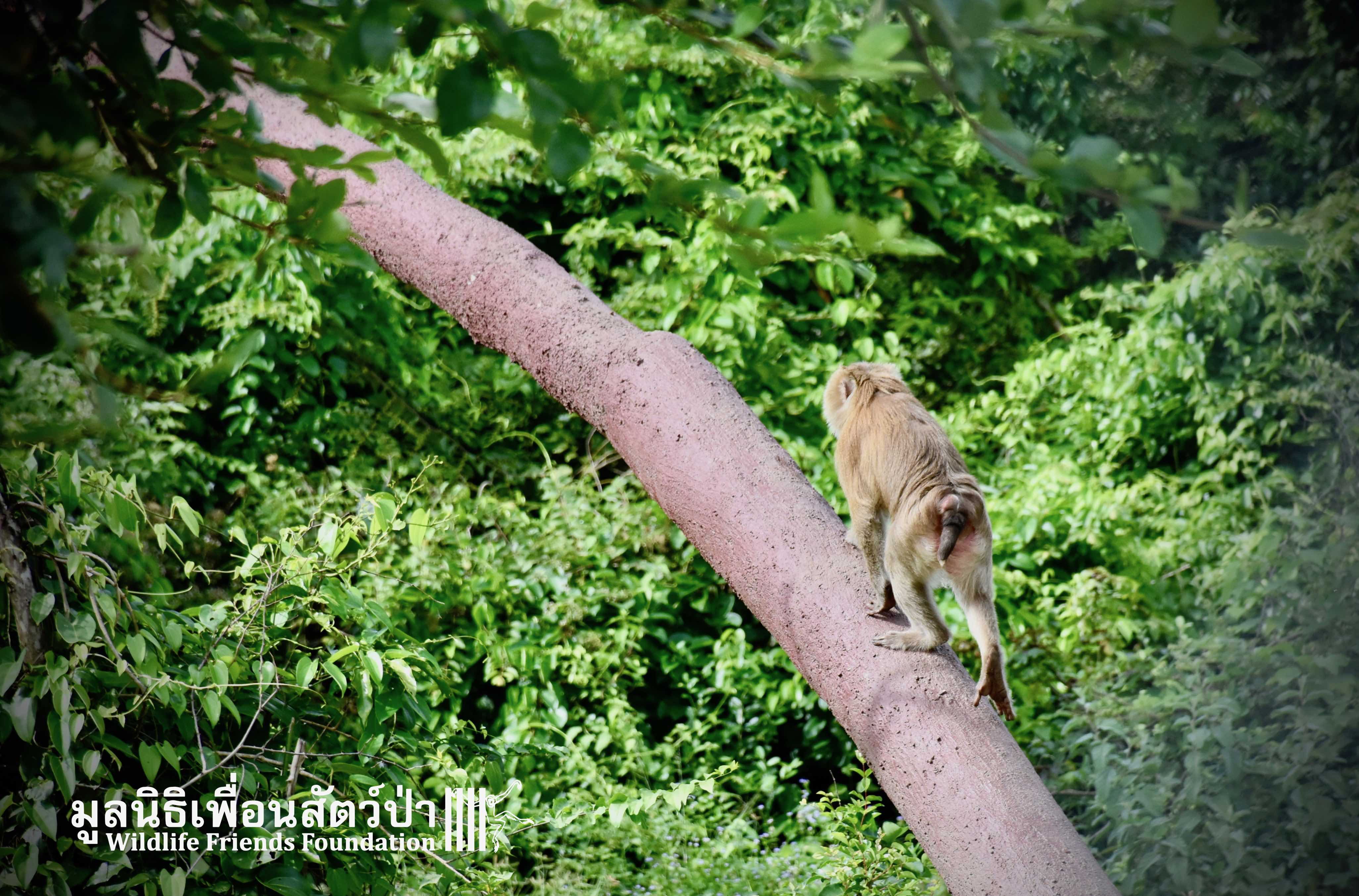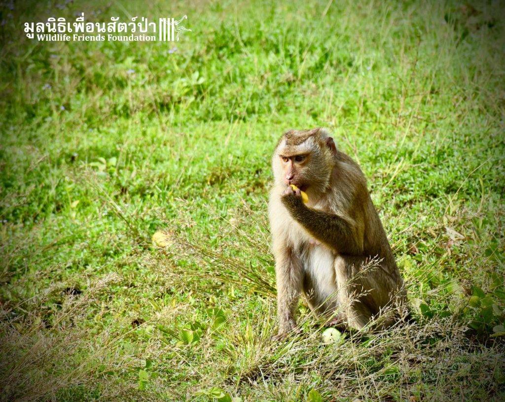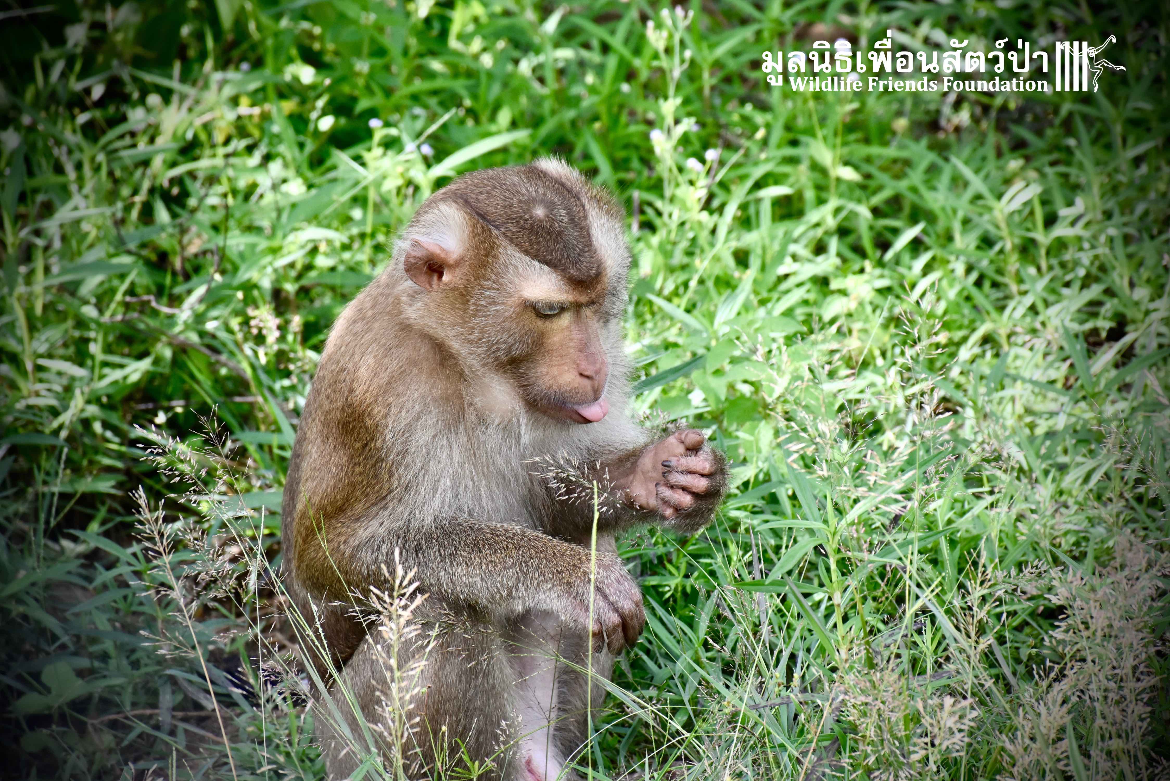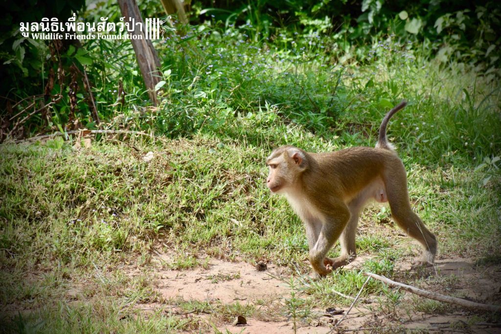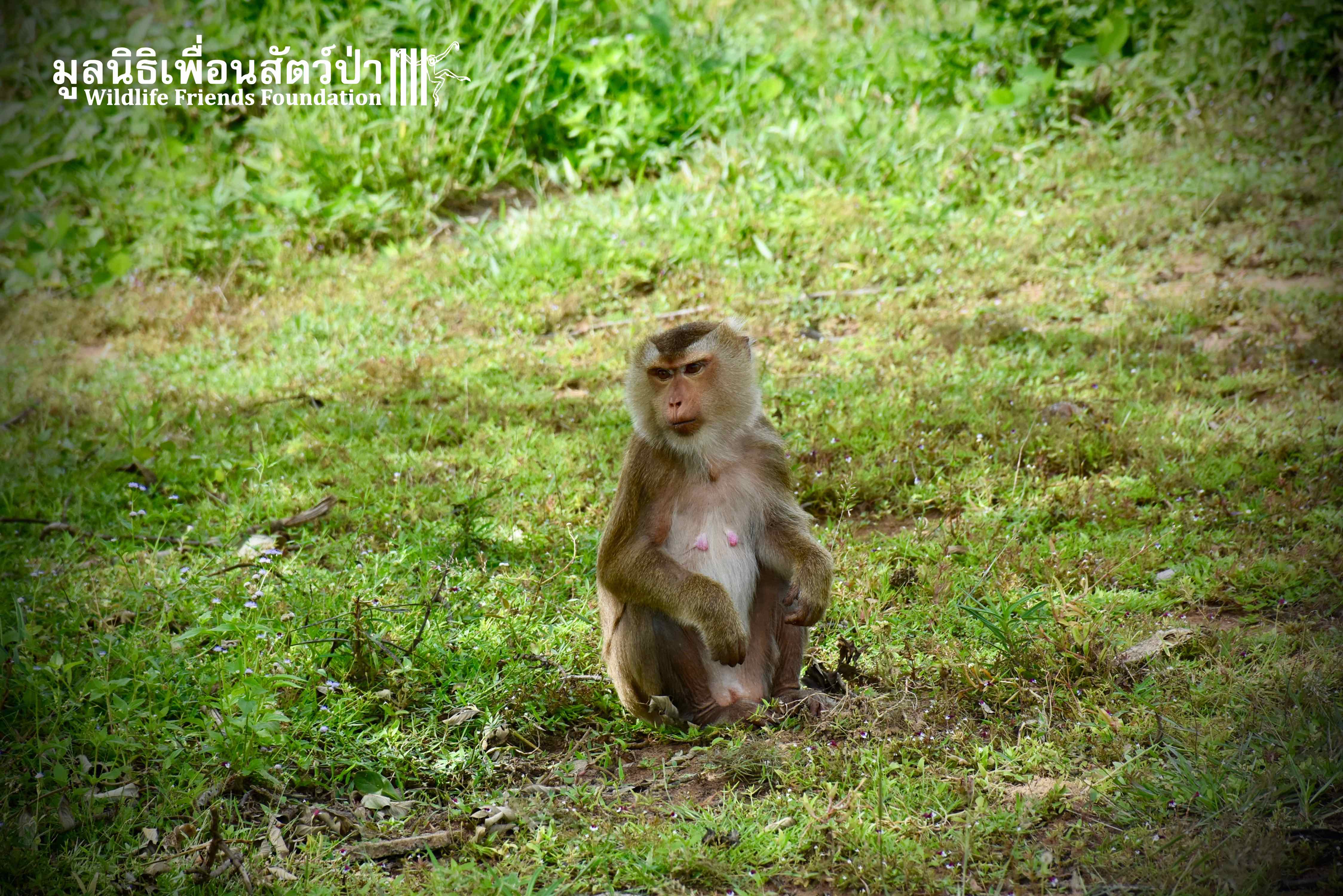 Two young male Northern pig-tailed macaques (Macaca leonina) who were rescued just over a year ago have been successfully integrated into a troop of 17 other macaques, and now call a huge open field their home.