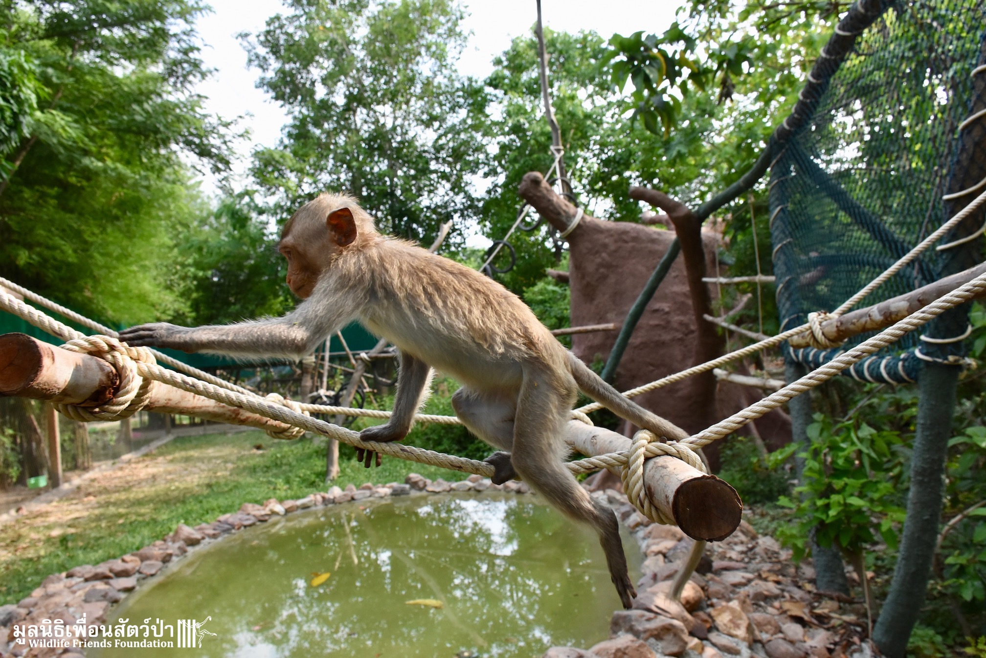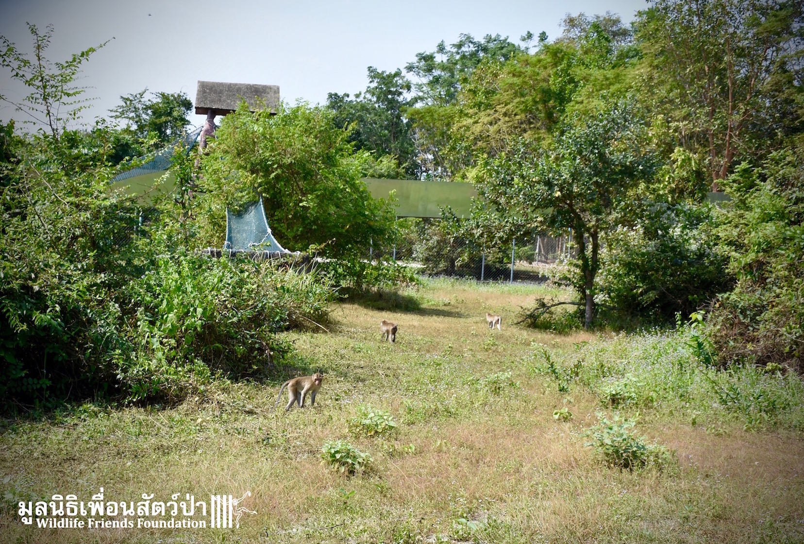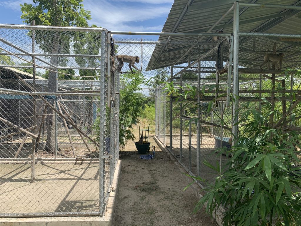 The rescue facilities, with large enclosures for re-socializing the macaques after quarantine period.