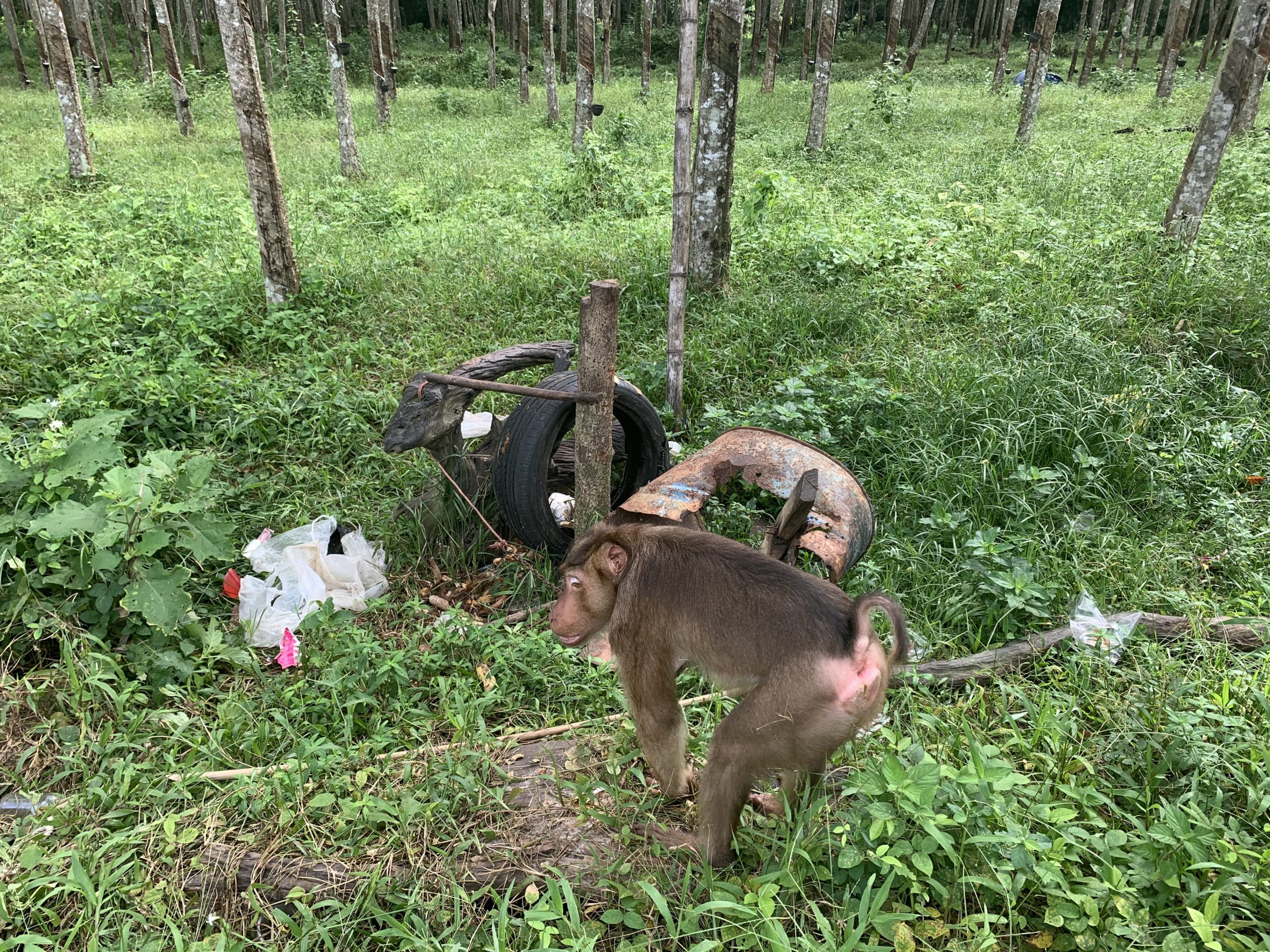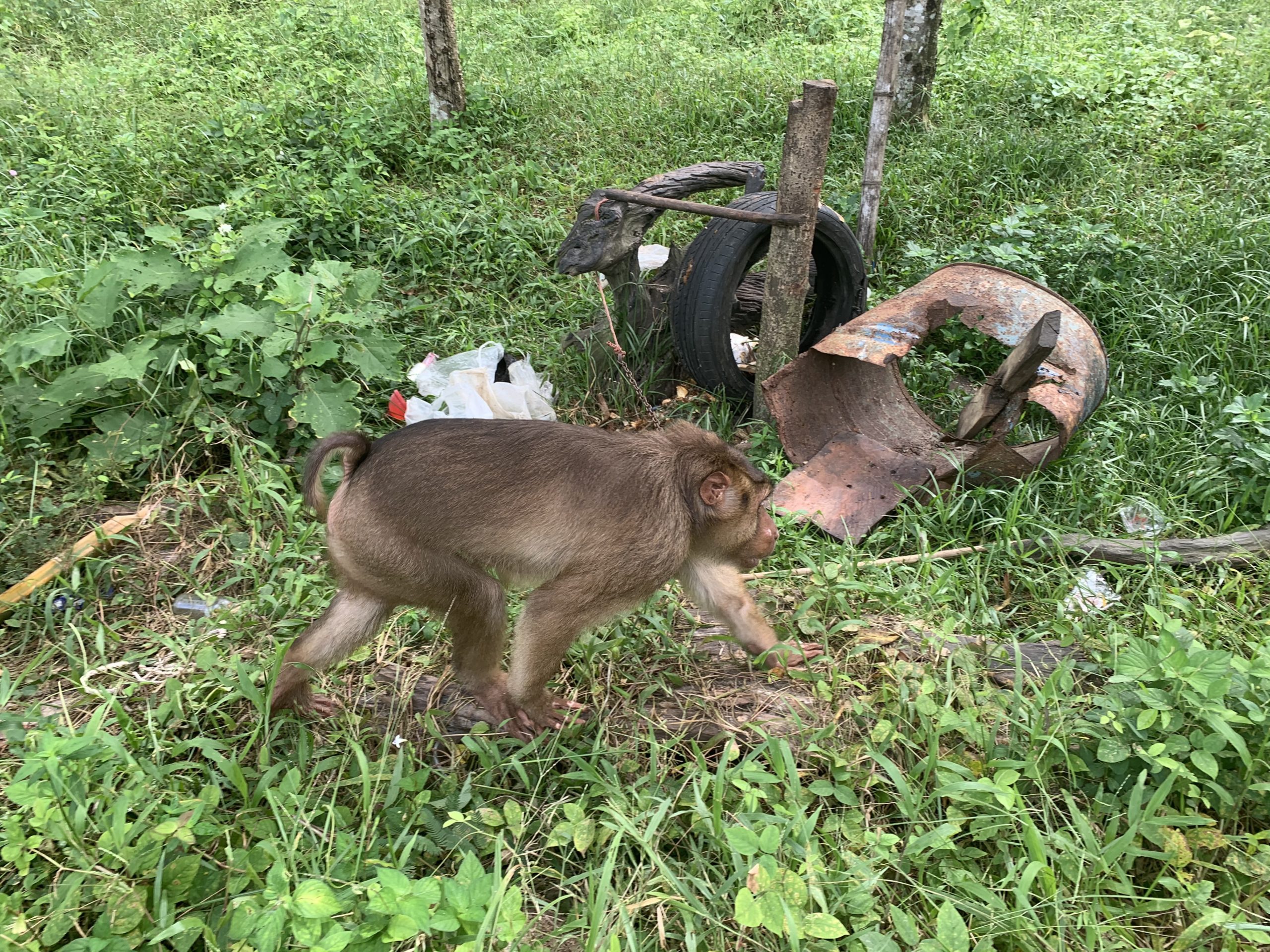 After the recent news about coconut picking monkeys (Northern and Southern Pig-tailed Macaques) in Thailand went viral we have been overwhelmed with requests by monkey owners to take in their animals, resulting in a tricky situation for our wildlife rescue centre. Our quarantine facilities are already overrun with rescued primates mostly large male Pig-tailed macaques. Our funds are very limited due to the covid-19 crisis and the full closure of our country, Thailand, making it impossible for visitors or volunteers to arrive and provide us with the much needed work and financial contributions.