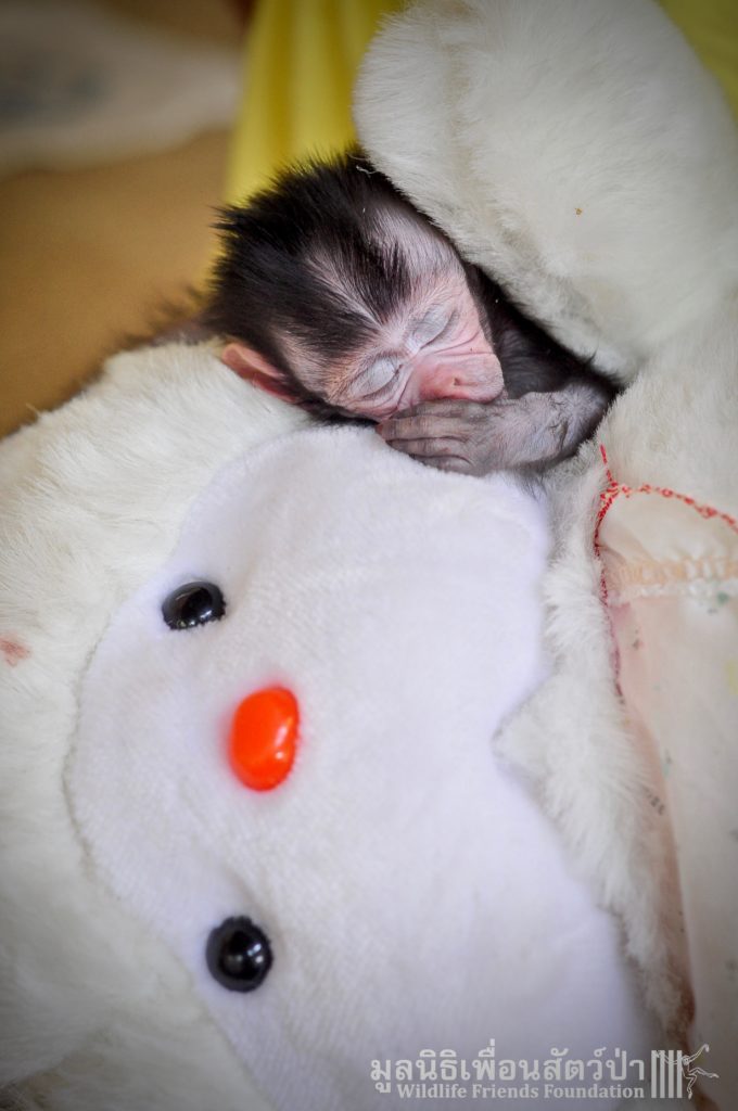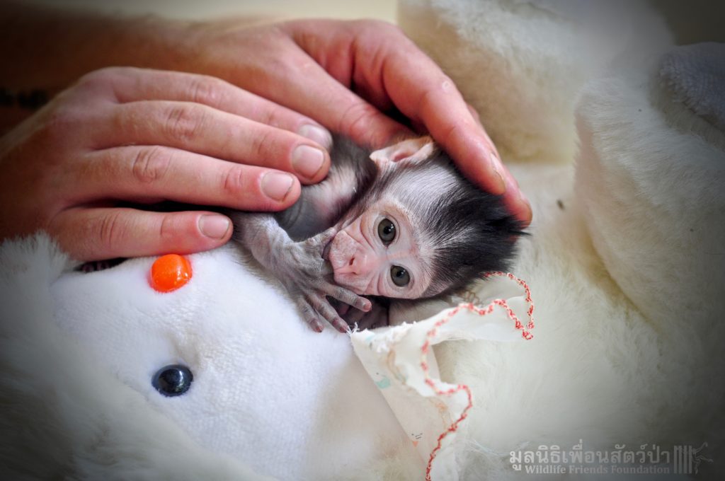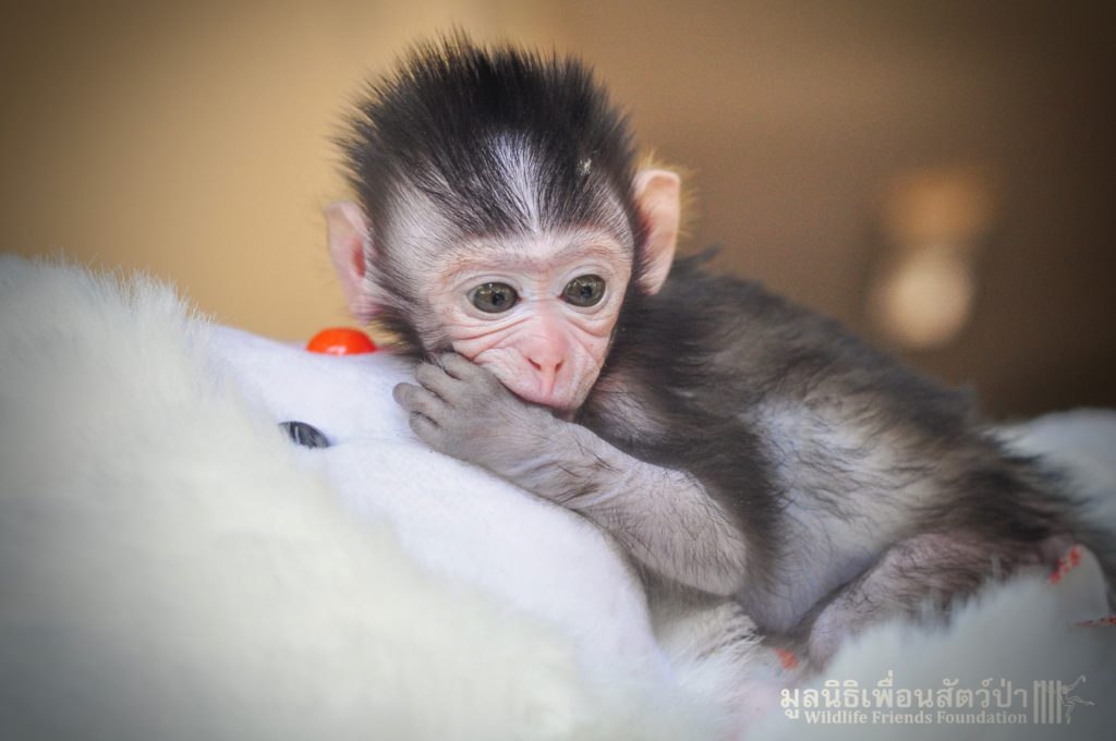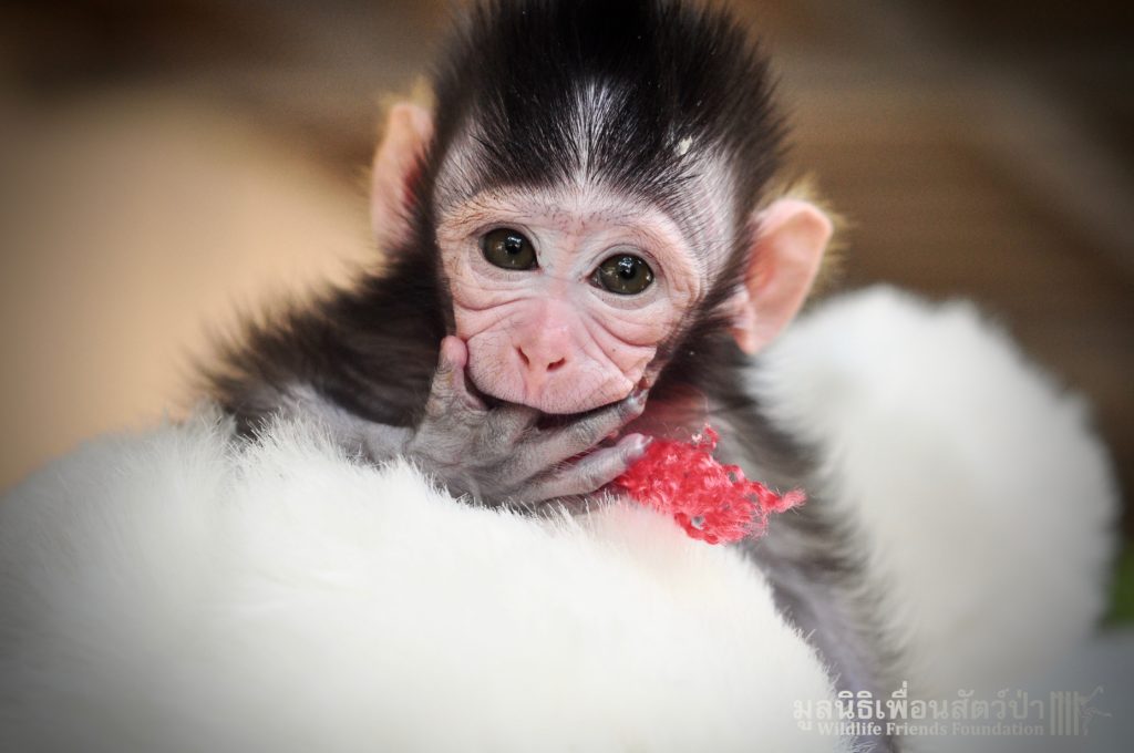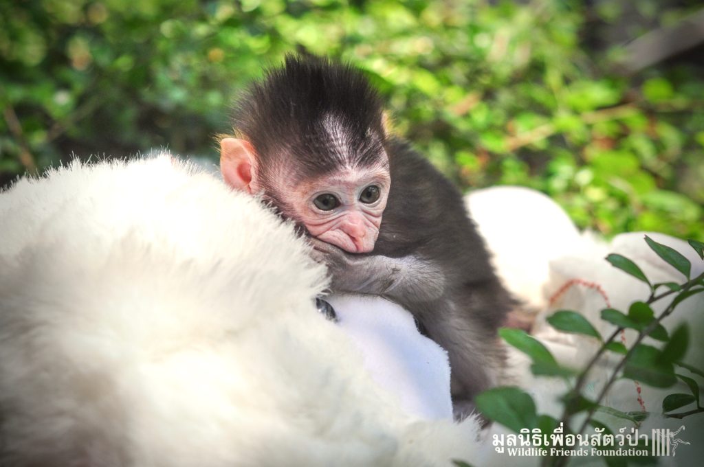 Ma Kood is still yearning for her mother’s care, she is so young and will require round the clock care for some time, When she is a little older she will introduced to some other young macaques in a large open field here at the WFFT Wildlife Rescue Centre.