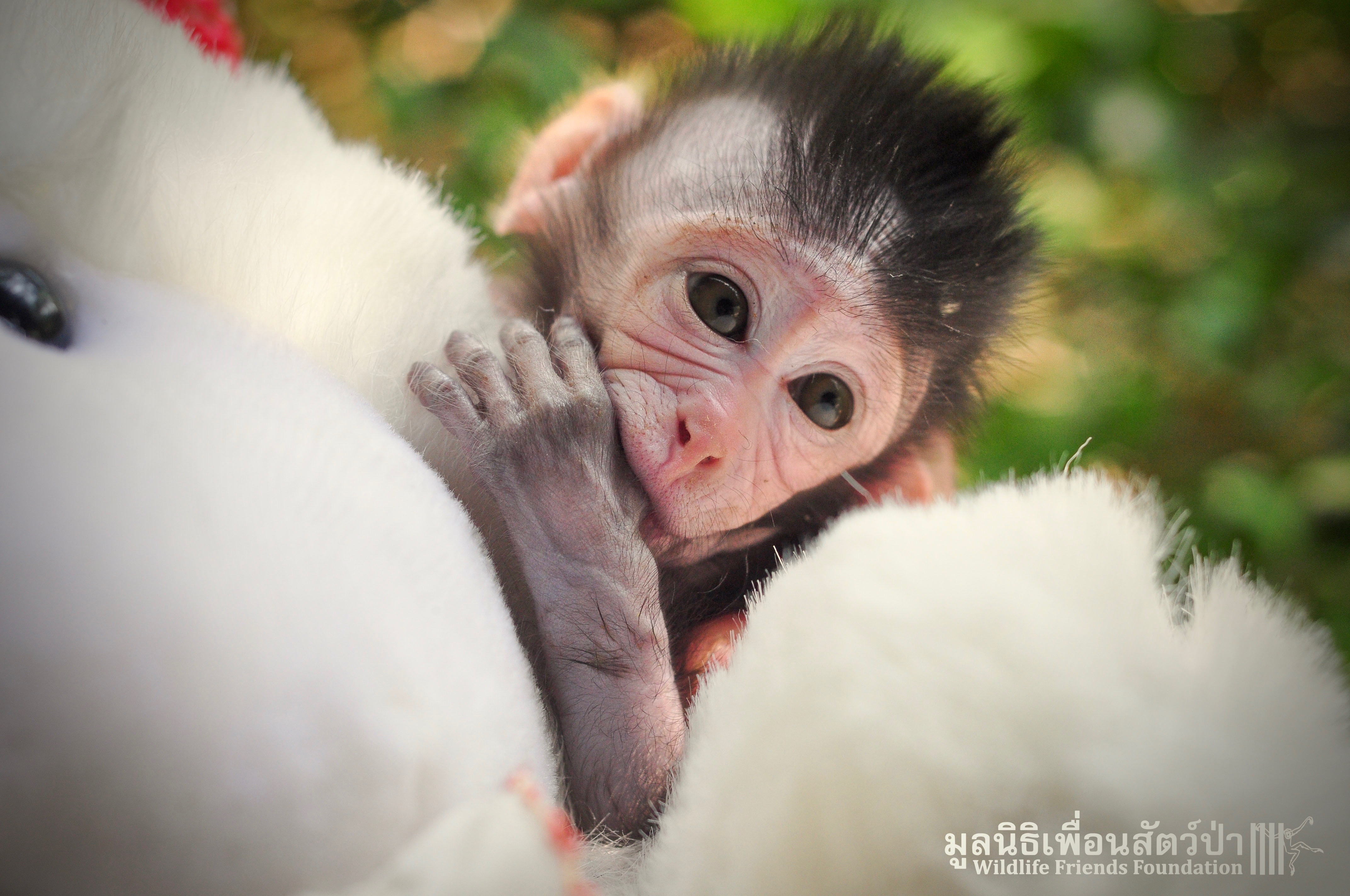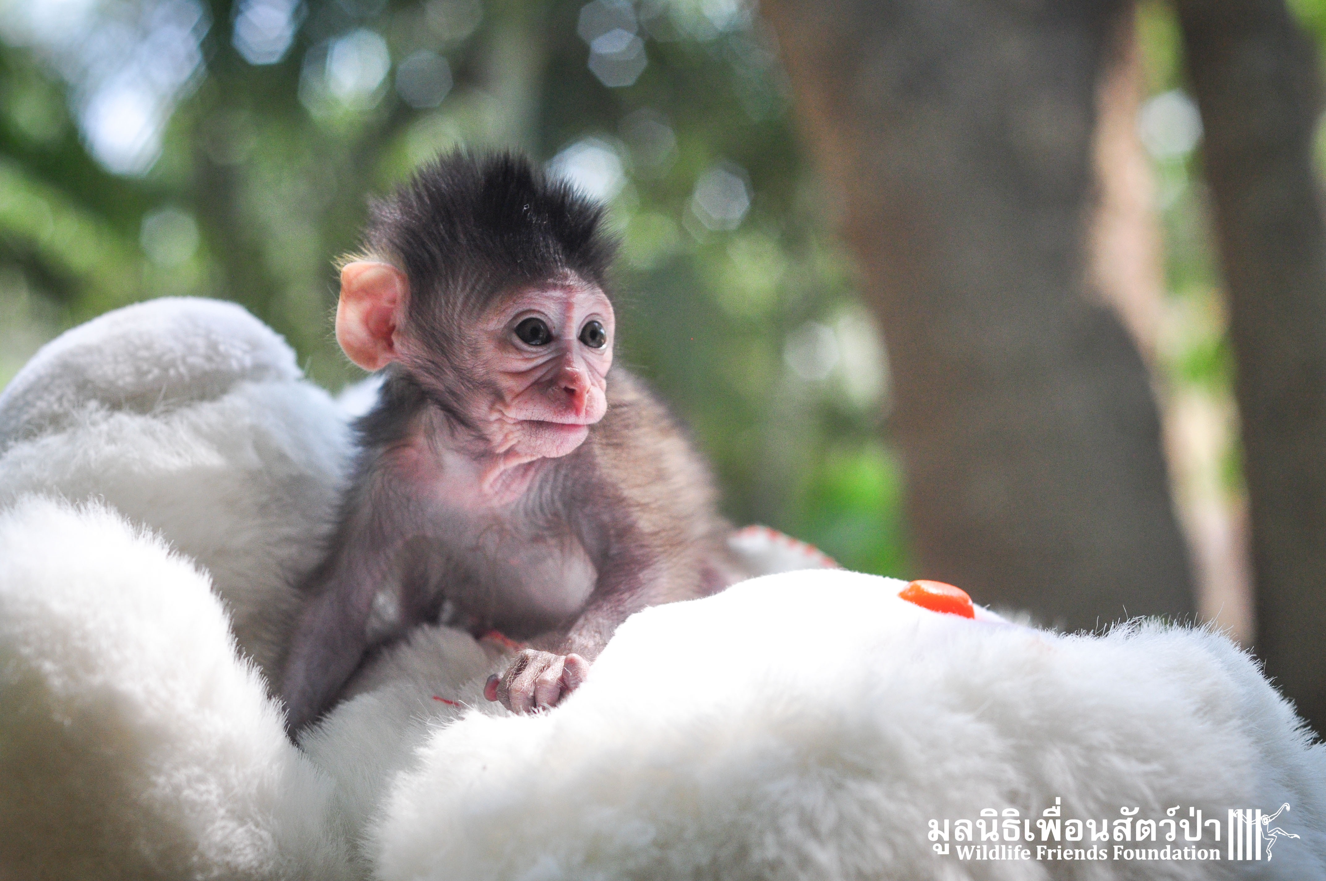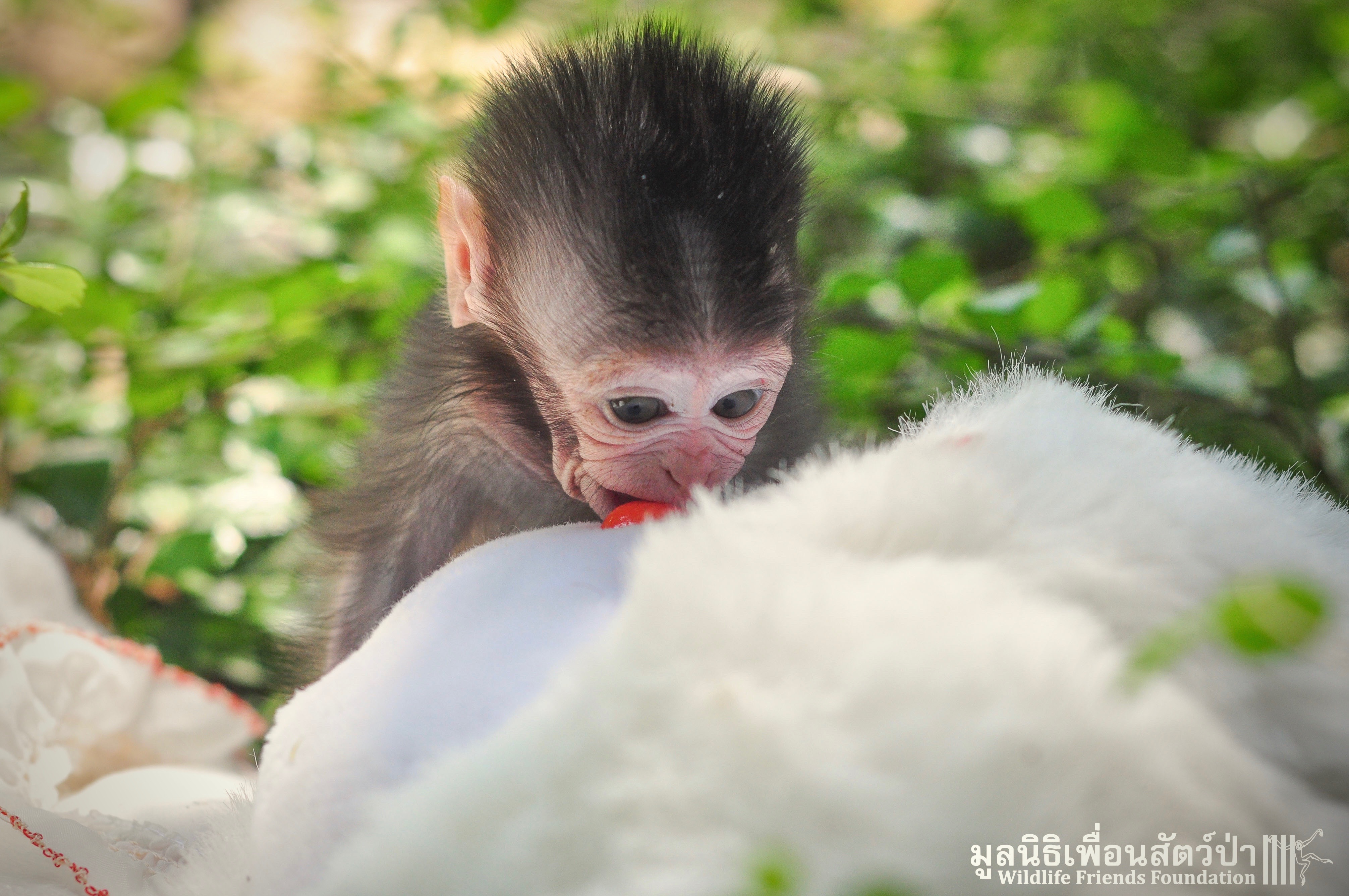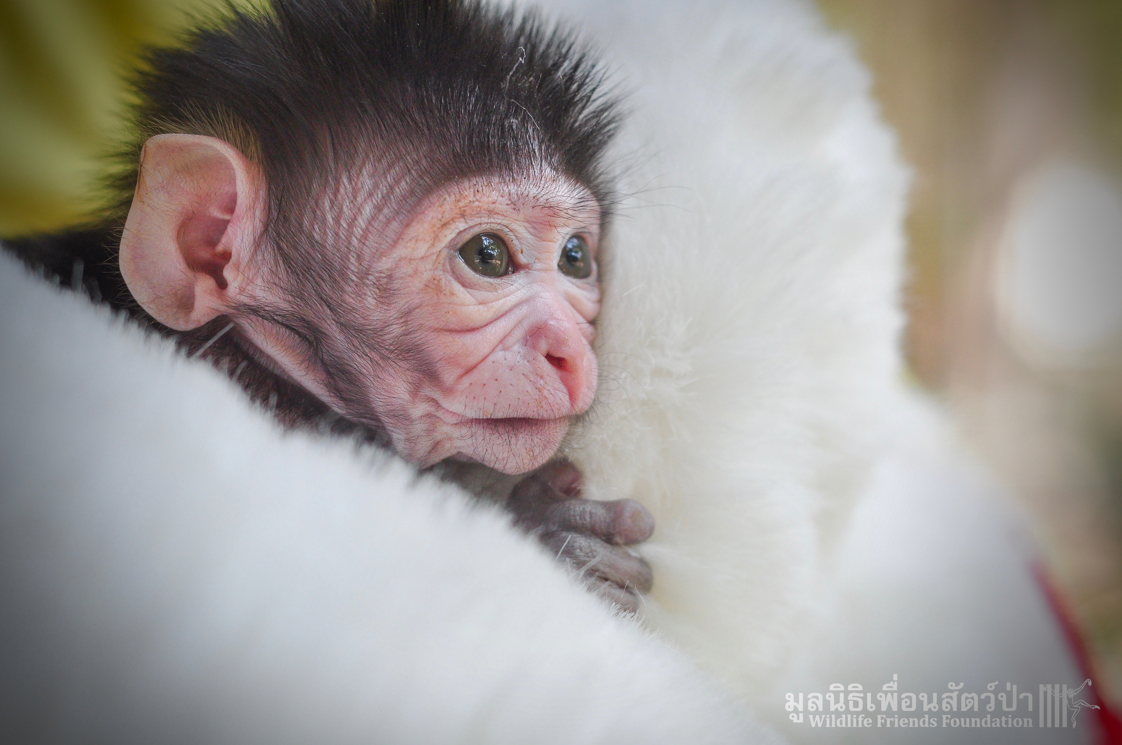 Ma Kood is still yearning for her mother’s care, she is so young and will require round the clock care for some time, When she is a little older she will introduced to some other young macaques in a large open field here at the WFFT Wildlife Rescue Centre.