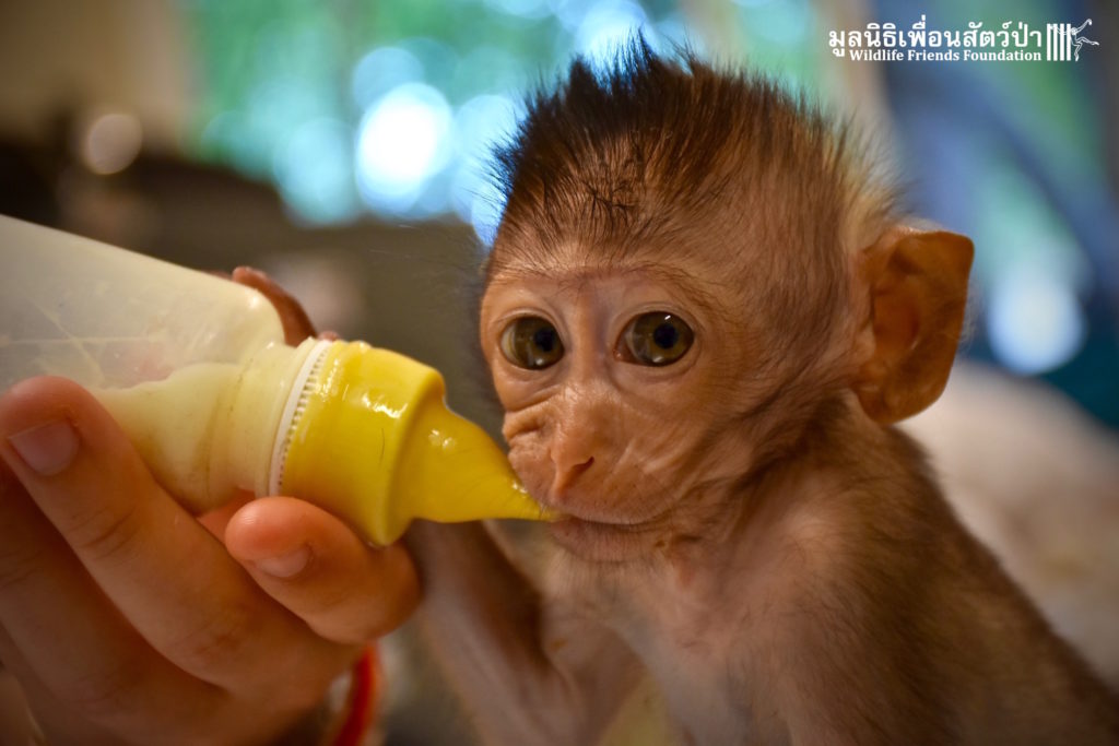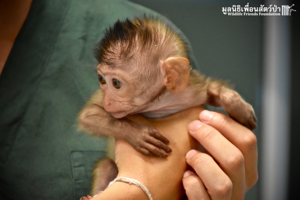 As little Phubai is only around 8 weeks old he will require round the clock care from the WFFT Team. Luckily we have another infant long-tailed macaque, Makood, who can keep this little guy company. We will keep you updated on his progress.