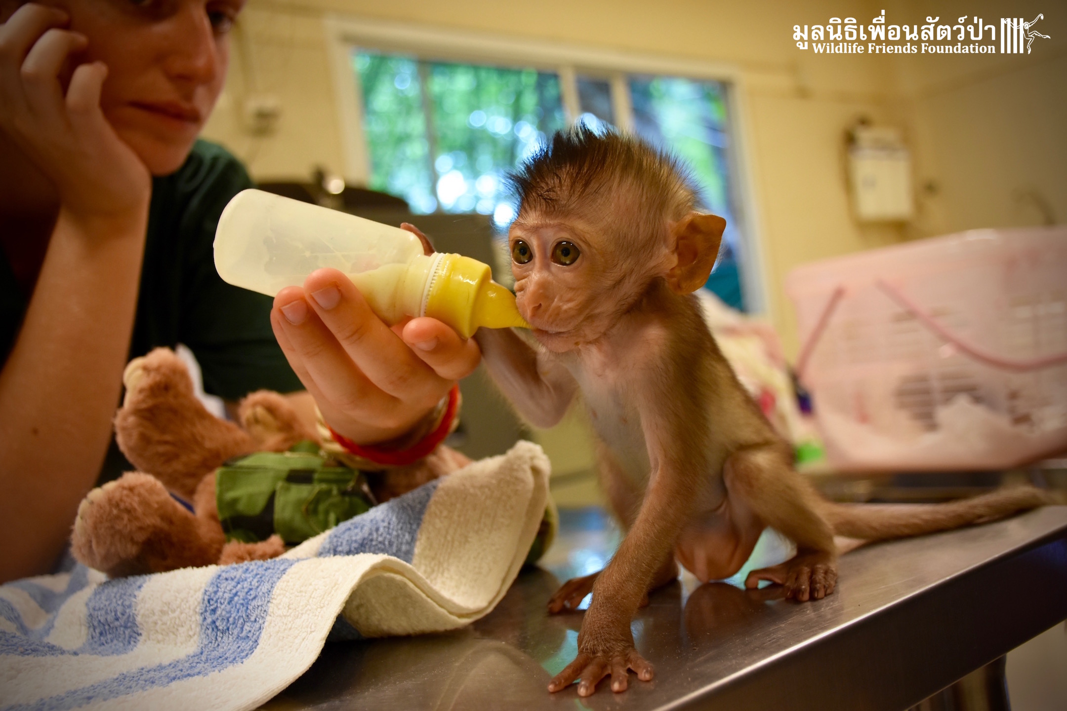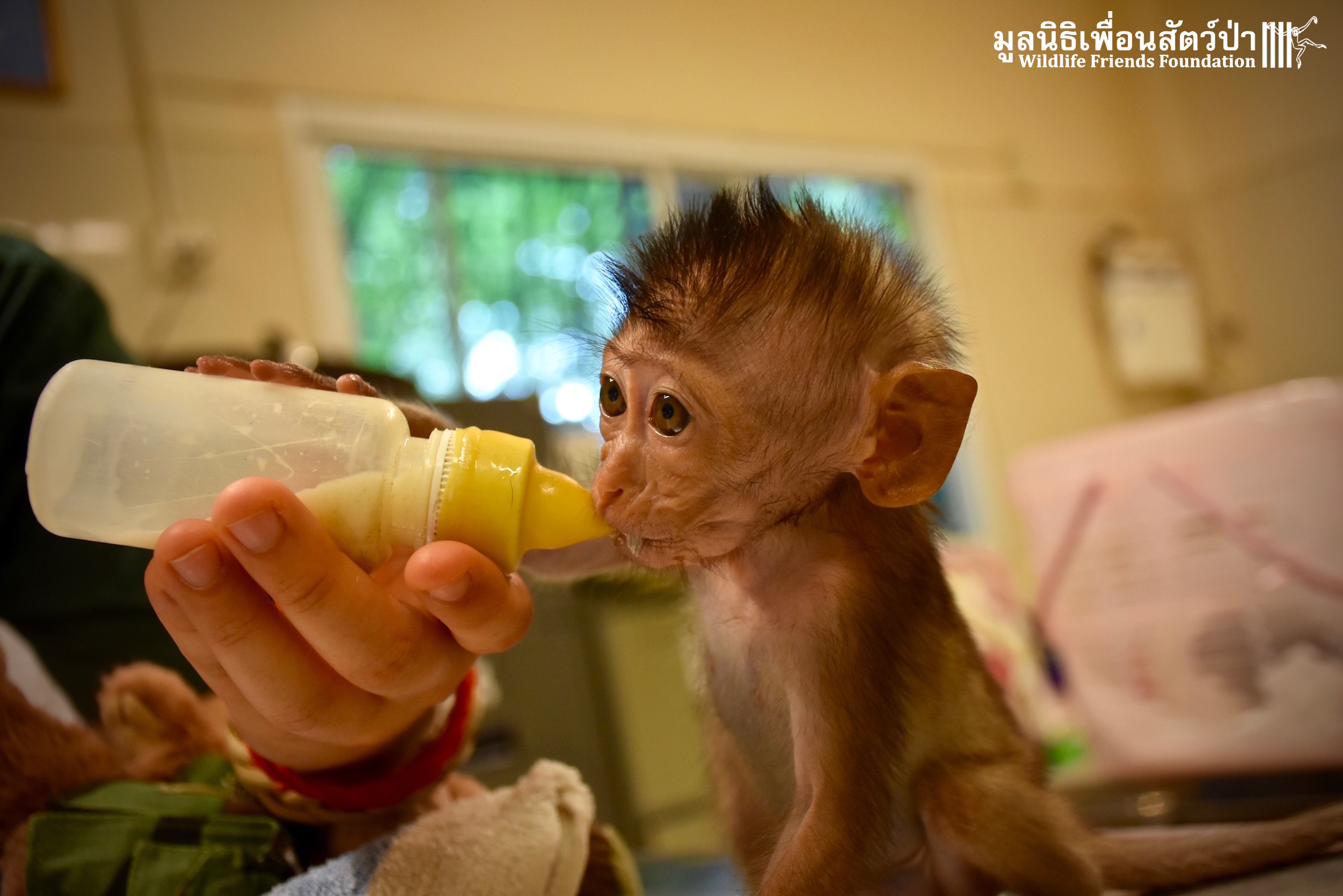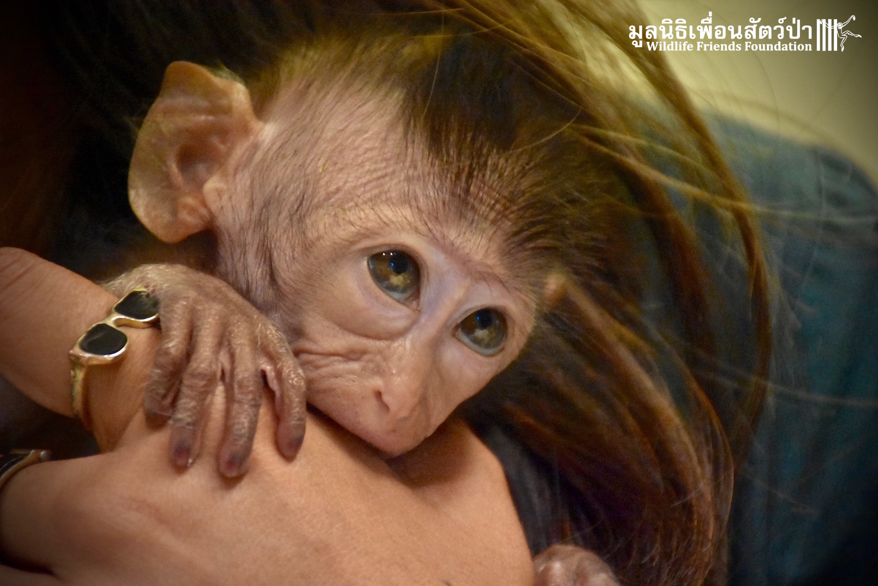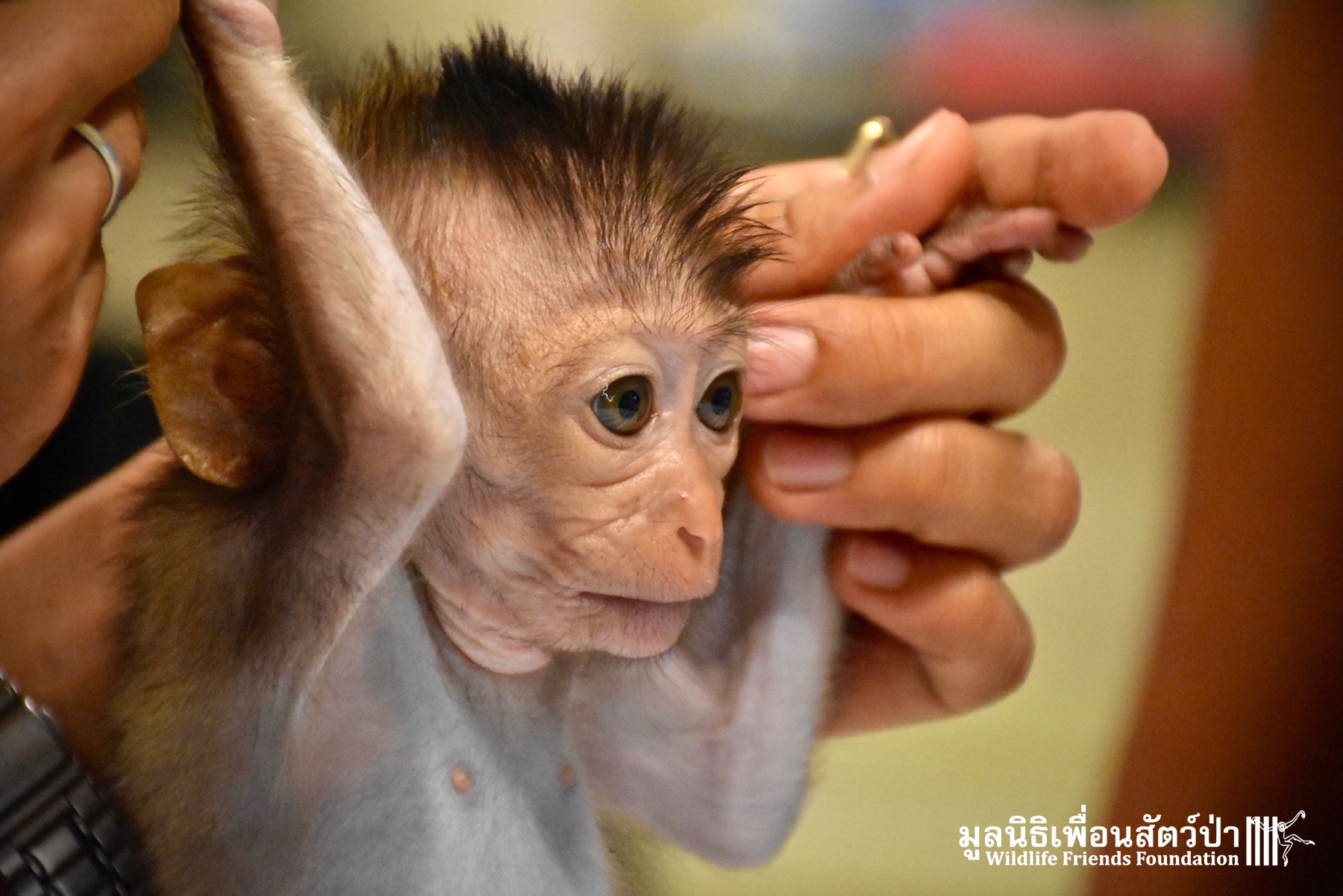 As little Phubai is only around 8 weeks old he will require round the clock care from the WFFT Team. Luckily we have another infant long-tailed macaque, Makood, who can keep this little guy company. We will keep you updated on his progress.