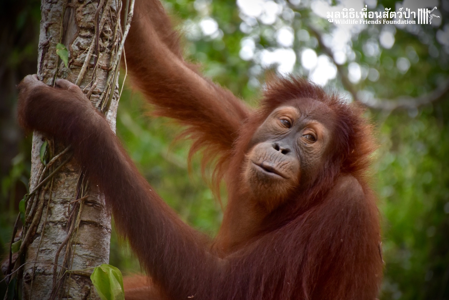 In preparation for this day which is on Friday, here are some images of rescued orangutans, Maggie and Chico here at the WFFT Wildlife Rescue Centre, and their increasingly endangered wild cousins. Each day during their daily forest school sessions they are taken into the natural forests surrounding WFFT, climbing high up in the tree canopy, foraging for natural foods and even nest building are natural behaviors that are observed regularly.