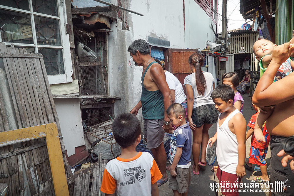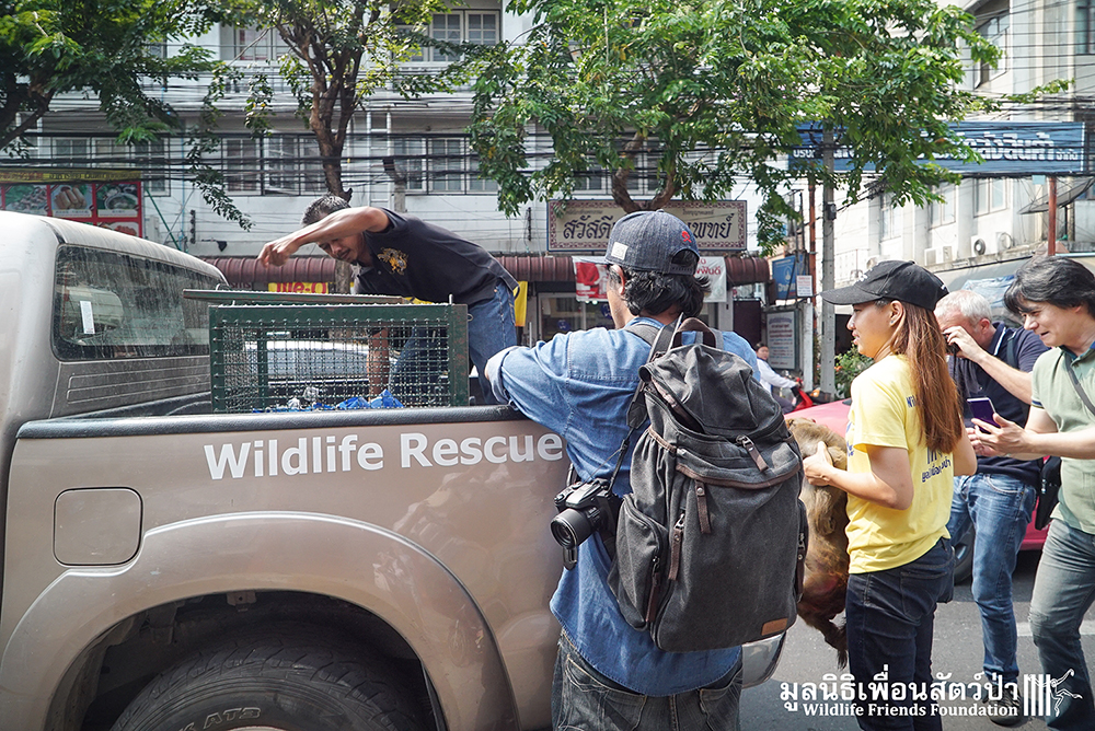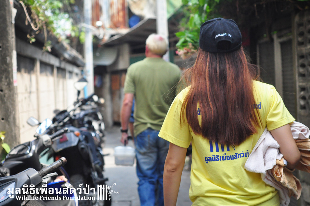 Our team quickly went down to work and sedated “Joe” after which we started to tear down his “home”, finding rats and dirt all over. Joe was dirty and very weak, as his cage was so small he could not walk or climb at all and his muscle tissue was almost gone. His teeth were very bad and he was dehydrated. The slum was inaccessible for cars, so we had to carry him out of the slum and visit the local police station to get his rescue registered. Immediately after this we moved Joe to our quarantine unit in Petchburi at WFFT.