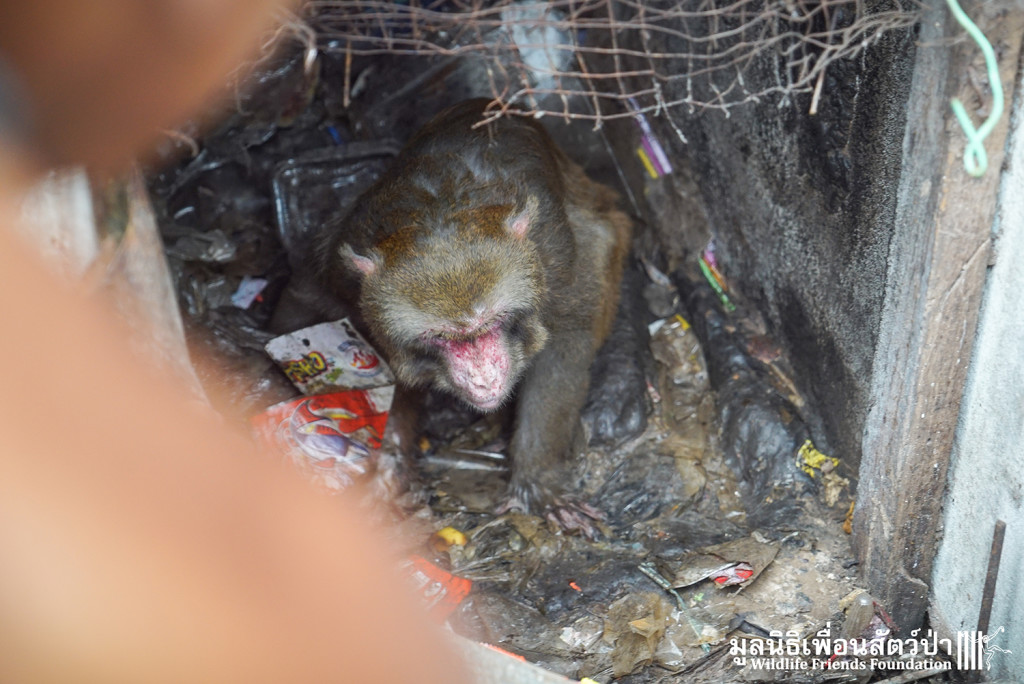 เราได้รับแจ้งจากเพจ Bangkok Exposure ให้ลงพื้นที่เพื่อช่วยเจ้า “จ๋อ” ลิงวอกภูเขาเพศผู้ อายุ 29 ปี อาศัยอยู่ในช่องแคบๆ ไม่ถึง 1 ตารางเมตร ทั้งมืด ทั้งเหม็น ทั้งสกปรก กว่า 25 ปีที่ต้องกินอยู่กับขยะและปัสสาวะอุจจาระของตัวเอง ไม่เห็นแม้แต่เดือนและตะวัน มีเพียงแสงลอดส่องเพียงน้อยนิด ยิ่งกว่าอยู่ในคุกทั้งๆที่จ๋อไม่ได้ทำผิดอะไร ความมืดทำให้ดวงตาของจ๋อเริ่มฝ้าฟาง อดีตของจ๋อก็ยังคงเหมือนหนังม้วนที่ผ่านๆมา นักล่าสัตว์ป่าฆ่าแม่ลิงเพื่อจะได้ตัวลูกลิง จากนั้นส่งลิงน้อยขายในตลาดมืด จนมีคนเห็นความน่ารักในตัวจ๋อจึงซื้อมาเป็นสัตว์เลี้ยง ช่วงแรกใครใครก็ชอบความน่ารักน่าเอ็นดูของจ๋อ แต่เมื่อเวลาผ่านไป จ๋อเริ่มโตขึ้น สัญชาตญาณสัตว์ป่าเริ่มแสดง จ๋อก้าวร้าวขึ้น จนเจ้าของต้องจับจ๋อยัดใส่ช่องแคบๆเหมือนนรก หากไม่มีใครสังเกตก็จะไม่รู้เลยว่ามีลิงอาศัยอยู่ในนั้น ทีมกูภัยสัตว์ป่าเข้าเจรจาขอช่วยลิงจ๋อ จากนั้นก็พาจ๋อออกมาจากที่แห่งนั้นไปเริ่มชีวิตใหม่ที่มูลนิธิเพื่อนสัตว์ป่า ต่อไปนี้จ๋อไม่ต้องอยู่ในกรงที่เหมือนคุกแบบนั้นอีกแล้ว จ๋อจะได้วิ่งเล่นกับเพื่อนๆลิงอย่างที่อยากเล่น จะได้กินอย่างที่อยากกิน จะได้นอนอย่างที่อยากนอน ได้มองเดือนและตะวันอย่างที่ไม่เคยได้เห็น ได้กลับไปเป็น “สัตว์ป่า” อีกครั้ง