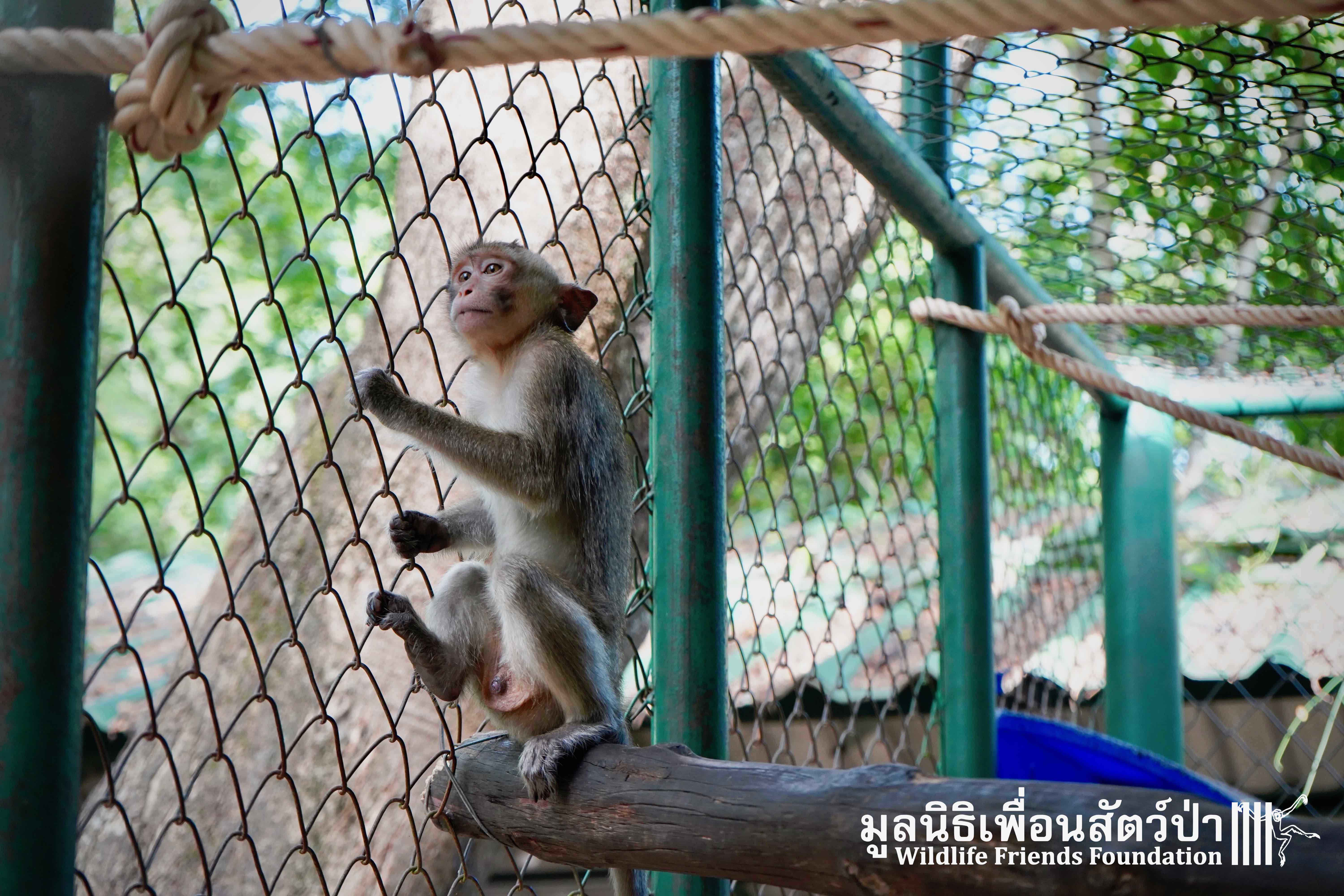 The Russian owner then posted on a web site for Russians living in Thailand hoping that someone could take him. They may have realised that keeping a macaque as a pet is actually illegal and could have landed them in trouble with the authorities. Fortunately the lady who contacted Edwin acted as a mediator and managed to coordinate his rescue. Having only picked him up from the Russian on the morning of the rescue she knew little of his past. Likely taken as a baby from the wild, his mother would have been killed to allow his poachers to catch him. He would then have been sold as a pet in the lucrative wildlife pet trade. Though highly illegal it is somewhat common in Thailand. Baby macaques seem super cute and are seen as something of a status symbol. Unfortunately they are very high maintenance as pets and quickly grow into adults that can be destructive and dangerous. With long lifespans macaques are a huge commitment that most people cannot handle past the baby phase. They are then often banished to inadequate cages and unable to exhibit normal behaviour in solitary confinement.