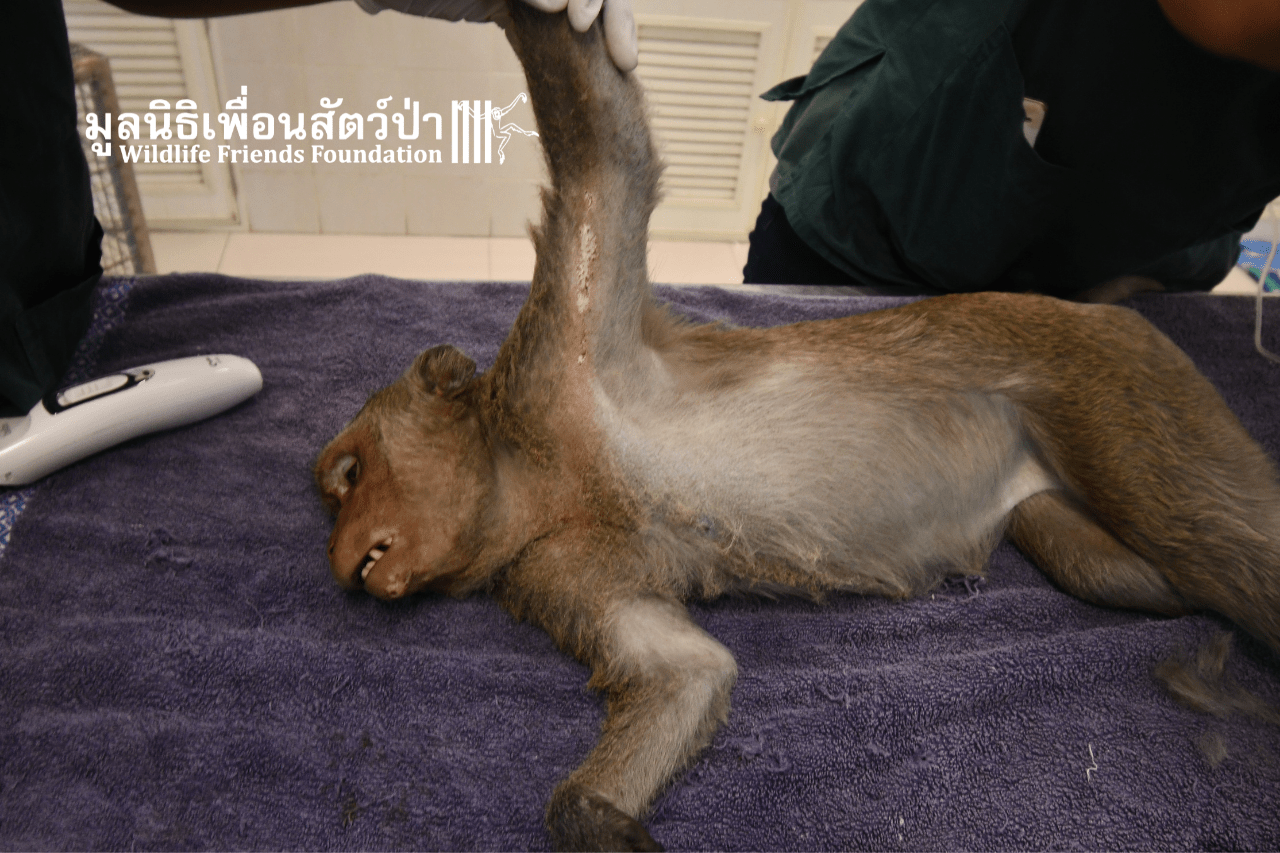 อีกไม่กี่วันนี้จะเป็นช่วงเวลาสำคัญที่เราจะต้องทำการรักษาชีวิตลิงหนุ่มตัวนี้ ไฟฟ้าช็อตนั้นส่งผลทำลายและสร้างความเสียหายต่อกล้ามเนื้อและเนื้อเยื่อในร่างกายเป็นอย่างมาก บางครั้งเนื้อตายจนเราต้องตัดอวัยวะบางส่วนทิ้ง ยิ่งไปกว่านั้นเรายังพบกว่าลิงหนุ่มมีมือที่ผิดรูป มูลนิธิฯ ตั้งชื่อลิงหนุ่มตัวนี้ว่า “ซุส” และเราจะพยายามทำทุกอย่างที่เราทำได้เพื่อรักษาซุส สำหรับท่านผู้มีจิตเมตตาต่อสัตว์ และอยากร่วมสนับสนุนงานของเรา ท่านสามารถบริจาคเพื่อช่วยเหลือสัตว์ เช่นซุส เพื่อให้ซุสได้มีโอกาสกลับมาใช้ชีวิตปกติอีกครั้ง ได้ที่ https://www.wfft.org/save-wildlife/