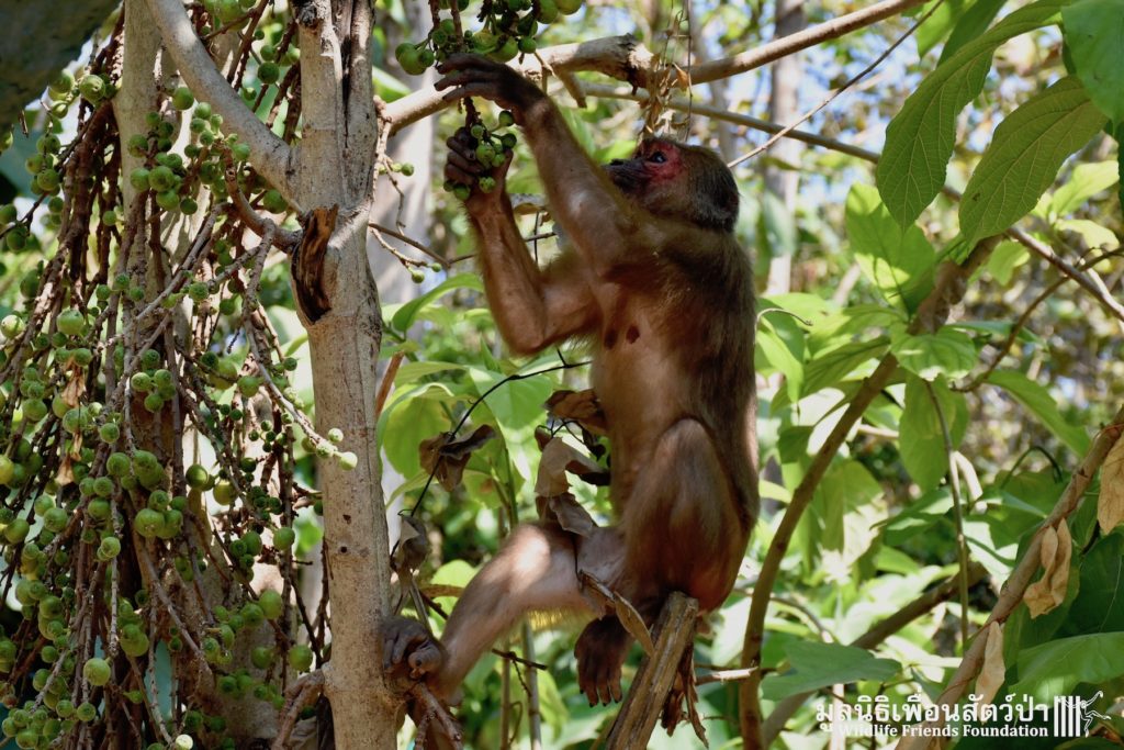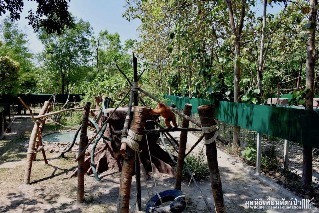 Here at the WFFT Wildlife Rescue Centre in Thailand we continue to strive to provide the best captive environments for our permanent residents, many of which are rescued macaques. This involves creating new exciting captive habitats for the animals in our care. In recent weeks we have been refurbishing some of the original open top macaque fields that still provide great homes for mostly ex-pet macaques. Yesterday one of the fields was completed enabling us to move a troop of stump-tailed macaques (Macaca arctoides), ‘Dollars Troop’ made up of young macaques Dollar and Yaya, and elderly macaques John and Jeaw. They have been exploring their wonderfully enrichment new environment, and to all our surprise 23-year-old John seems to have a new lease of life, and is loving all the new climbing structures.