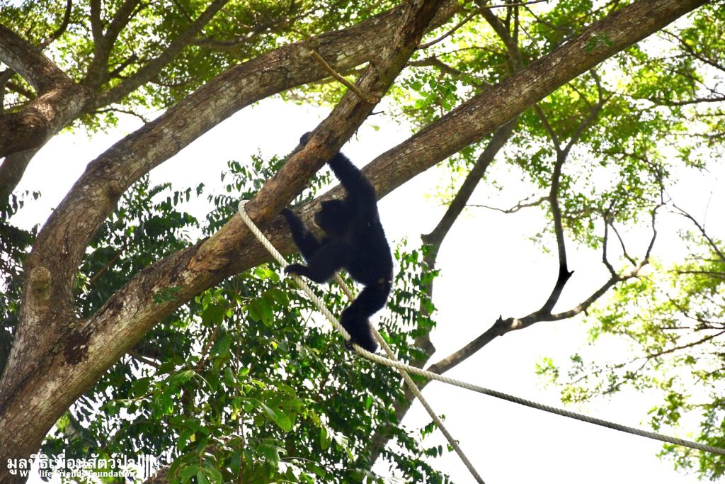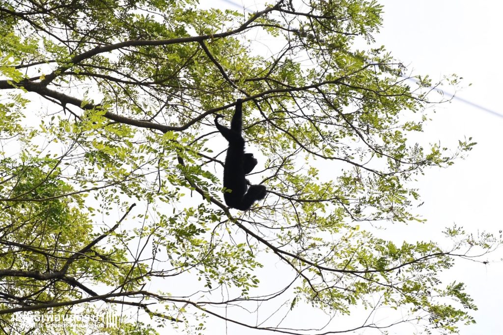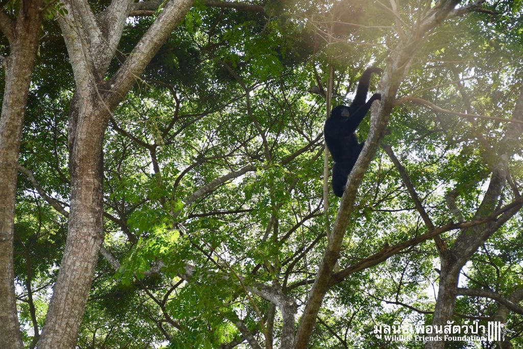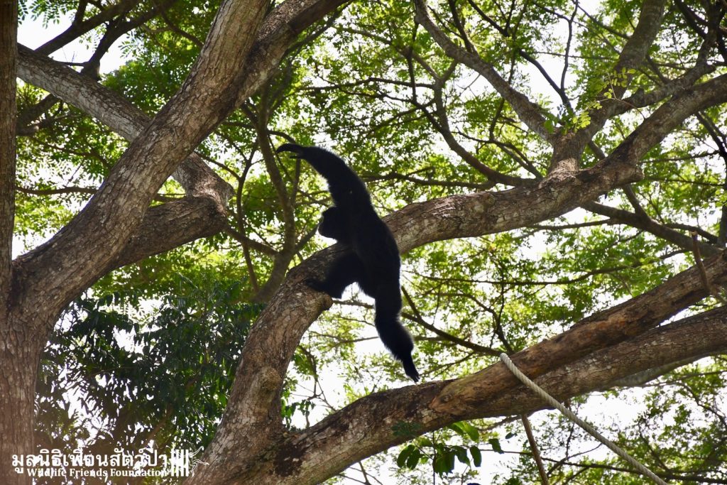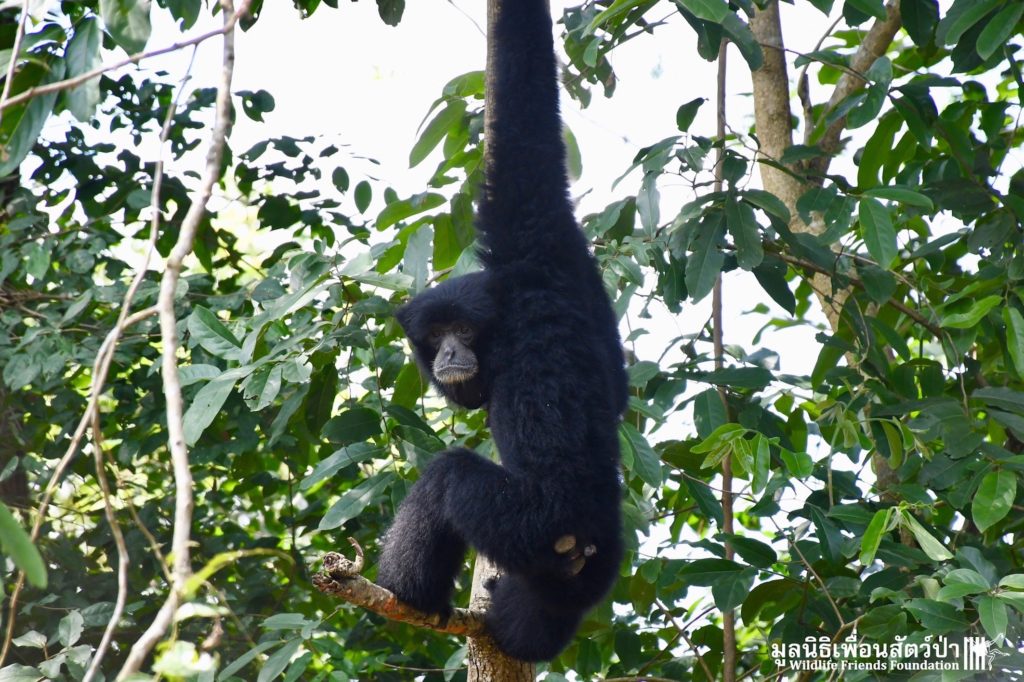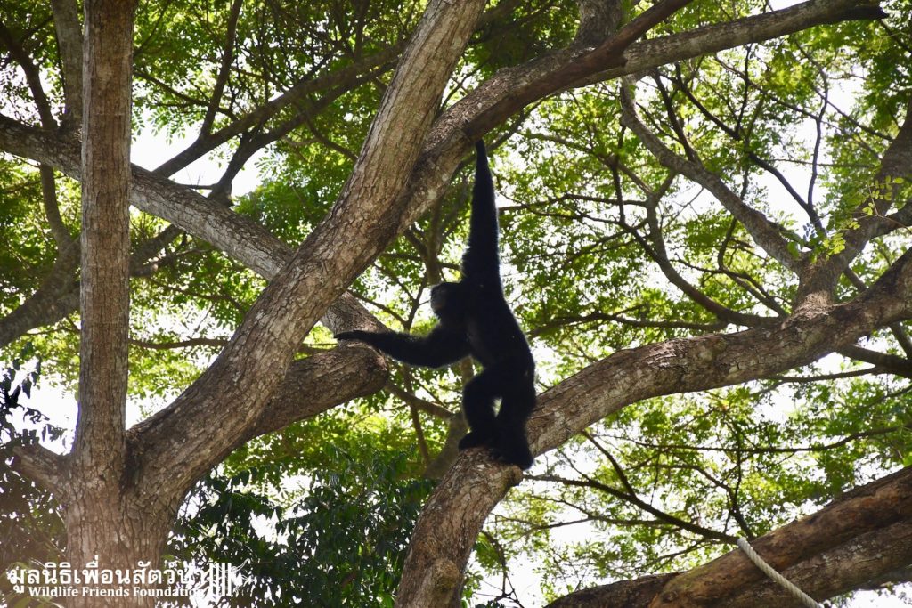 Many of our volunteers and supporters will know of MaMi, WFFT’s only Siamang gibbon. The siamang is the largest and loudest of all the gibbons. MaMi is one of WFFT’s long-term residents; she was rescued in 2005 after being kept as a pet for a few years in an apartment in Bangkok. Her mother had been poached from the wild and she was illegally smuggled into Thailand from Malaysia.