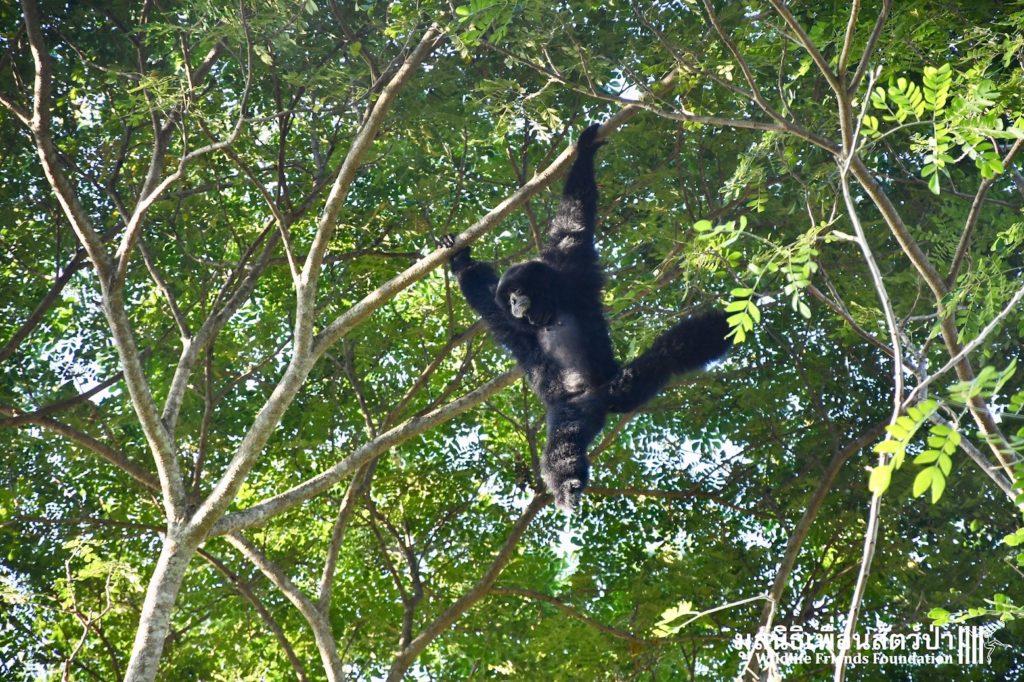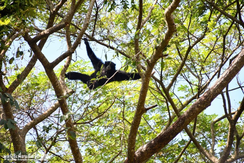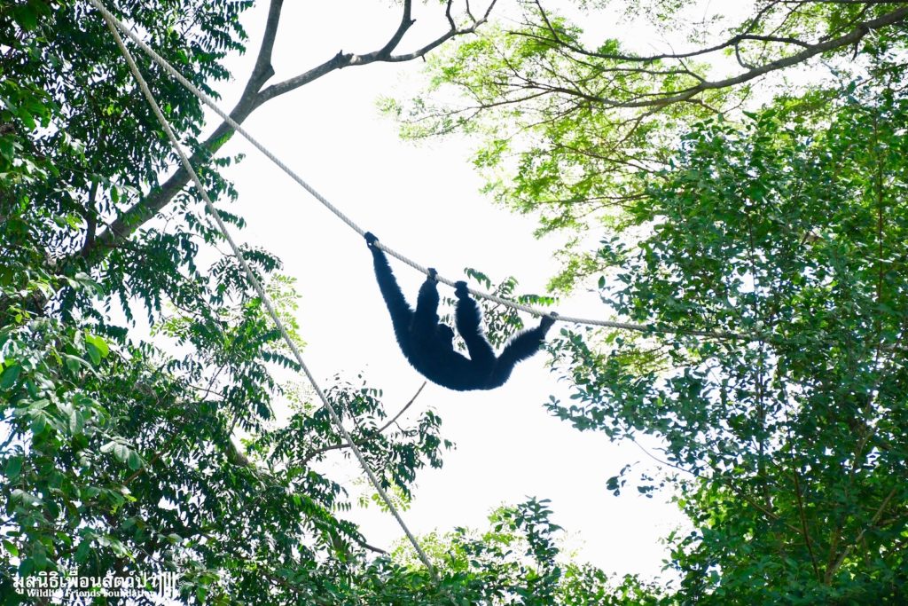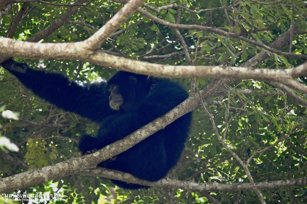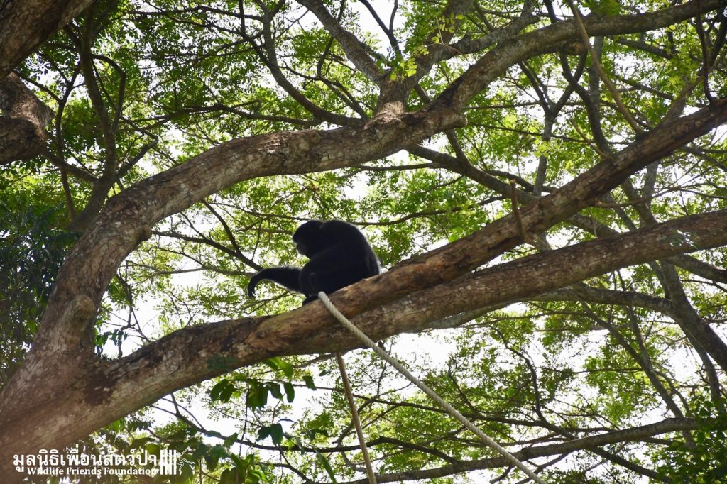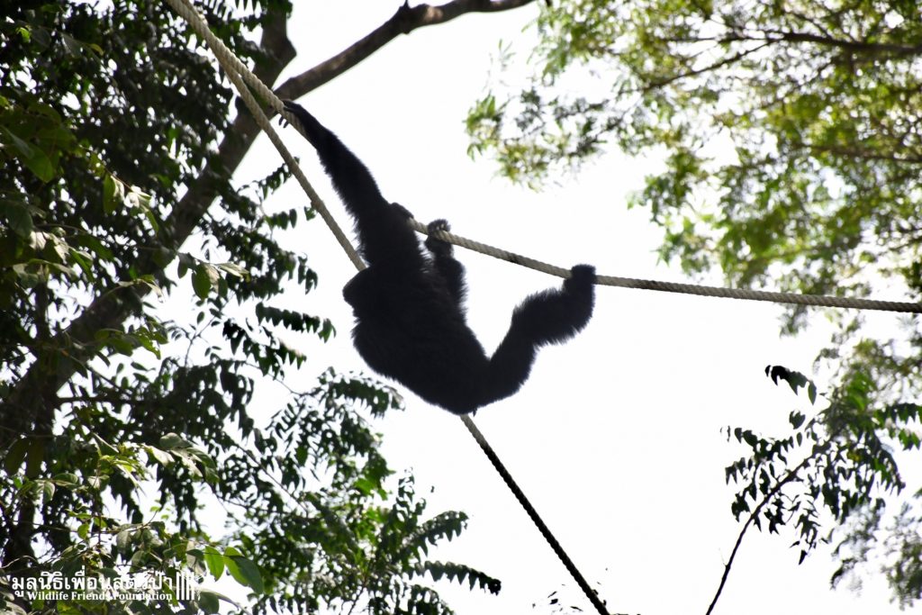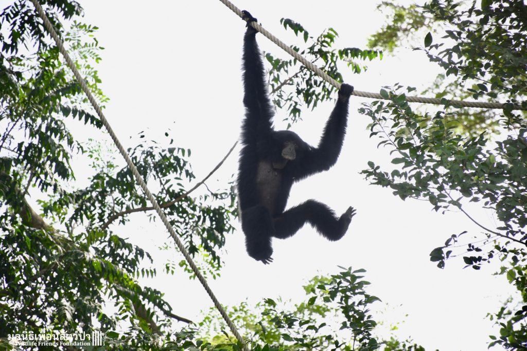 Many of our volunteers and supporters will know of MaMi, WFFT’s only Siamang gibbon. The siamang is the largest and loudest of all the gibbons. MaMi is one of WFFT’s long-term residents; she was rescued in 2005 after being kept as a pet for a few years in an apartment in Bangkok. Her mother had been poached from the wild and she was illegally smuggled into Thailand from Malaysia.