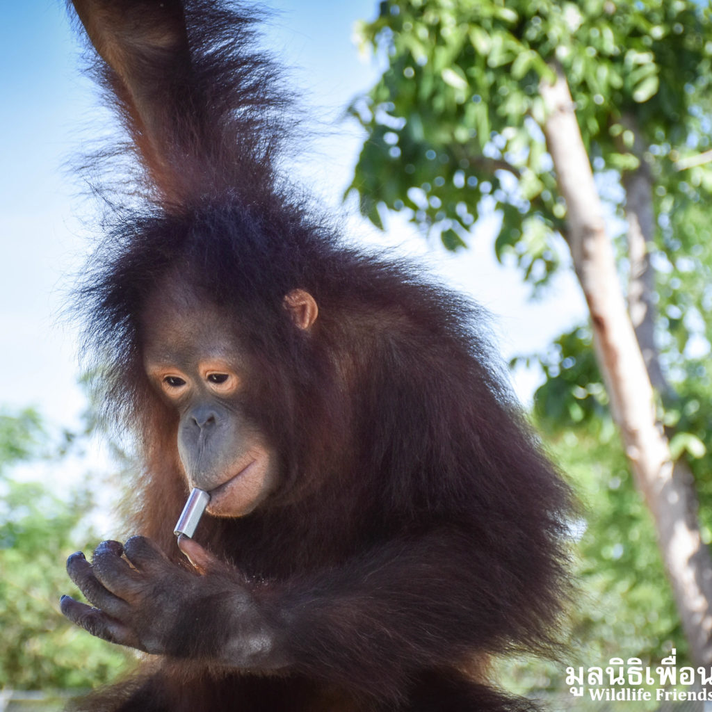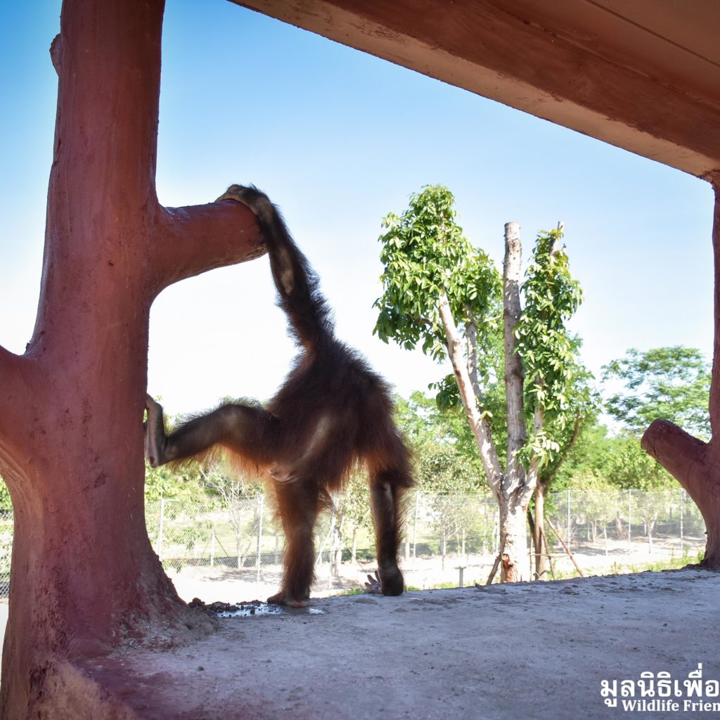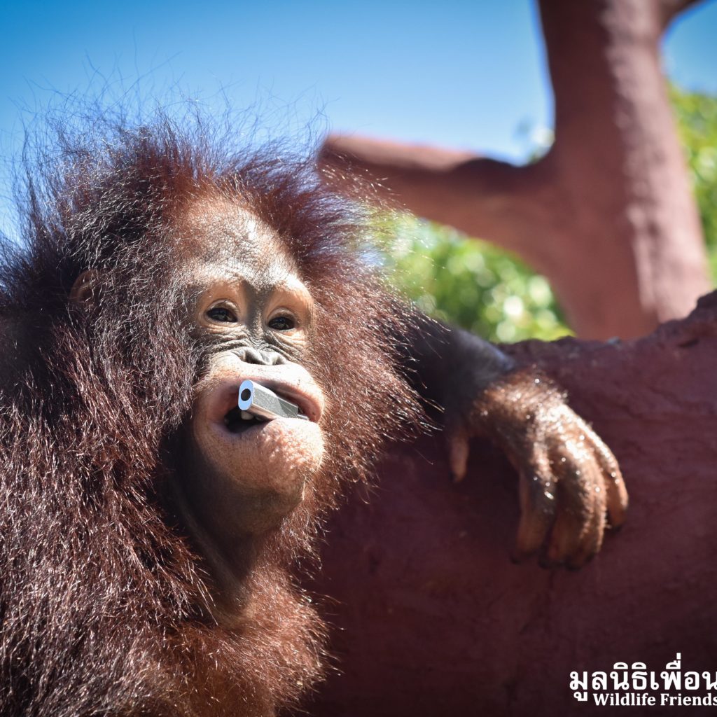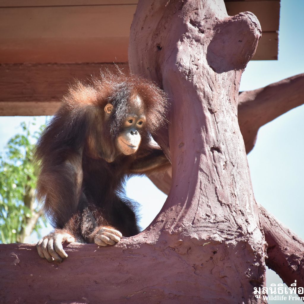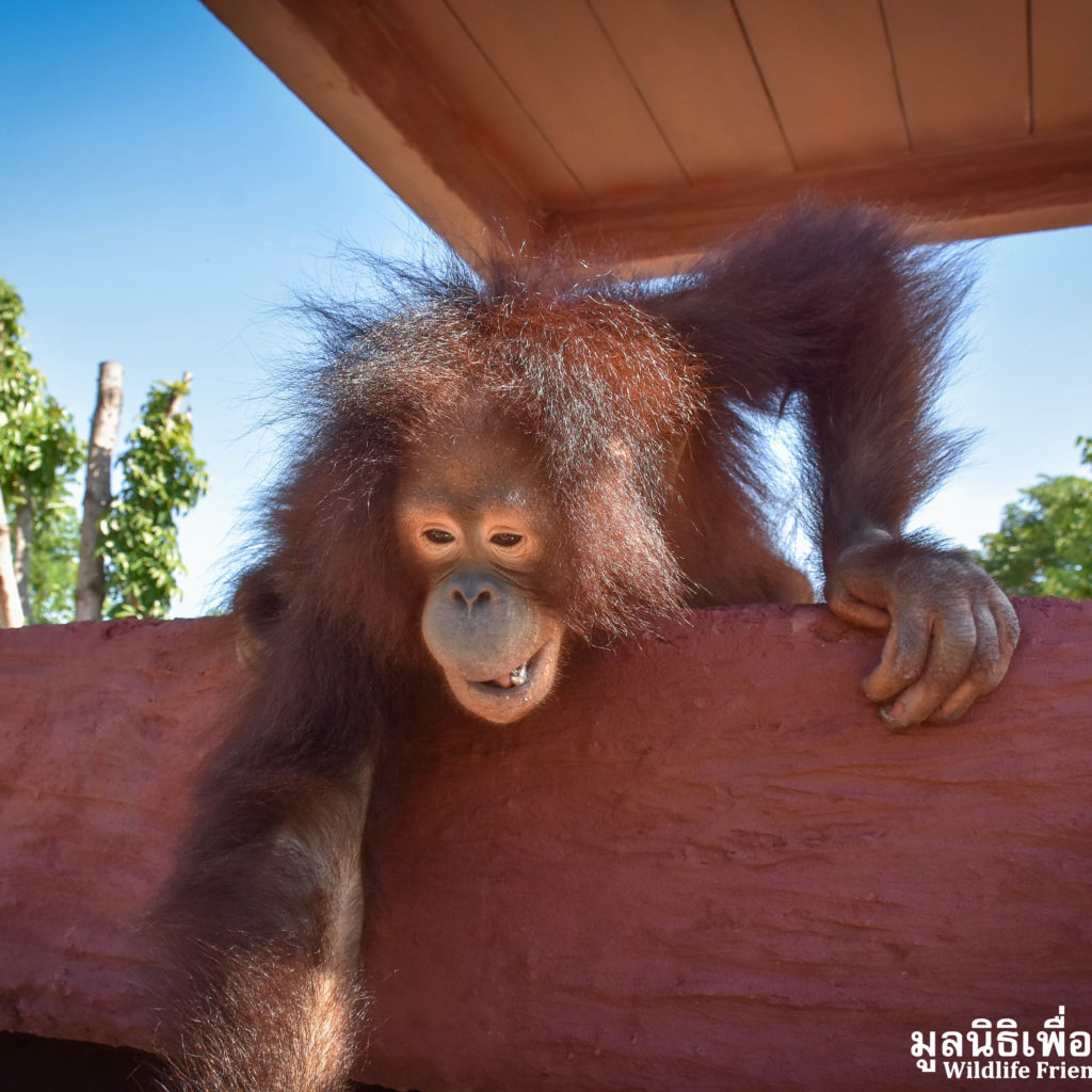 Earlier last week we received a call from an ‘owner’ of an unwanted pet ‘monkey’. They had asked the WFFT Team to meet them and discuss rehoming this monkey. Our founder Edwin headed out with a member of staff 2 days ago to discuss with the owners over a cup of coffee, to see what we could do to help. Edwin no longer travels alone due to recent events surrounding many high profile cases. Upon arrival it turned out that the monkey was actually an orangutan, an ape, in Thai language the words ape and monkey are indifferent. The ‘owner’ said he had the orangutan with him, and informed us that he is a 6-year-old Bornean orangutan (Pongo pygmaeus) named ‘Chico’. We made the decision that we could help, the owner started by handing over the personal ‘belongings’ of the orangutan which included a child’s go-kart, various pieces of clothing including themed outfits, sugary foods and human toiletries. It seems that Chico has been treated like a human child, until he started to become aggressive and his captures were unable to handle him.